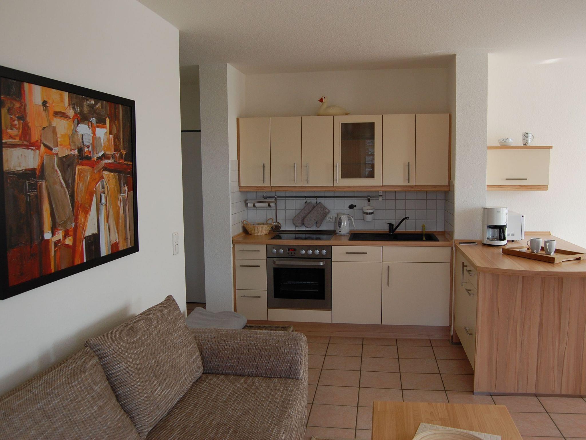 Zu der Nichtraucherwohnung gehört ein Tiefgaragenplatz . Tiere sind nicht erlaubt. Es gibt einen Fahrradkeller.. Eine 1-Zimmerwohnung mit Terrasse ist ebenfalls buchbar.