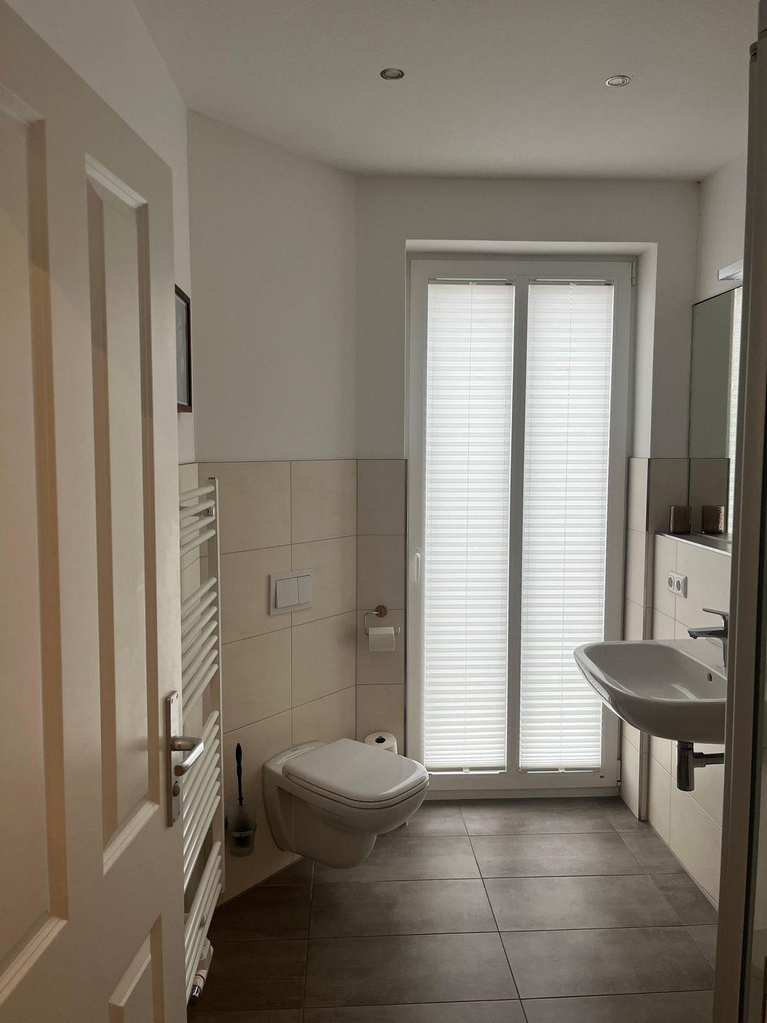 Lichtdurchflutete und elegant eingerichtete 3-Zimmer-Ferienwohnung im Erdgeschoss des Hauses bietet ein komfortables Wohnambiente für Gäste, die Wert auf Ruhe und Stil legen. Die Wohnung verfügt über zwei gemütliche Schlafzimmer und einen großzügigen Wohnbereich, der durch eine offene, modern ausgestattete Küche mit Essbereich ergänzt wird. Der Wohnbereich ist mit einer komfortablen Sitzecke und einem TV ausgestattet und bildet den idealen Mittelpunkt für gesellige Stunden oder entspannte Abende.