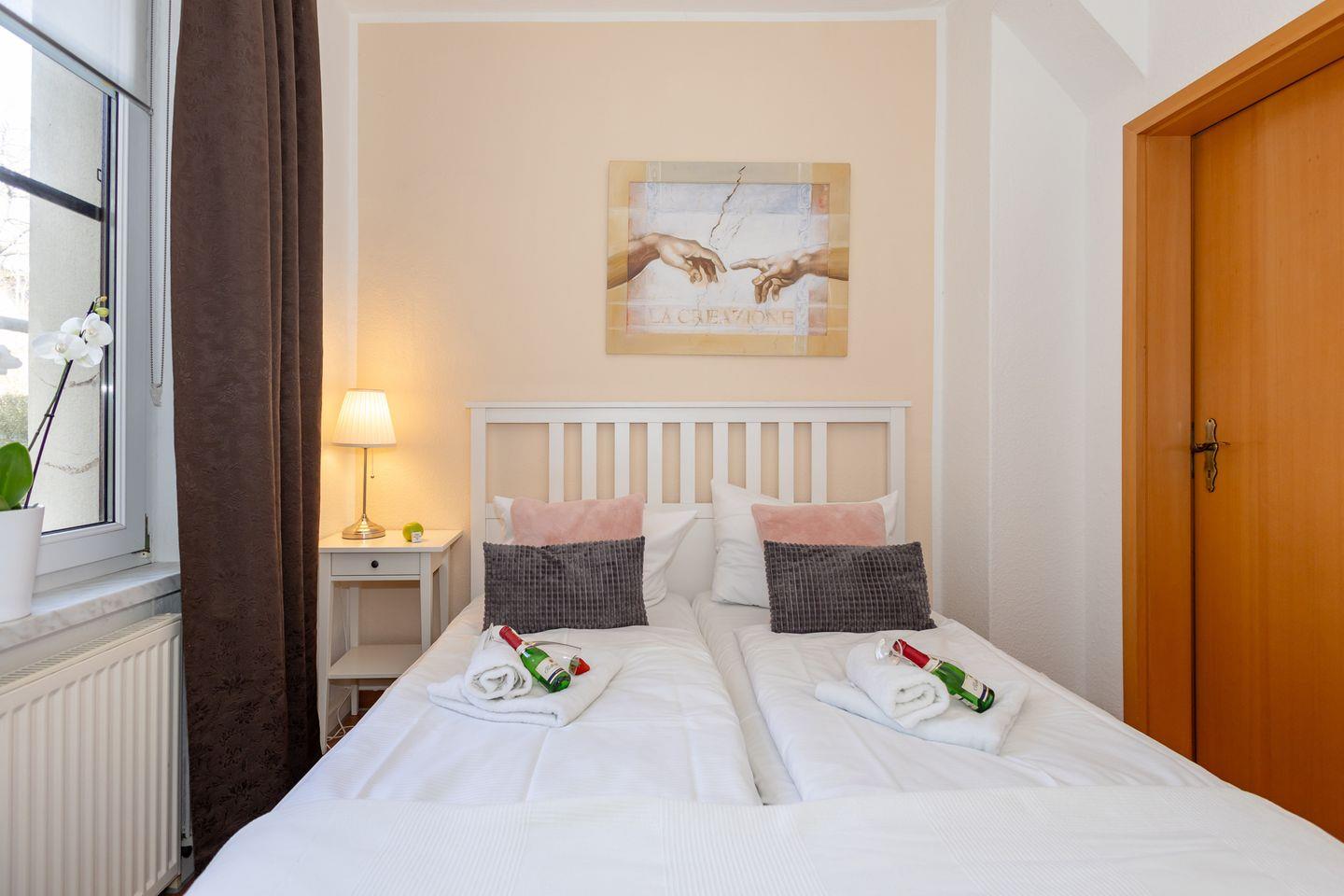 Die Ferienwohnung Lebensfreude befindet sich in bevorzugter Lage in Rerik, nur 150 Meter vom Sandstrand und der Ostsee entfernt. Mit einer Wohnfläche von 55 m² bietet sie Platz für bis zu sechs Personen und eignet sich somit ideal für Familien sowie kleinere Gruppen. Zwei separate Schlafzimmer sind mit Laminat ausgelegt und bieten dank ihrer Ausstattung komfortable Rückzugsorte. Das geräumige Wohnzimmer, ebenfalls mit Laminatboden, ist mit einer Sofaecke, einem Sessel sowie einem TV (35-44 Zoll, Blu-ray- und CD-Spieler vorhanden) ausgestattet. Darüber hinaus steht Ihnen ein kostenfreier WLAN-Zugang zur Verfügung.