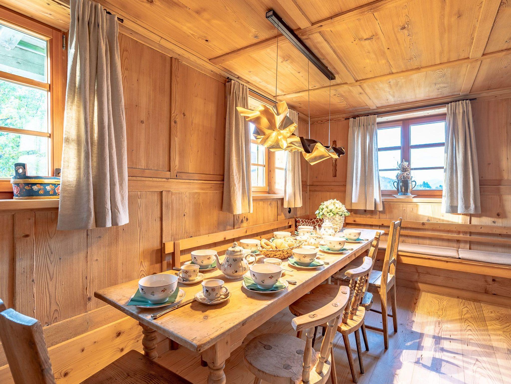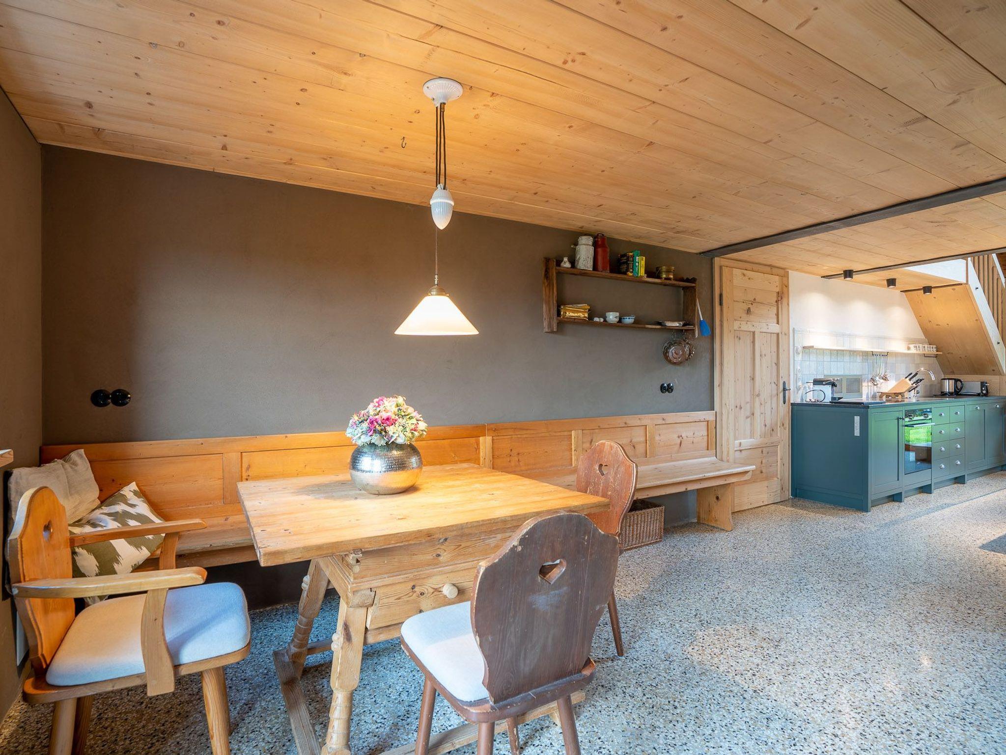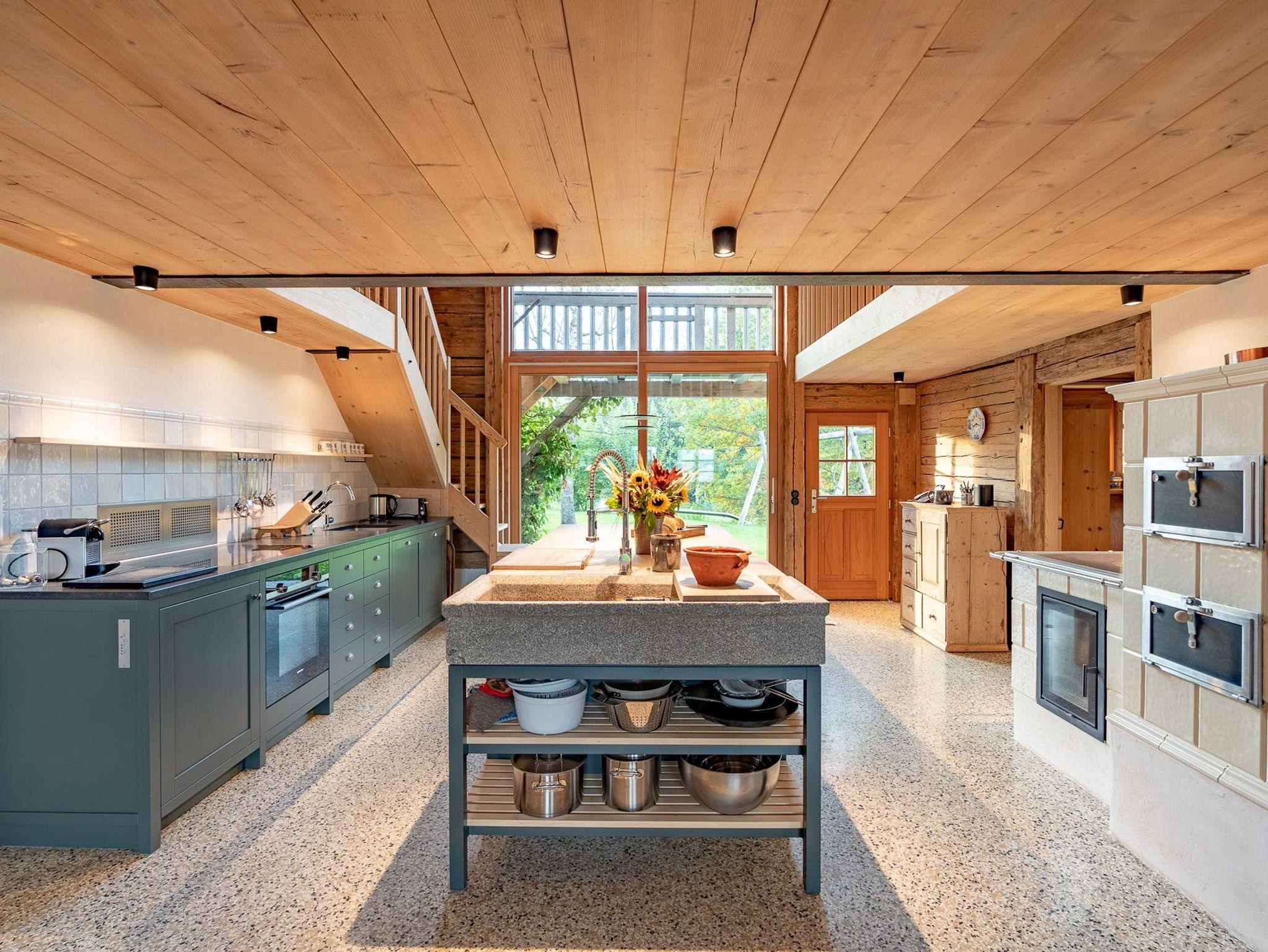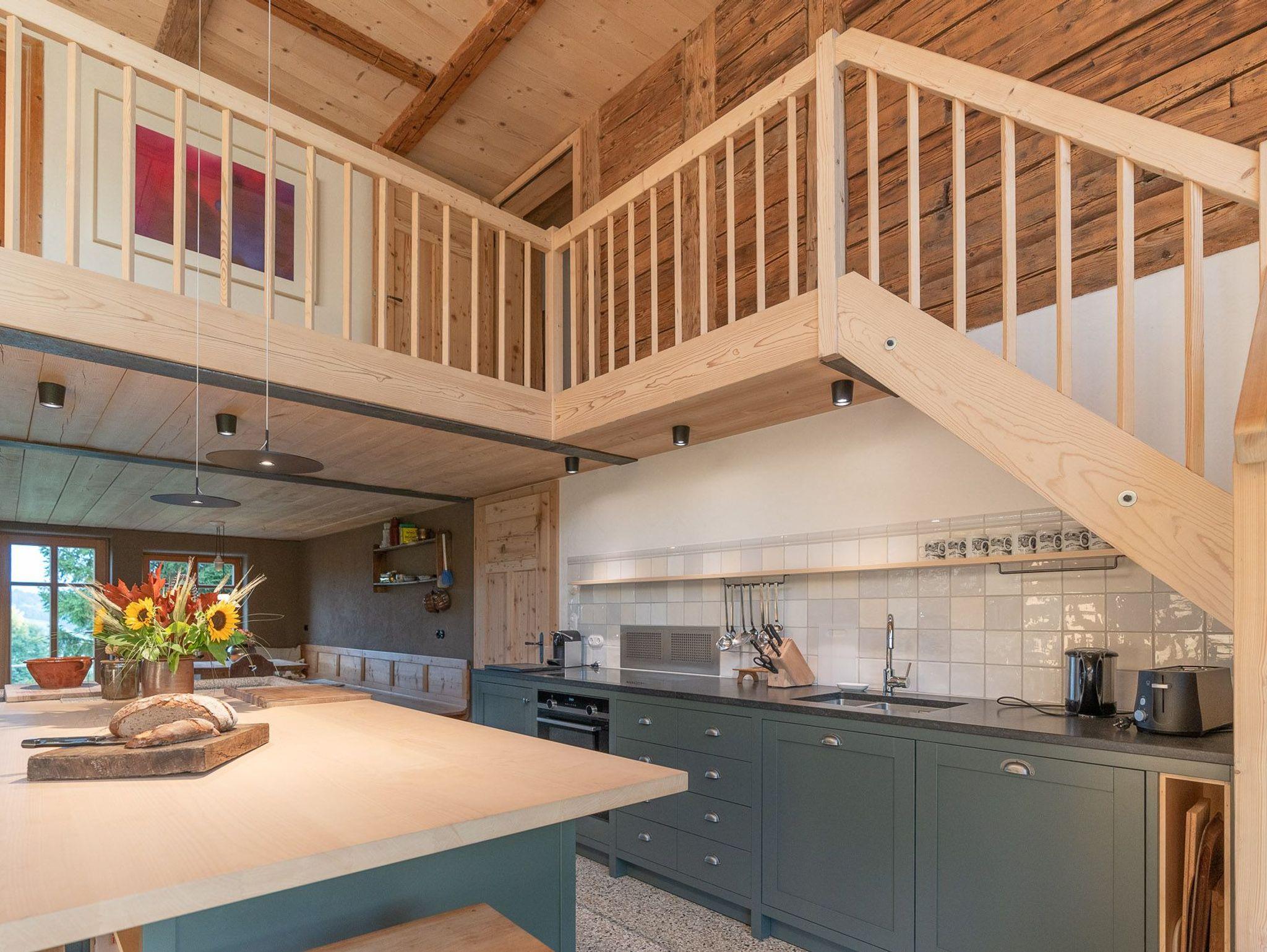 Sie betreten dieses weitläufige Ferienhaus über einen großzügigen Eingangsbereich von der Tenne aus. Von dort aus können Sie auch direkt mit dem Aufzug in das Haus gelangen. Vom Flur aus erreichen Sie den zentralen Mittelpunkt Ihres Ferienheimes, die geräumige, modern ausgestattete Küche im Landhausstil, diese lässt keine kulinarischen Wünsche offen und läd zum gemeinsamen kochen und zu geselligen Stunden mit Familie und Freunden ein. Die liebevoll renovierte Holzstube strahlt Behaglichkeit und Wohlbefinden aus, ebenso wie das Panoramazimmer, lassen Sie die Seele baumeln. Sie werden sich in jedem dieser Räume wohlfühlen und es wird bestimmt jeder von Ihnen seinen ganz persönlichen Lieblingsplatz zum Entspannen und Abschalten finden. Genießen Sie Erholung pur, bei dem 360 Grad Blick in die Weite, in der Außensauna mit Fenstern oder abends bei einem Sundowner am Außenkamin oder auf der Westterrasse.
