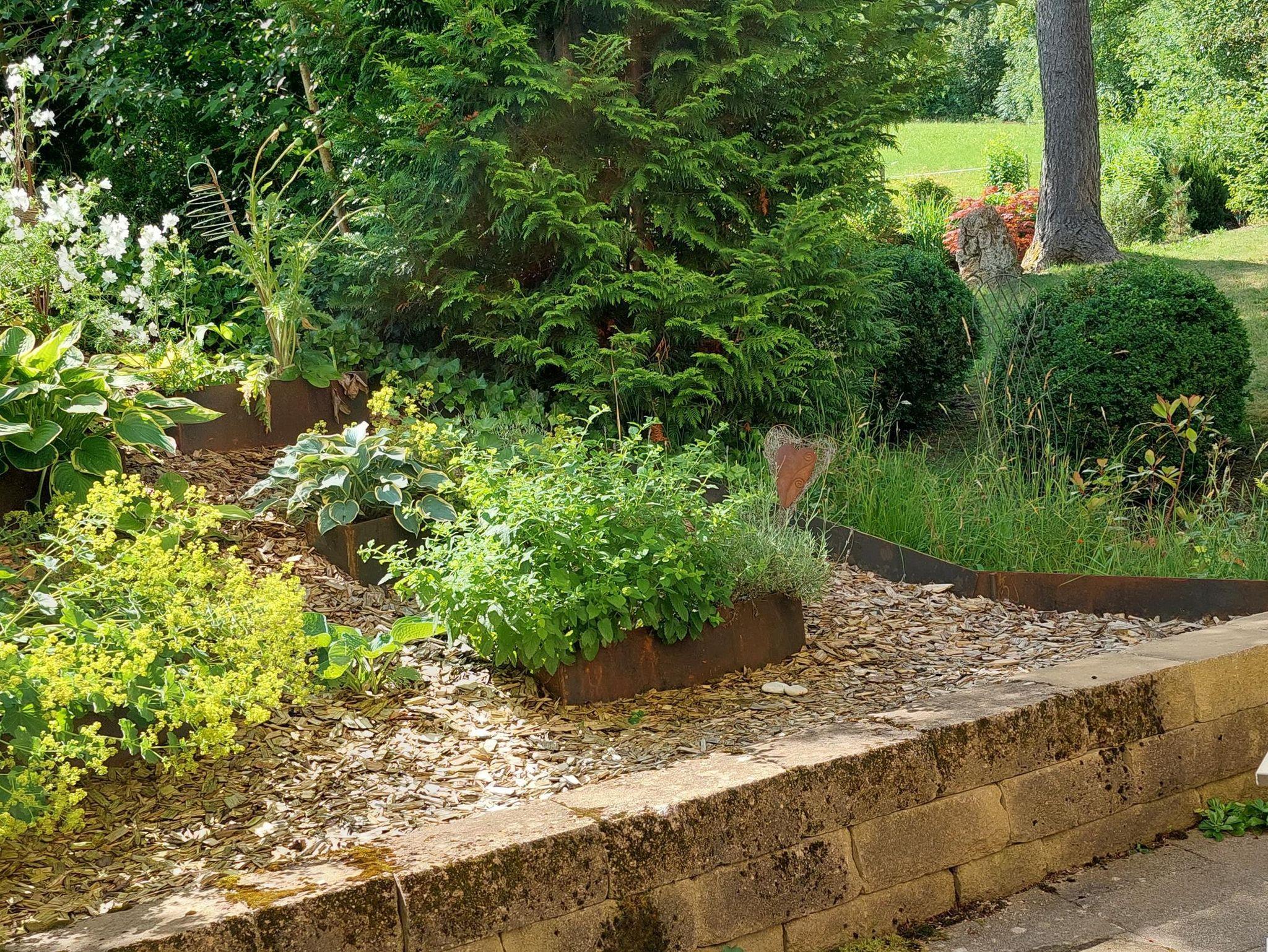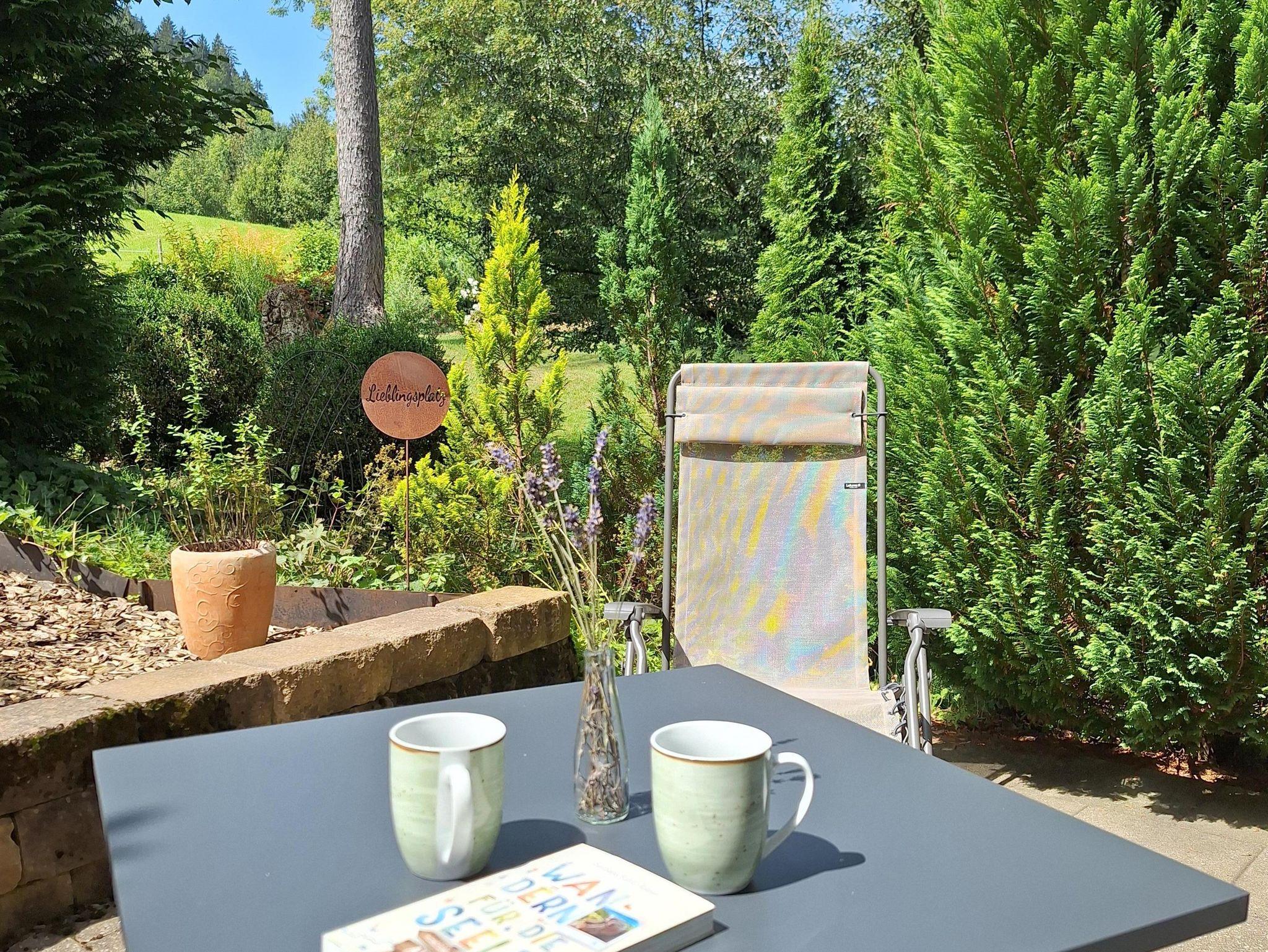 Der Lieblingsplatz verfügt über zwei Terrassen. Eine Frühstücksterrasse (Osten) und einer Hauptterrassse mit Nachmittag/Abendsonne.