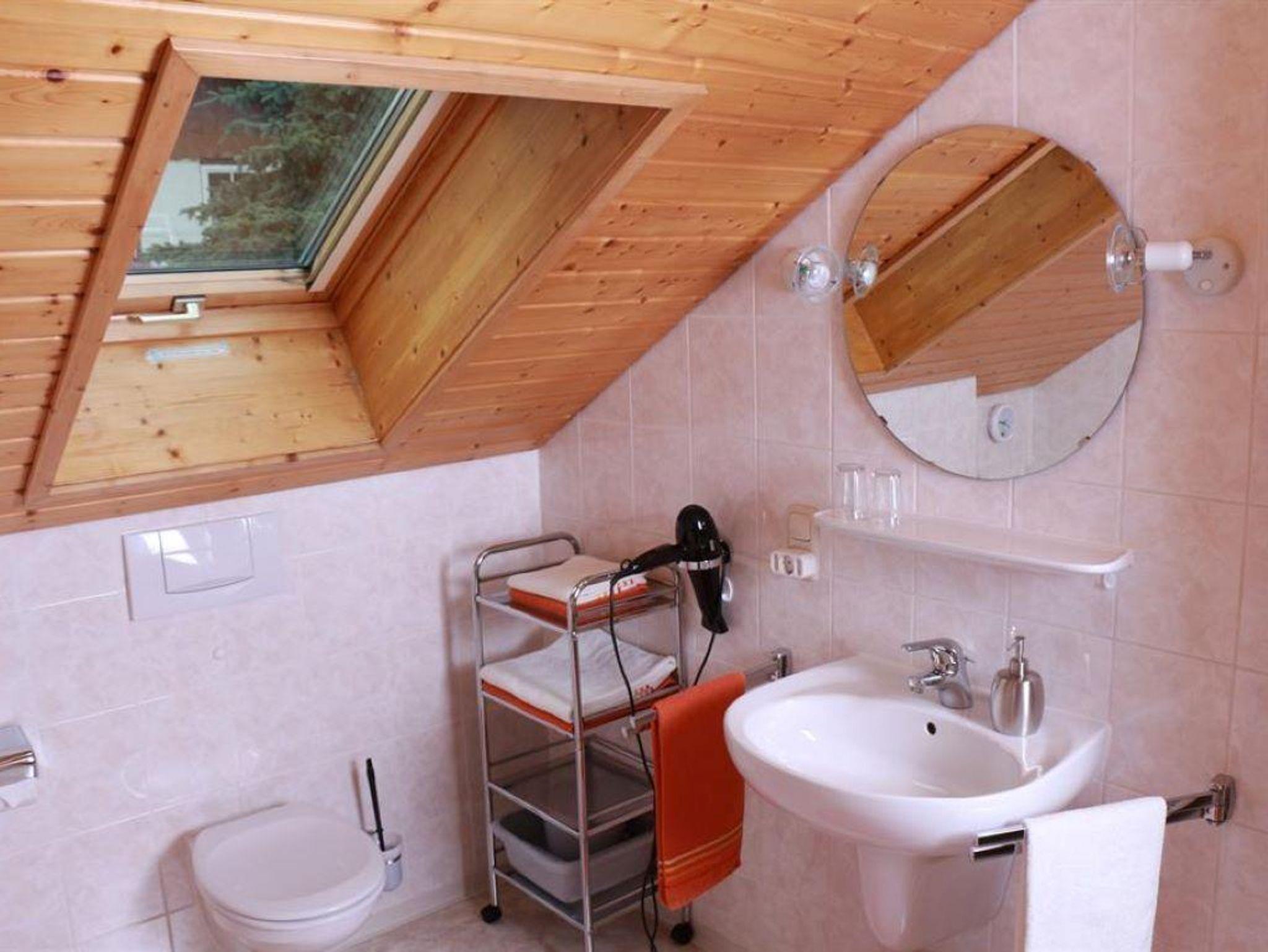 Badezimmer mit Dusche und WC.