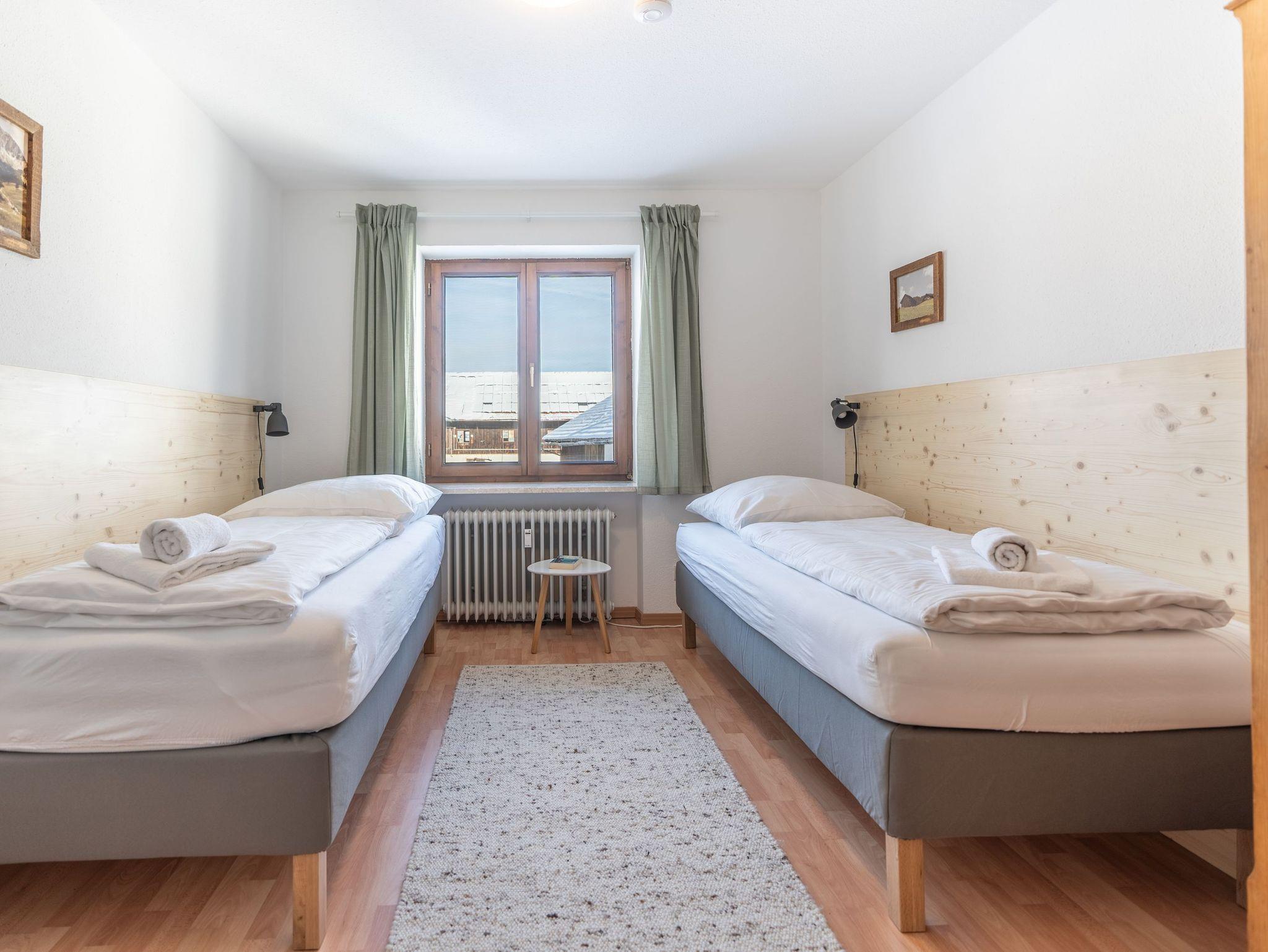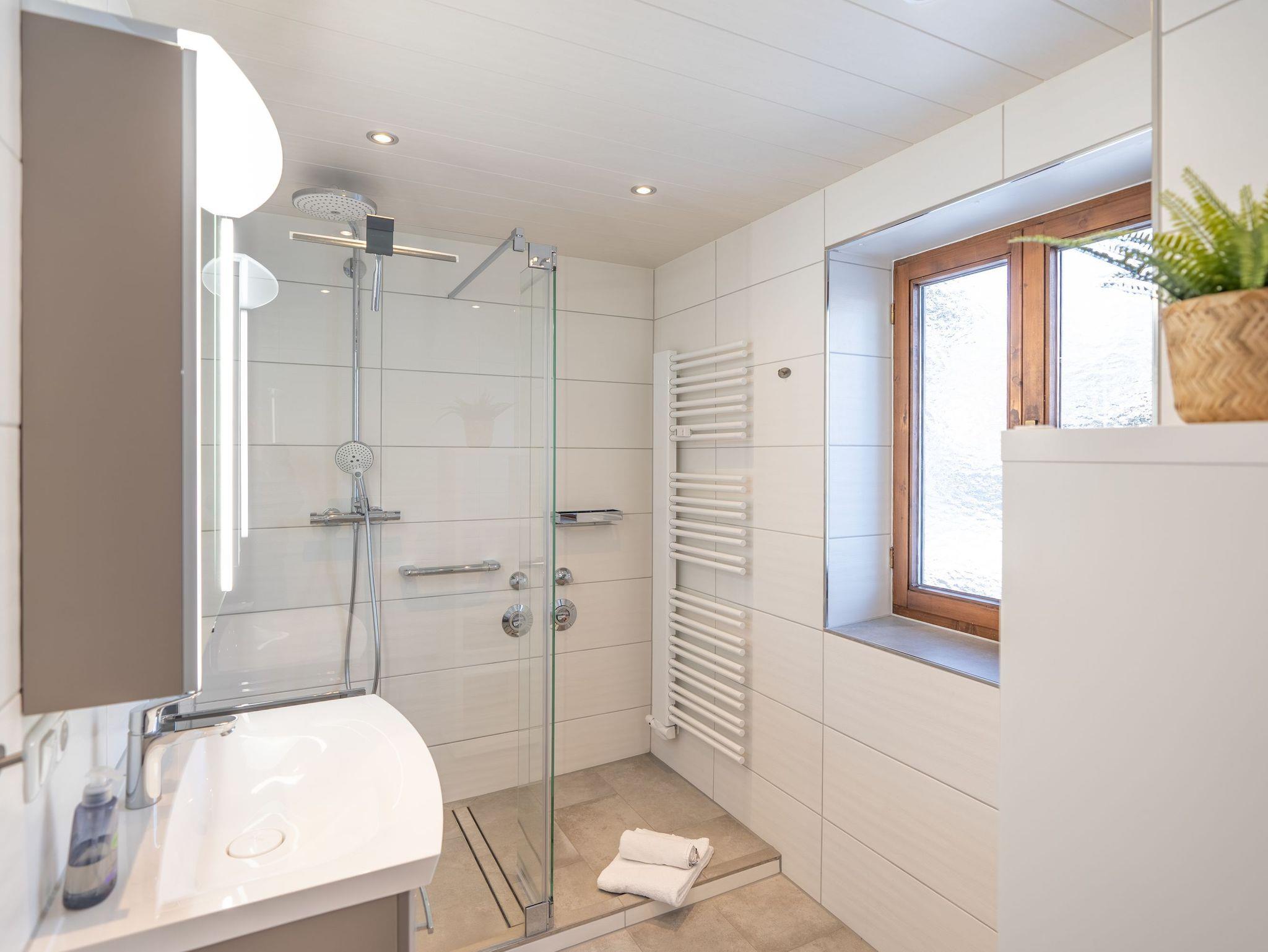 Das helle und gemütliche Wohnzimmer verfügt über einen Kachelofen, der für eine behagliche Atmosphäre an kühleren Abenden sorgt. Die moderne Küche ist bestens ausgestattet und lädt zum kochen Ihrer Lieblingsgerichte ein. Das großzügige und moderne Badezimmer begeistert mit einer begehbaren Dusche, die für besonderen Komfort sorgt. In Schlafzimmer 1 erwartet Sie ein gemütliches Doppelbett sowie ein praktisches Stockbett, ideal für Familien oder Gruppen. Das Schlafzimmer 2 ist mit zwei Einzelbetten und einem Kleiderschrank ausgestattet. Im Flur finden Sie weitere Schränke, um all Ihre Habseligkeiten ordentlich zu verstauen.