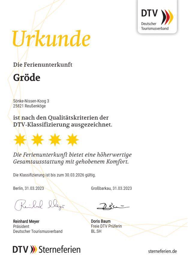 Die lichtdurchflutete 4-Sterne-Ferienwohnung "Gröde" bietet schon vom Frühstückstisch aus eine herrliche Aussicht in die Weite der Natur und der nordfriesischen Marsch. So startest du in einen traumhaften Urlaubstag. Die Wohnung bietet zwei Schlafzimmer, eine Wohnküche und ein Bad.