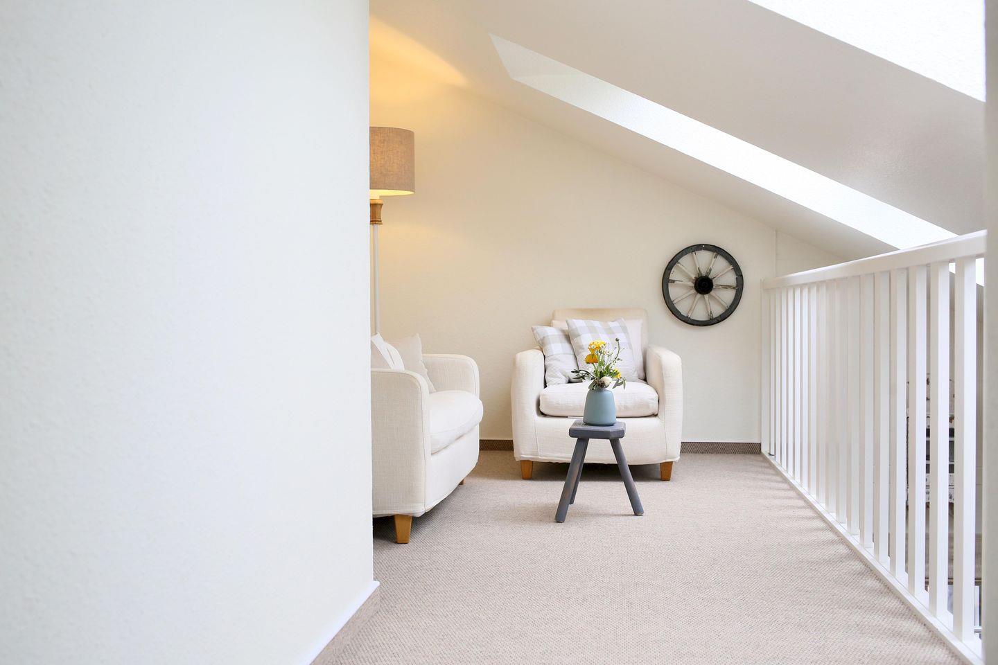 Die sonnige, aparte 4-Sterne-Ferienwohnung "Gröde" bietet eine herrliche Aussicht in die herrliche nordfriesische Marsch und die Köge. Die hohen lichtdurchfluteten Räume sind mit Holzmöbeln und viel Liebe zum Detail ausgestattet. Die edle Ausstattung mit viel Echtholz, das durchdachte Lichtkonzept und der sonnige Einstrahl sorgen für echtes Wohlgefühl. Besonders die massiven Wände und ausgewählten Stoffe vermitteln ein gemütliches Ambiente. Abschalten und die Sterne zählen? Dies ist vom Wohlfühlplatz in der Galerie möglich, denn man schaut direkt in den Himmel.