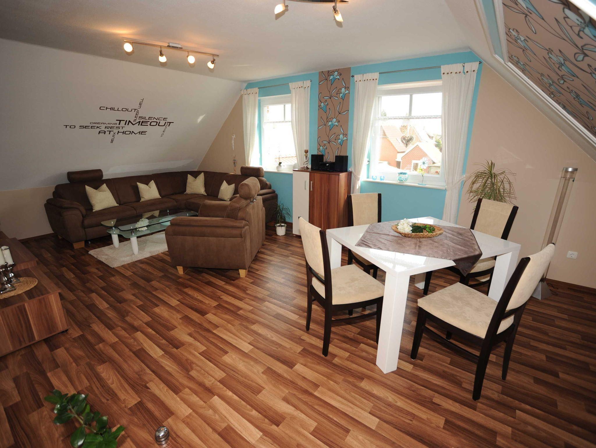 Die Wohnung liegt im Dachgeschoss mit separatem Eingang und ist modern, gemütlich und funktionell eingerichtet. In der gesamten Ferienwohnung ist Fußbodenheizung verlegt, was für eine angenehme Wärme sorgt.