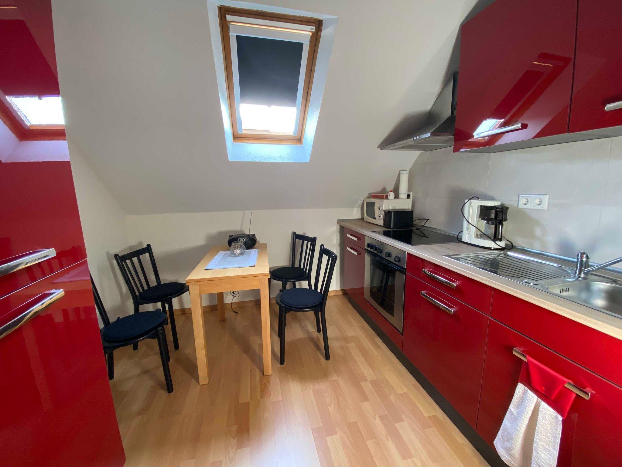 In der Oberwohnung befindet sich ein großer Schlafraum mit Doppelbett. Hier kann zusätzlich ein Babybett dazu gestellt werden. Der Küchenbereich ist separat. Im großzügigen Badbereich befindet sich eine Dusche und eine Badewanne. Waschmaschine vorhanden. Der Wohnbereich ist hell und groß und bietet genug Platz zum Entspannen.