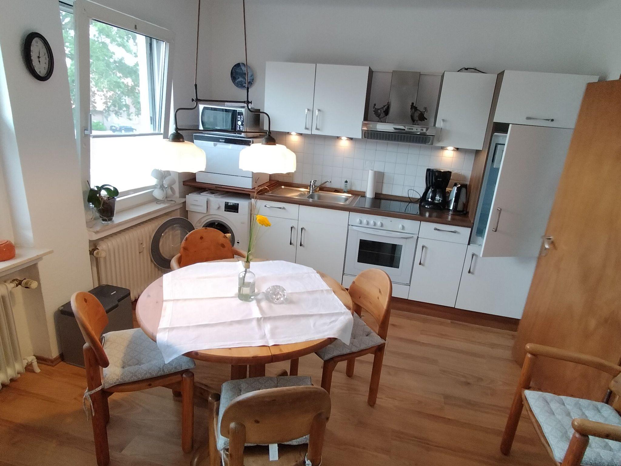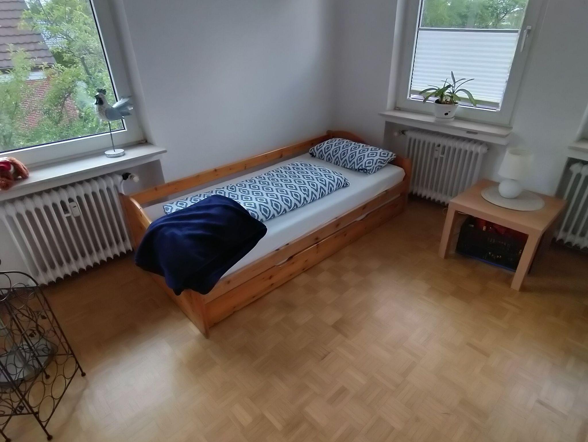 Herzlich Willkommen in der Ferienwohnung über dem Weinkeller De Holter Wienkeller. Komplett eingerichtete Einbauküche mit Kühlschrank, Herd, Backofen, Mikrowelle, Wasserkocher, Toaster und Kaffeemaschine und Esstisch für 6 Personen mit Blick Richtung Holter Hammrich. Im angrenzenden Wohnzimmer können Sie fernsehen, Musik hören, oder einfach nur auf der großen Rundcouch in Ruhe ein Glas Trollinger genießen. Ein Grill und Gartenmöbel stehen Ihnen auf dem Balkon zur freien Verfügung. Bügelbrett und Bügeleisen sind vorhanden. 3 Schlafräume: 1. Schlafzimmer mit Doppelbett 1,80 x 2,00m, 2. Schlaftzimmer wahlweise als Doppelbett oder mit 2 Einzelbetten umstellbar und ein zusätzliches Babybett ist in diesem Schlafzimmer vorhanden, 3. Schlafzimmer mit ausziehbaren Kojenbett (Einzelbett und ein zweites ausziehbares Bett daneben), sowie ein Bad mit Dusche und WC. Für unsere Gäste ist immer ein fester Tisch im Weingarten reserviert, der gerne genutzt werden kann. Es stehen ein Parkplätze zur Verfügung.