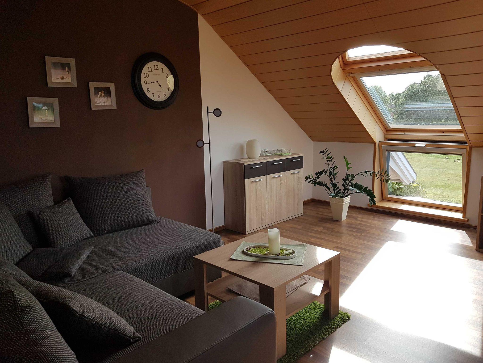 Besondere Merkmale der Unterkunft: Ländliche Lage, Ruhe und Erholung, Loggia, moderne Einrichtung. Aufgrund einer Gartenteichanlage wird um Buchungen ab 18 Jahren gebeten.