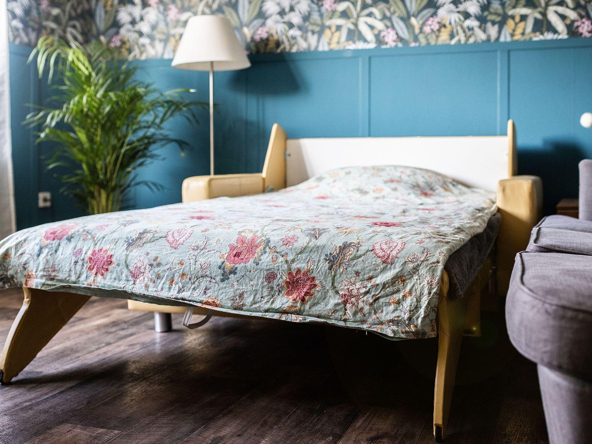 (1,80 x 2,00 m) für den erholsamen Schlaf und einen großen Schrank. Die
