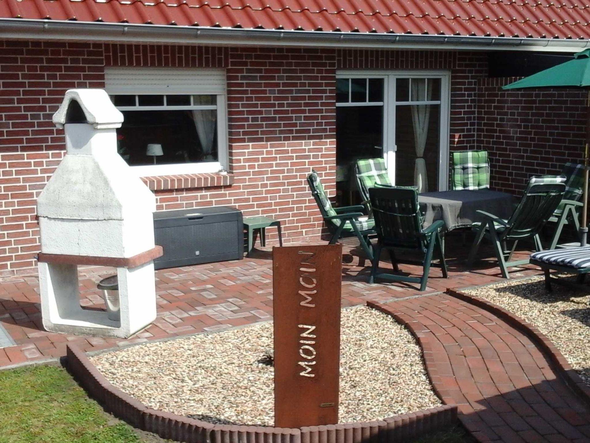 Zum Ferienhaus gehört ein kleiner Garten mit Sonnenterrasse und Grillmöglichkeit (Grill vorhanden) zur alleinigen Nutzung.
