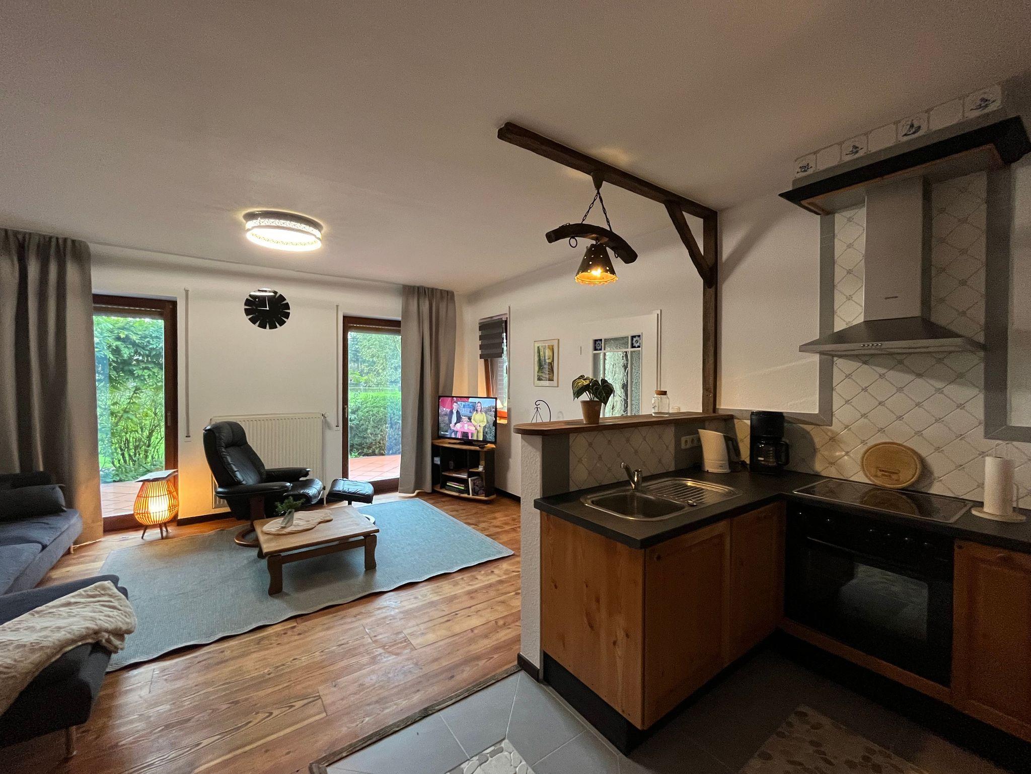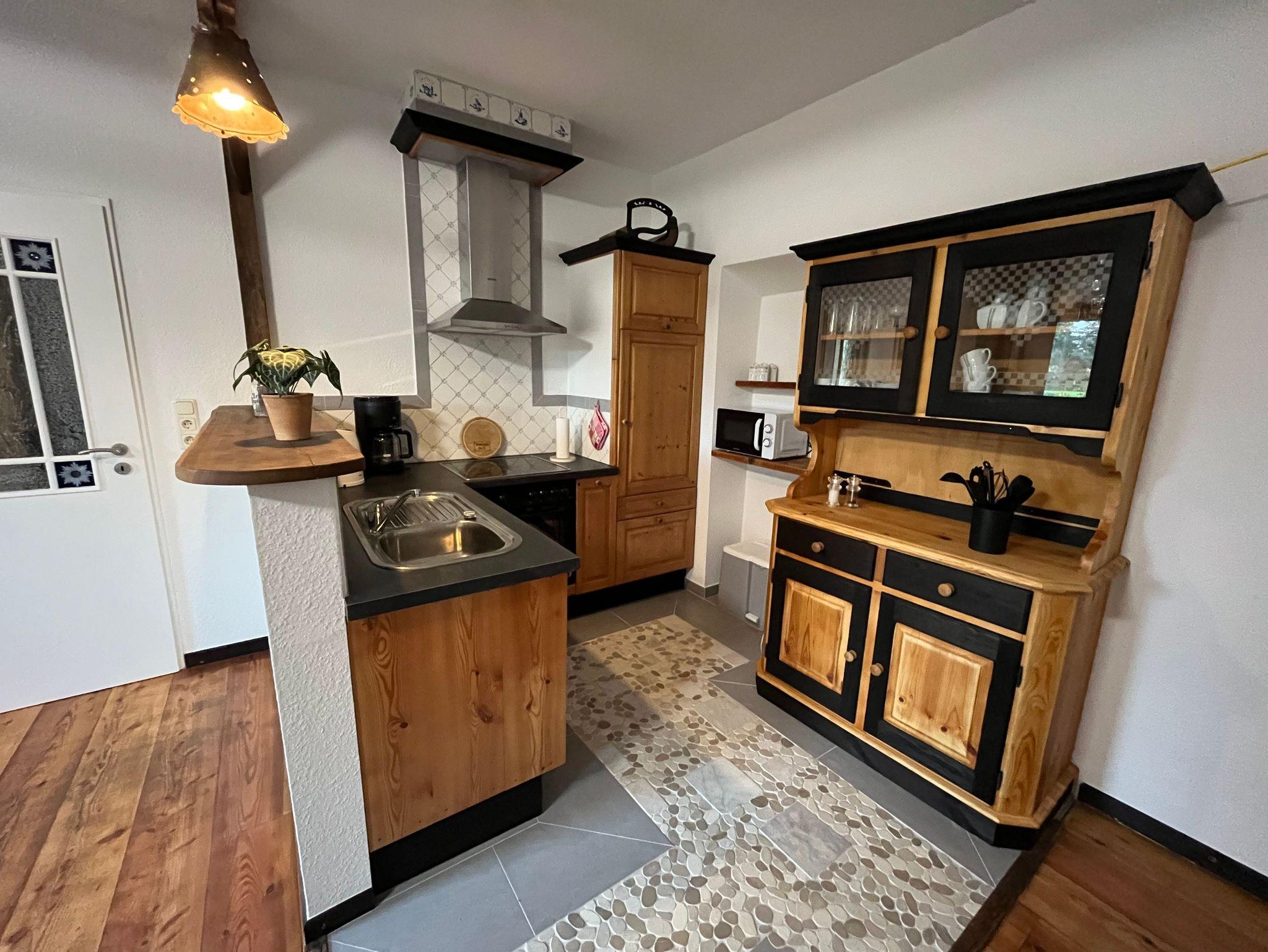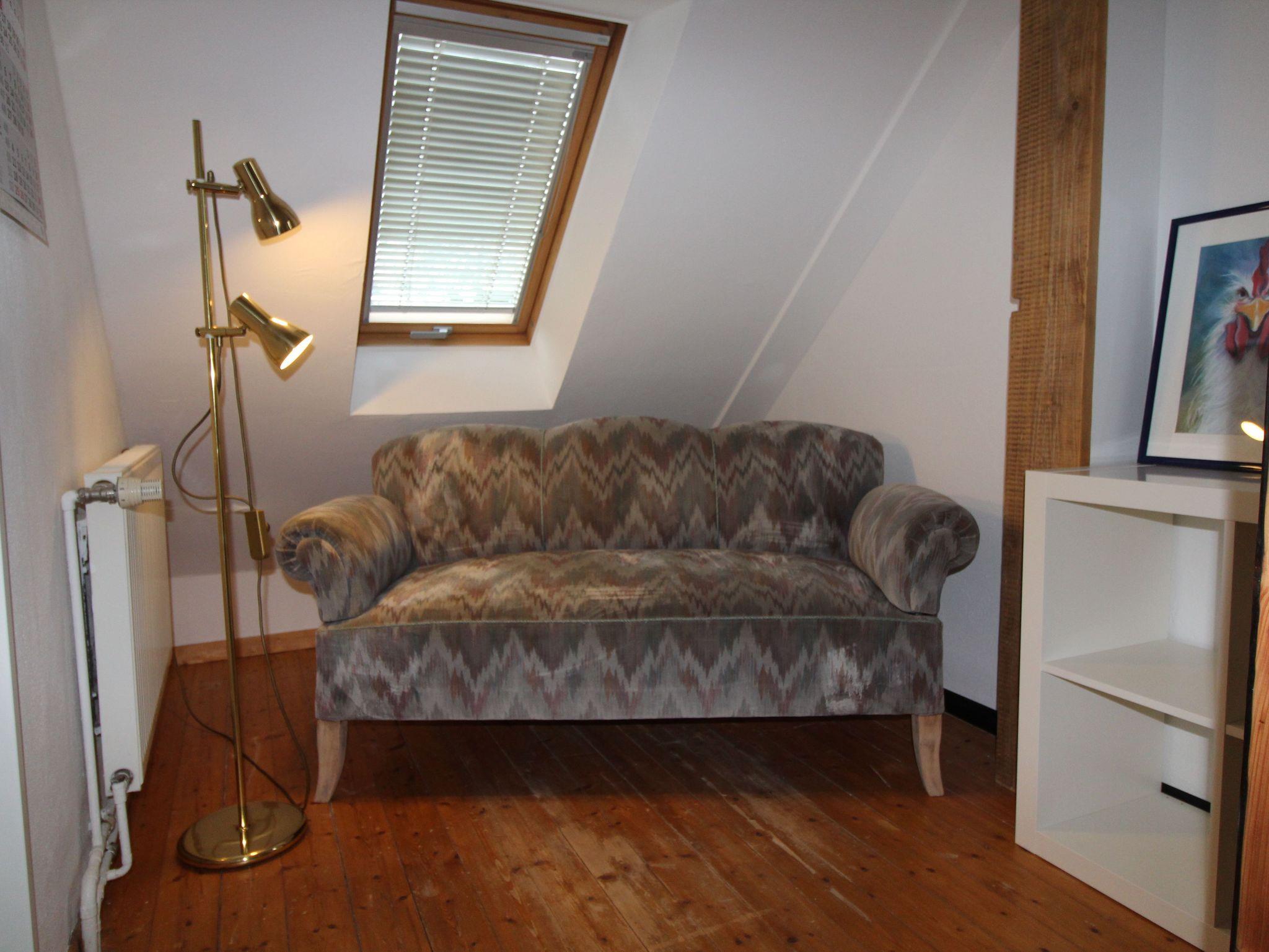 Es erwartet Sie ein großer, offener Wohn- und Essbereich mit einer voll ausgestatteten Küche mit Kühlschrank, Spülmaschine, Kaffeemaschine, Toaster, Mikrowelle und Wasserkocher. Das Sofa kann auch als Schlafmöglichkeit genutzt werden. Im Obergeschoß befindet sich das Schlafzimmer mit Doppelbett.