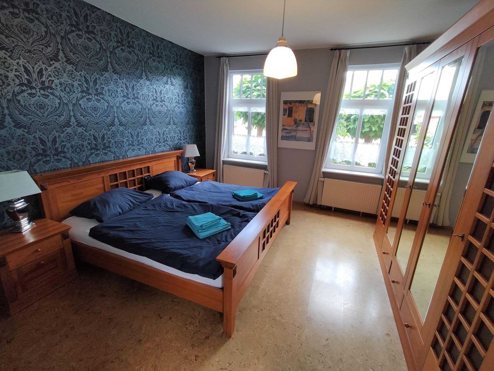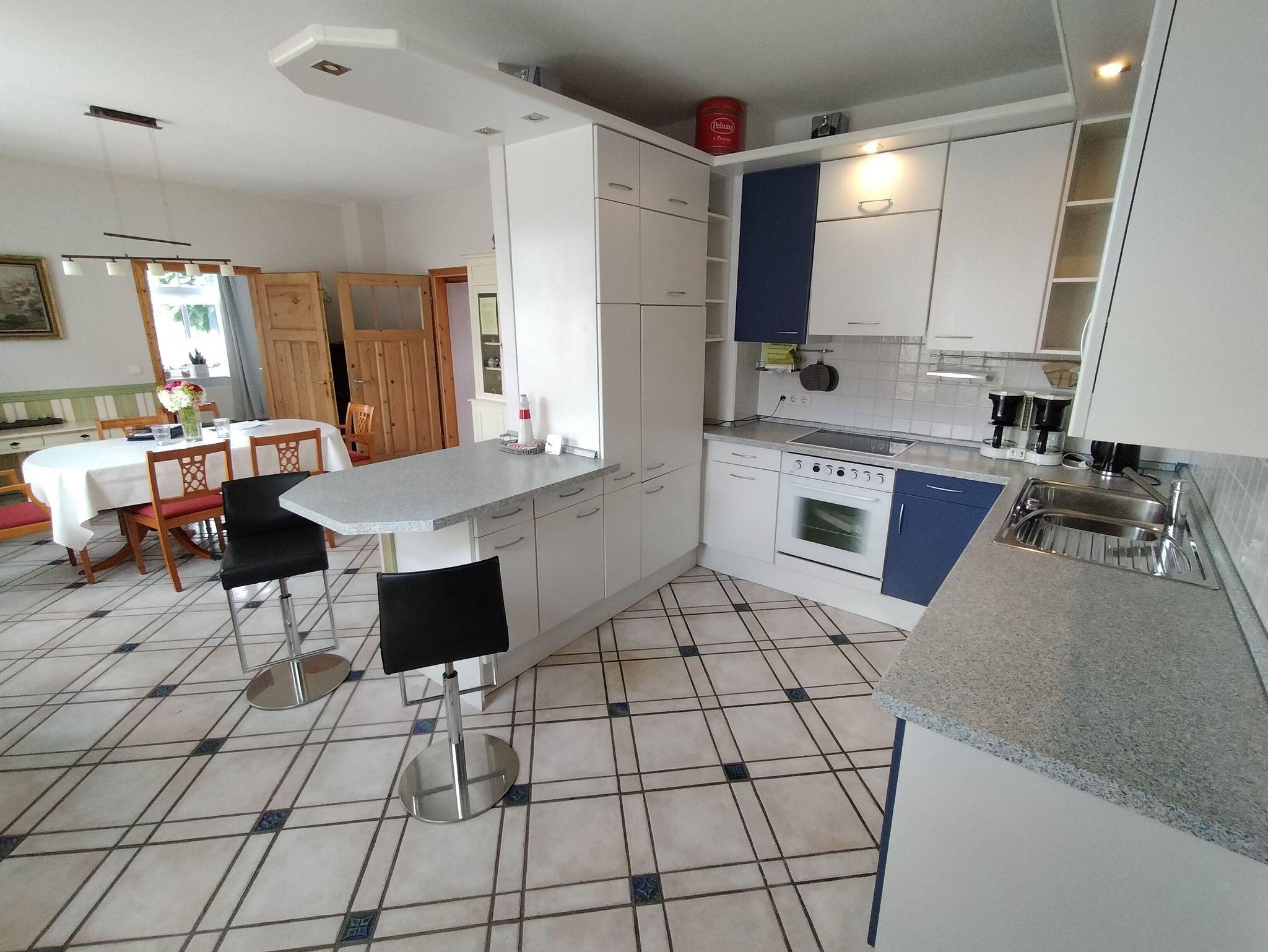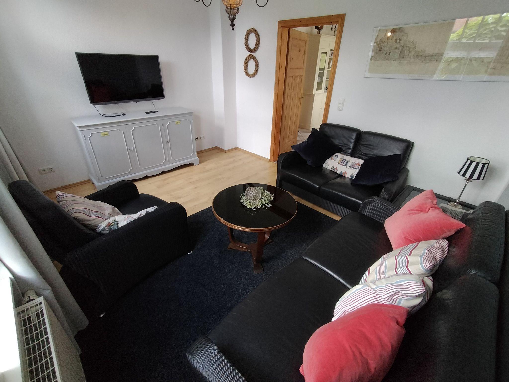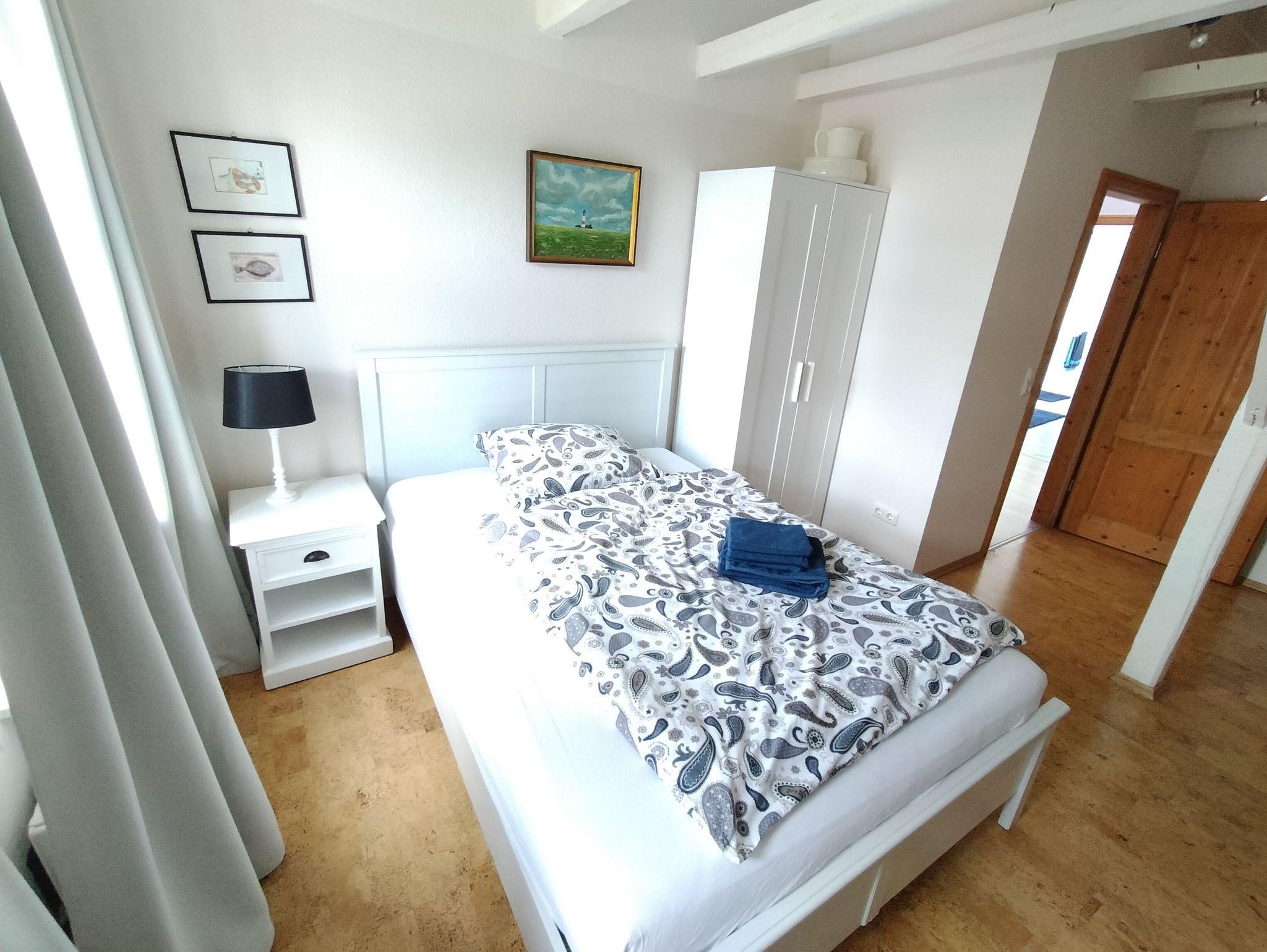 Die Wohnung erstreckt sich über 2 Etagen und verfügt über 2 Schlafzimmer mit Doppelbetten im Erdgeschoss. Im Dachgeschoss befinden sich 3 Schlafzimmer mit Einzelbetten. Das große Familienbad befindet sich im Dachgeschoss und verfügt über Badewanne, Dusche und WC. Im Erdgeschoss ist die Küche mit Essplatz und einem extra Wohnzimmer mit TV. Eine Spielesammlung für Spieleabende mit der ganzen Familie steht zur Verfügung.