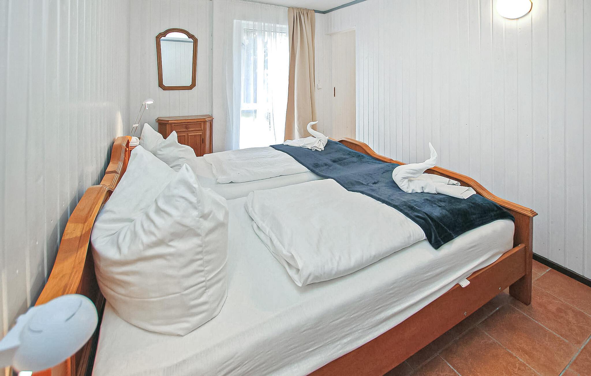 Idyllisk beliggende midt i skoven og mellem to søer - Rheinsberger og Großer Linowsee - er der et rummeligt, indhegnet feriekompleks med flere bungalows. Et badeområde og en kro kan nås efter 4-5 minutters gang. Robåde, motorbåde og kanoer kan lejes her, men du kan også bruge din egen. Butikker og andre spisemuligheder findes i Rheinsberg, cirka 4 km væk. Det enkle, ikke-ryger feriehus i stueplan til 4 personer har en stor stue (polstrede møbler, med en sovesofa til 2 personer, fladskærms-tv, spisebord) med et lille tekøkken (komfur, køleskab med fryserum , nogle med mikroovn, forskellige små køkkenmaskiner). Der er soveværelse (dobbeltseng) og badeværelse (bruser, toilet, hårtørrer), som blev totalrenoveret i 2022, møbleret, overdækket terrasse, insektbeskyttelse på vinduerne og justerbare el-radiatorer.Der er også parkeringsplads, grill , en barneseng efter anmodning, gratis WiFi og en legeplads er til rådighed på stedet. Efter anmodning kan morgenmad eller en rundstykkeservice bruges mod et gebyr. (Tilmeld 1 dag i forvejen!). Den samlede pris inkluderer slutrengøring, sengelinned, håndklæder og vand. Betales på stedet: spa-afgift, el efter forbrug, hvis det ønskes: morgenmad 13,50 EUR pr. person (bestil 1 dag i forvejen!), robåd 15 EUR, motorbåd 95 EUR, kajak eller kano 25 EUR. Kæledyr er tilladt i denne ejendom. Den lille ferieby Warenthin, en bydel i byen Rheinsberg, ligger midt i skoven, idyllisk mellem Rheinsberger og Großer Linowsee. Området rigt på skove og søer i udkanten af Mecklenburg Lake District og i naturparken Stechlin-Ruppiner Land har altid været et populært udflugtsmål og byder på talrige muligheder for en aktiv ferie.Området er særligt attraktivt for vandvandrere, fordi de mange vandområder i regionen er alle forbundet med hinanden. En udflugt i regionens uforstyrrede og rolige natur kan også anbefales for cyklister og vandrere.Der er kro i landsbyen samt udlejning af båd, kano og cykel. Den tidligere boligby Rheinsberg med sit imponerende slotsanlæg, den smukke gamle bydel med talrige restauranter og caféer, mange butikker, passagerbådsservice og badeanstalten ved søen Grienericksee ligger cirka 4 km væk.