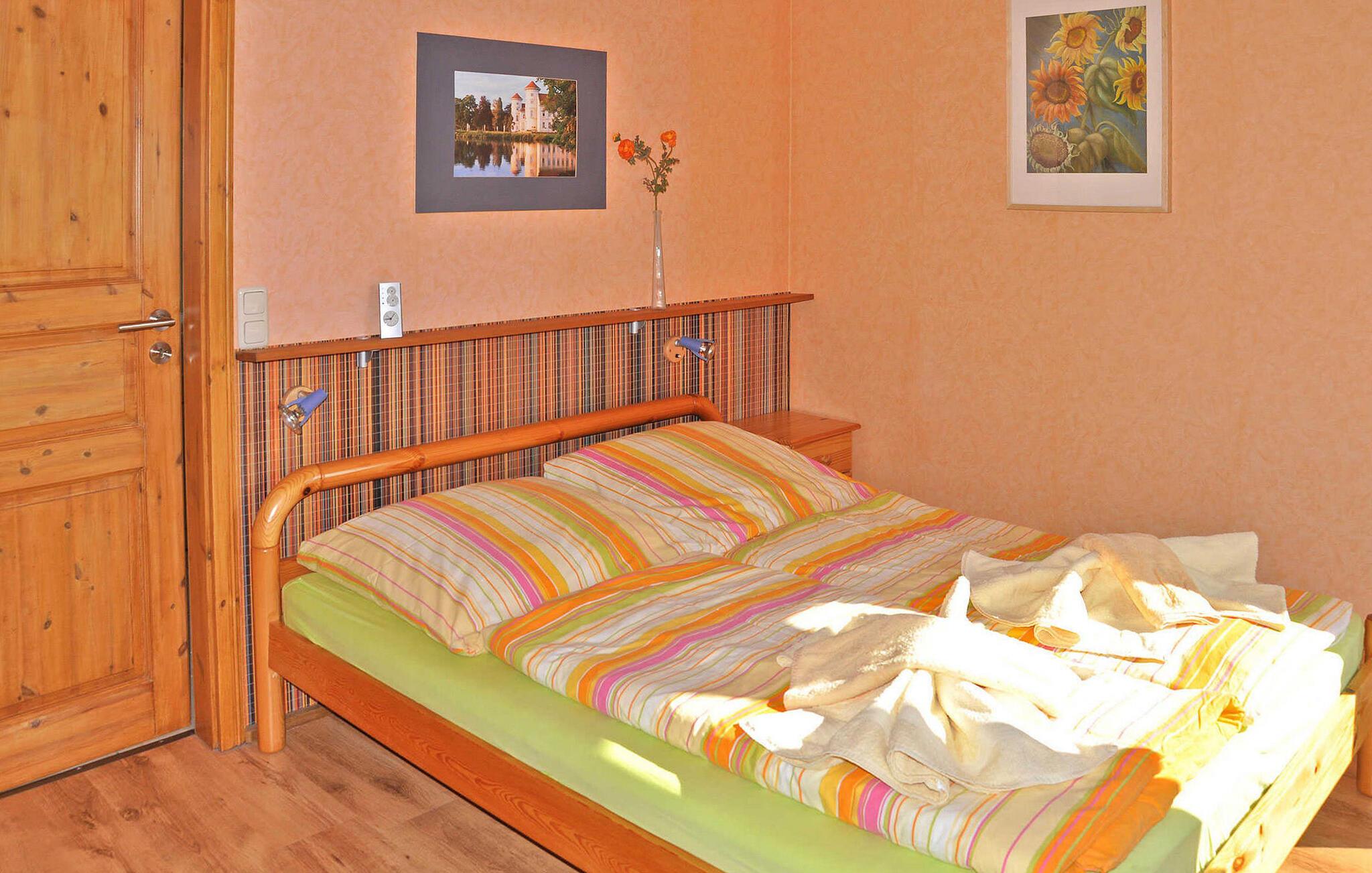 Idyllisk beliggende direkte ved Rhinen ligger det separate feriehus på en cirka 1.800 kvadratmeter stor, helt indhegnet beboelsesejendom. Du kan bade direkte fra den meget velholdte have i rokokostil. Slotskomplekset, togstationen samt en restaurant, et bageri og et supermarked ligger inden for få hundrede meter. Det cirka 45 kvm store ikke-ryger sommerhus (rygning tilladt udendørs). ) for op til 3 voksne og 1 baby er udstyret med centralvarme og insektnet på vinduerne og strækker sig over 2 etager. I det nederste område er der stue (sovesofa og ekstra seng til 1 person, lænestol, fladskærms-tv, radio/cd-afspiller, pejs inkl. brænde, spiseplads, udgang til terrasse), åbent køkken tilgængeligt via en lille trappe (e- Komfur med ovn, køleskab, fryser, mikroovn, diverse små køkkenmaskiner) og et gæstetoilet, i det øverste område (en anden trappe) et soveværelse (dobbeltseng) og badeværelse med brus/toilet. Gratis Wi-Fi, en barneseng, en høj stol, en møbleret terrasse med grill, en parkeringsplads og en cykelparkeringsplads er også tilgængelige. Tilgængelig på forespørgsel: byture gennem Rheinsberg i en veteranbil. Den samlede pris inkluderer slutrengøring, vand- og energiforbrug, sengelinned og håndklæder. Betales på stedet: turistskat. Kæledyr er ikke tilladt i denne ejendom. INGEN udlejning til MEDARBEJDERE/MONTERE. Den lille by Rheinsberg er et statsanerkendt feriested midt i det smukke Rheinsberg-sølandskab i Brandenburg. Regionen imponerer med utallige søer, der er forbundet med hinanden med kanaler. Et ideelt feriested, ikke kun for vandvandrere. Takket være den preussiske kronprins Friedrich, der residerede i rokokoslottet i Rheinsberg i 1700-tallet, blev stedet et blomstrende kulturcenter og inspirerede blandt andre Kurt Tucholsky og Theodor Fontane. I dag finder Kammeroperafestivalen og andre musikarrangementer sted hvert år på slottets område, som også omfatter et teater, kammeroperaen og Kurt Tucholsky-museet Udover den gamle bydel, som er værd at se med talrige restauranter og caféer , er der passagerbådture, båd- og cykeludlejning samt en badeanstalt på Grienericksee er blandt besøgsmagneterne i byen. Forbindelse til langdistancecykelstien Berlin-København er 20 km væk.