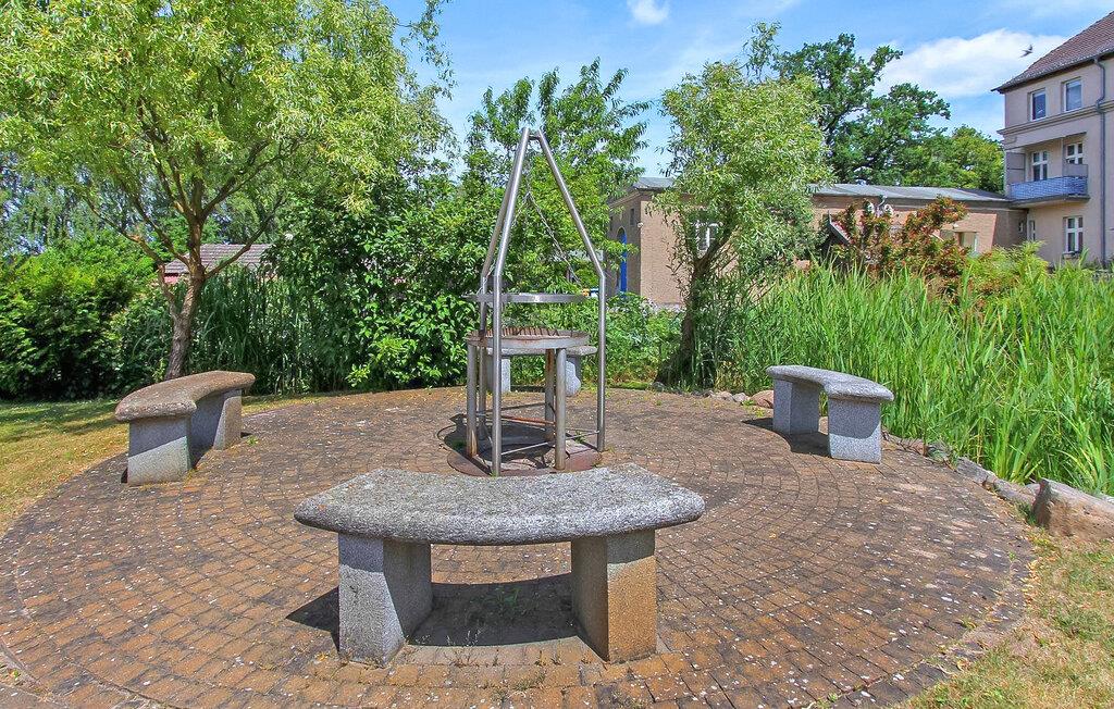 Beliggende direkte ved Grienericksee-søen, cirka 500 meter fra Rheinsberg Slotspark, på en cirka 1.100 kvadratmeter stor grund med eget wellness-område, ligger feriekomplekset med i alt ti separate lejligheder i varierende størrelser til to til seks personer. De er komfortabelt møbleret (opholds- og spisestue, køkken, nogle med pejs, fladskærms-tv, Wi-Fi), tilgængelige med elevator, og alle har balkon eller terrasse med udsigt over søen. Lejligheden ligger i stueetagen, er 60 kvadratmeter stor og har en rummelig opholdsstue (polstrede møbler med sovesofa, fladskærms-tv, stereoanlæg, spisebord, pejs), et åbent tekøkken (elkomfur med ovn, køleskab med frostboks, opvaskemaskine, mikrobølgeovn, diverse køkkenapparater), et soveværelse (dobbeltseng) og et bad/toilet. Den har også en balkon med udsigt over søen.