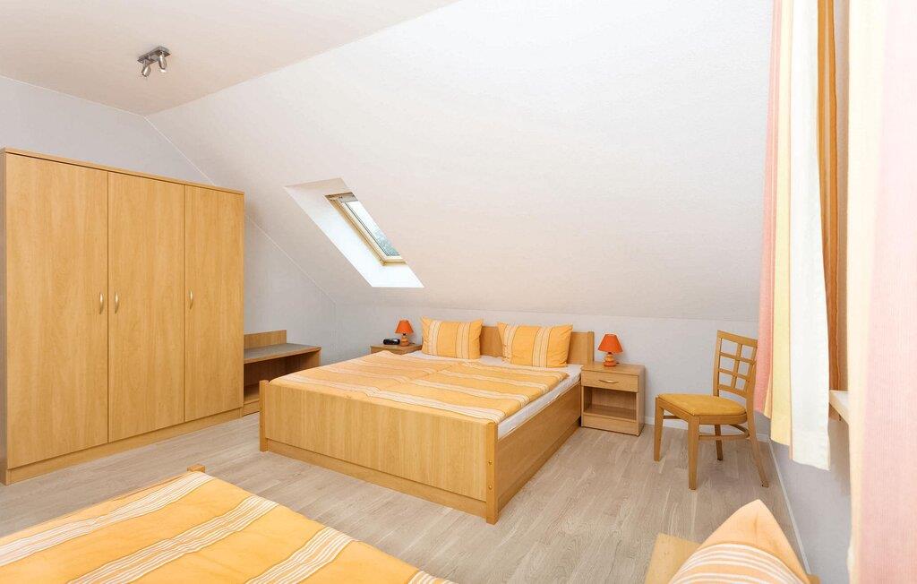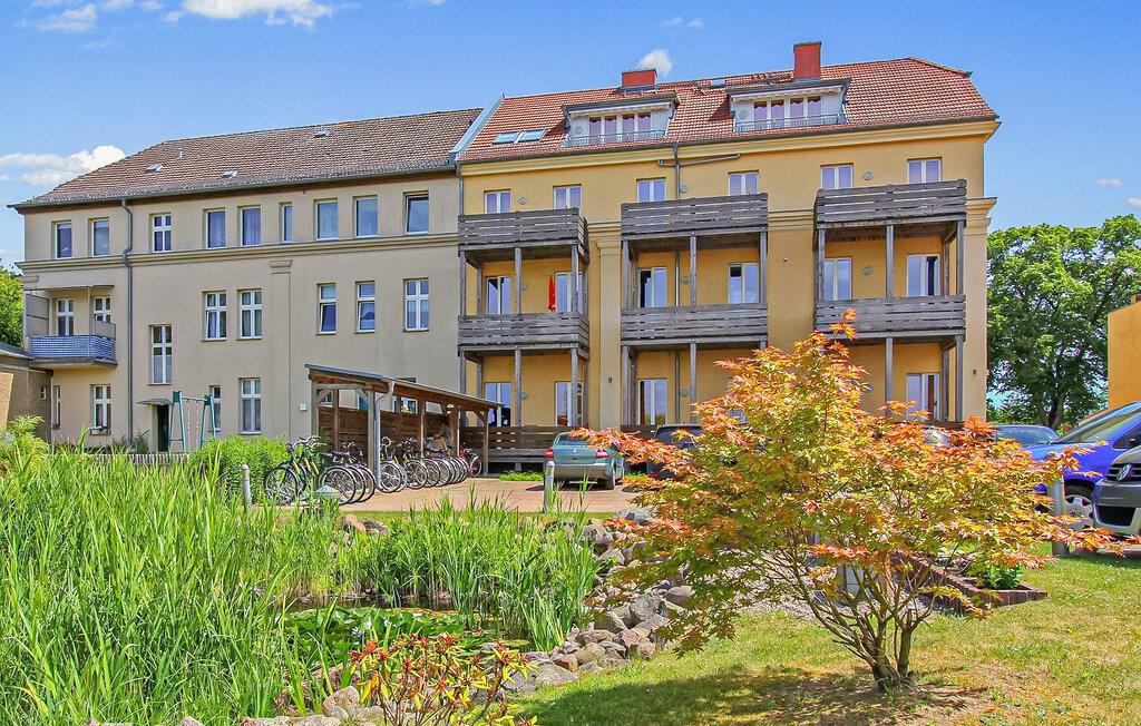 Beliggende direkte ved Grienericksee-søen, cirka 500 meter fra Rheinsberg Slotspark, på en cirka 1.100 kvadratmeter stor grund med eget wellness-område, ligger feriekomplekset med i alt ti separate lejligheder i varierende størrelser til to til seks personer. De er komfortabelt møbleret (opholds- og spisestue, køkken, nogle med pejs, fladskærms-tv, Wi-Fi), tilgængelige med elevator, og alle har balkon eller terrasse med udsigt over søen. Den 70 kvadratmeter store lejlighed på øverste etage har en rummelig opholdsstue (polstrede møbler med sovesofa, fladskærms-tv, stereoanlæg, pejs), et åbent tekøkken (spisebord, elektrisk komfur med ovn, køleskab med frostboks, opvaskemaskine, mikrobølgeovn, diverse køkkenapparater), et soveværelse (dobbeltseng) og et bad/toilet. Den har også en balkon med udsigt over søen.