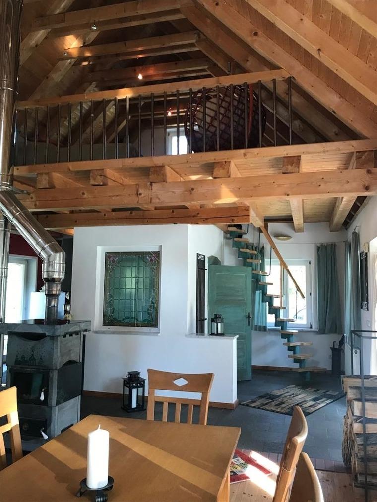 Eine ungestörte Nachtruhe ist auf einer Schlafgalerie (Boxspringbett) mit kleinem Balkon und bezaubernden Ausblick in die Natur gewährleistet.