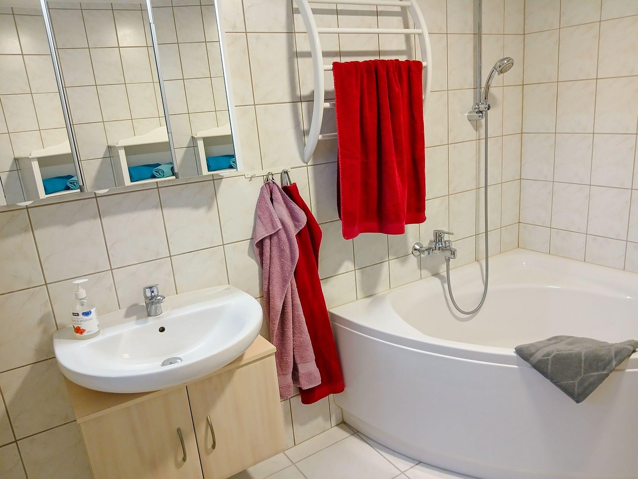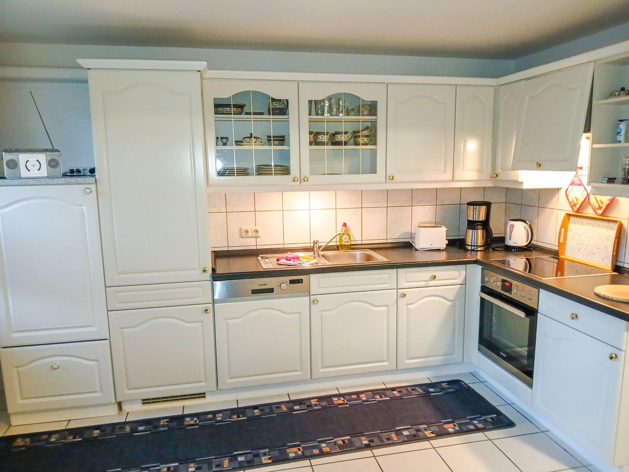 Die separate, voll ausgestattete Küche ist der perfekte Ort für eure kulinarischen Abenteuer. Hier findet ihr einen Herd mit Backofen, eine Kaffeemaschine, einen Kühlschrank, eine Spülmaschine, einen Wasserkocher und einen Toaster. Ein gemütlicher Essbereich in der Küche lädt dazu ein, gemeinsam zu speisen und den Tag zu planen. Das Bad verfügt über eine entspannende Badewanne sowie ein WC ? ideal, um nach einem ereignisreichen Tag zur Ruhe zu kommen.