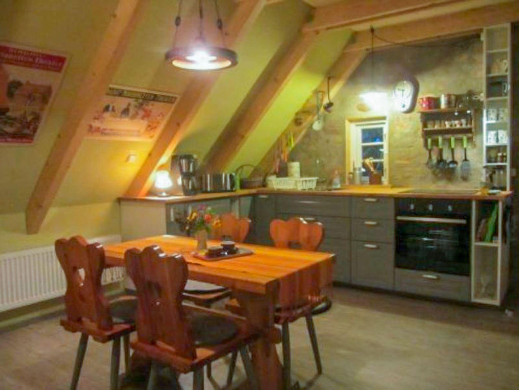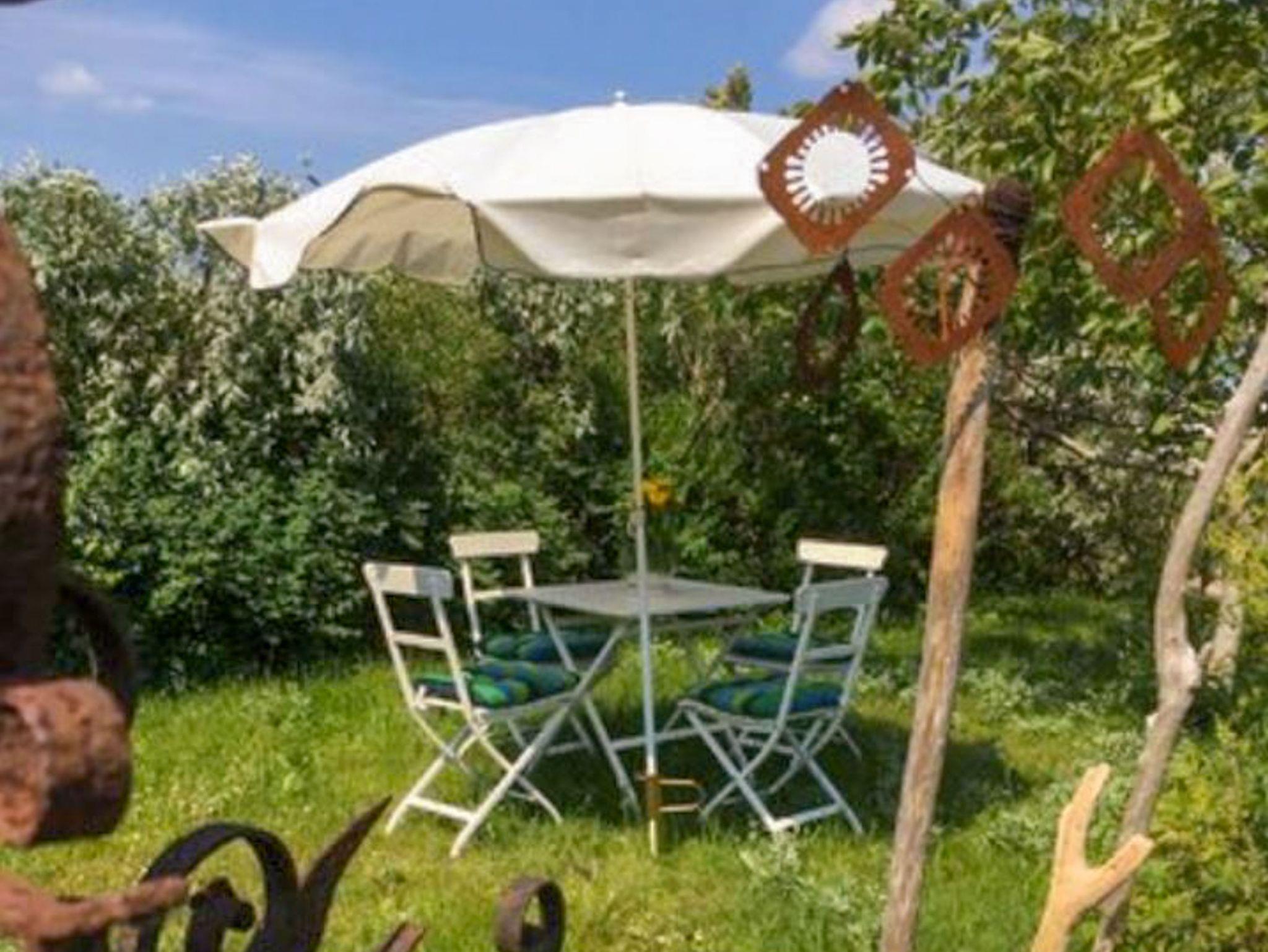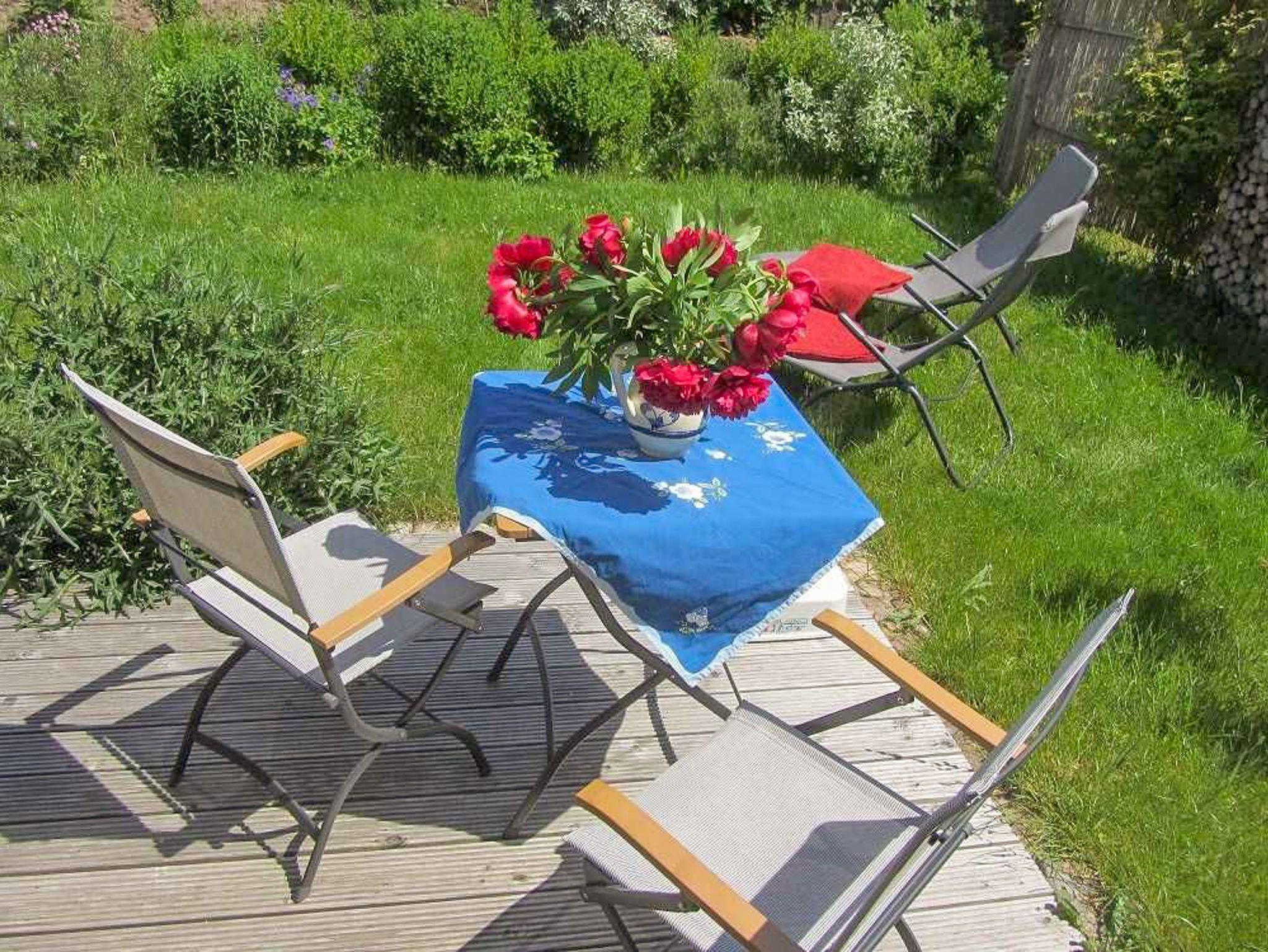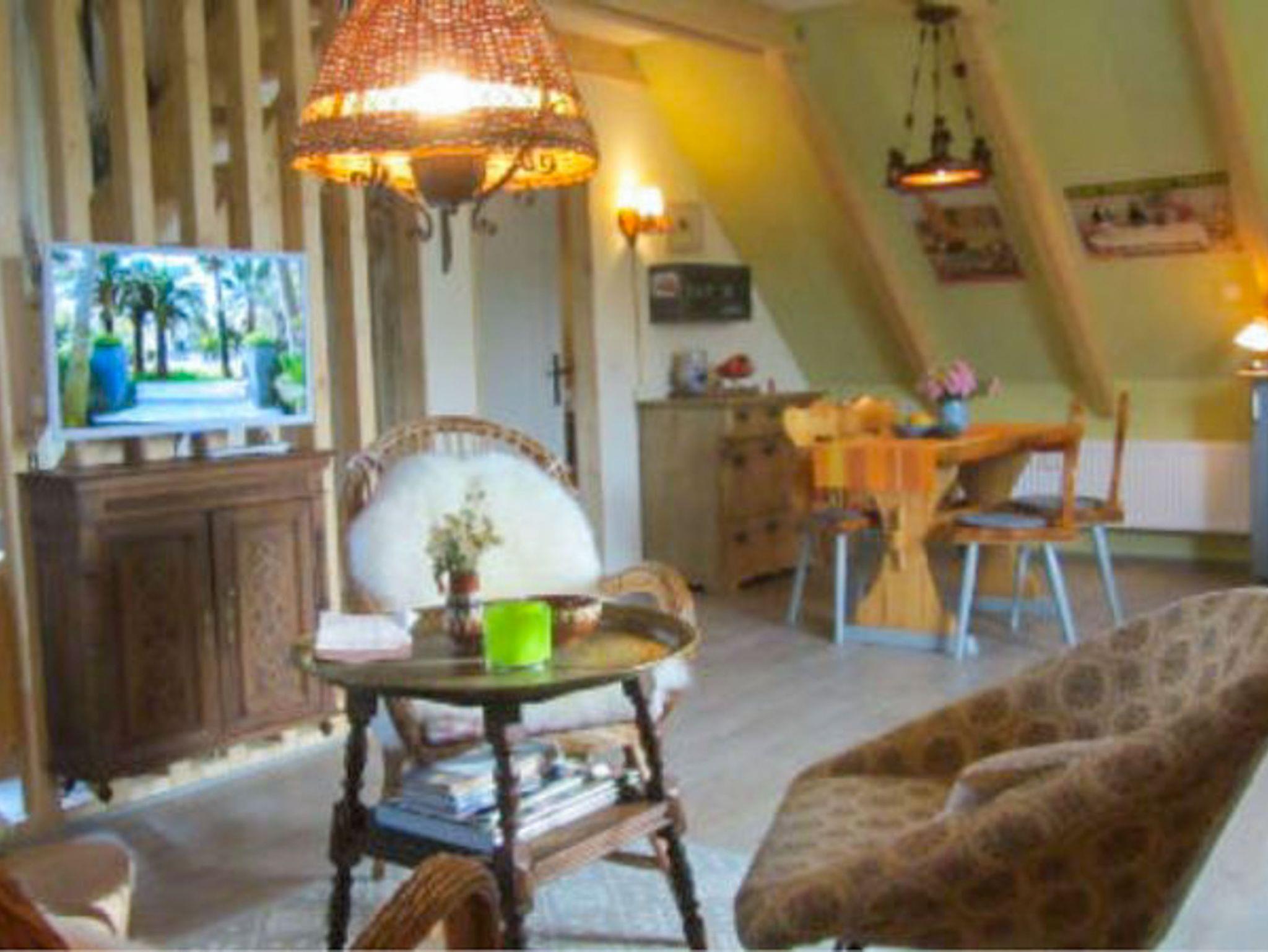 Hoch oben im Dachgeschoss unter dem charmanten Reetdach, erwartet dich Koras Dachkammer ? ein einzigartiges Urlaubsdomizil für zwei Personen, das mit seiner skandinavisch inspirierten, künstlerisch-verspielten Atmosphäre verzaubert. Dank eines eigenen Eingangs genießt du hier absolute Privatsphäre. Auf 63 m² verbinden sich Gemütlichkeit und stilvolle Details zu einem ganz besonderen Rückzugsort. Das Wohnzimmer lädt mit bequemen Sesseln, einem Sofa und TV zu entspannten Stunden ein, während der Essbereich mit offener Landhausküche zum gemeinsamen Kochen und Genießen bereit steht. Die voll ausgestattete Küche mit Herd, Backofen, Kühlschrank, Spüle, Kaffeemaschine, Toaster und Wasserkocher bietet alles, was du für dein Frühstück oder ein romantisches Abendessen brauchst. Das separate Schlafzimmer mit einem kuscheligen Doppelbett (150x200) und zwei Kleiderschränken sorgt für erholsame Nächte. Auch das Bad mit Dusche und WC bietet alles für einen angenehmen Aufenthalt. Draußen erwartet dich dein eigener, abgegrenzter Sitzbereich im Garten ? perfekt für ein Frühstück in der Morgensonne oder einen entspannten Abend mit einem guten Glas Wein. Hier kannst du die Ruhe genießen, die frische Luft atmen und einfach den Alltag hinter dir lassen.