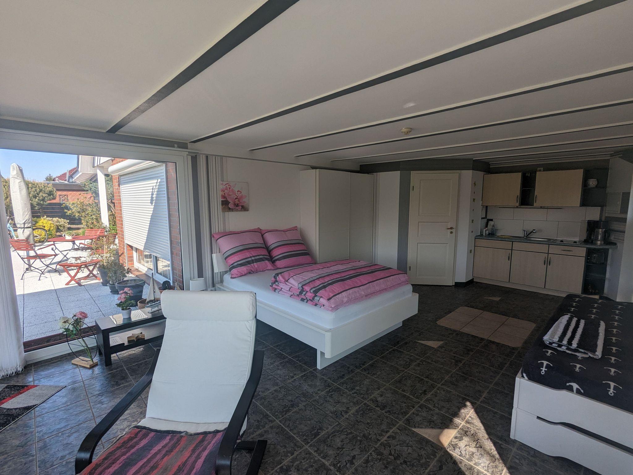 Das Appartement Gutmann ist ein kleines helles und freundlich, in sehr ruhiger Lage gelegenes Domizil perfekt zur Entspannung geeignet. Abgerundet mit einem Sitzplatz in schönem, gepflegten Garten, Der Wohn- Schlafraum hat eine Fußbodenheizung, die Küchenzeile ist ausgestattet mit einem Cerankochfeld mit 2 Platten, ein Doppelbett 1,40 x 2,00 m und 1 Liege 0,90 x 2,00 m stehen zum ausruhen bereit. Die Aufbettung für Kind bis 6 Jahre ist möglich für 10,00 € pro Nacht. Der Strand in Neuhaus erreichen die Gäste in ca. 7 min. Autofahrt oder auch mit dem Fahrrad drch den Wald. Ideal für Radler auf dem neuen Radweg direkt zum Strand, Einkaufsmöglichkeiten bieten sich in in Ribnitz Boddencenter.