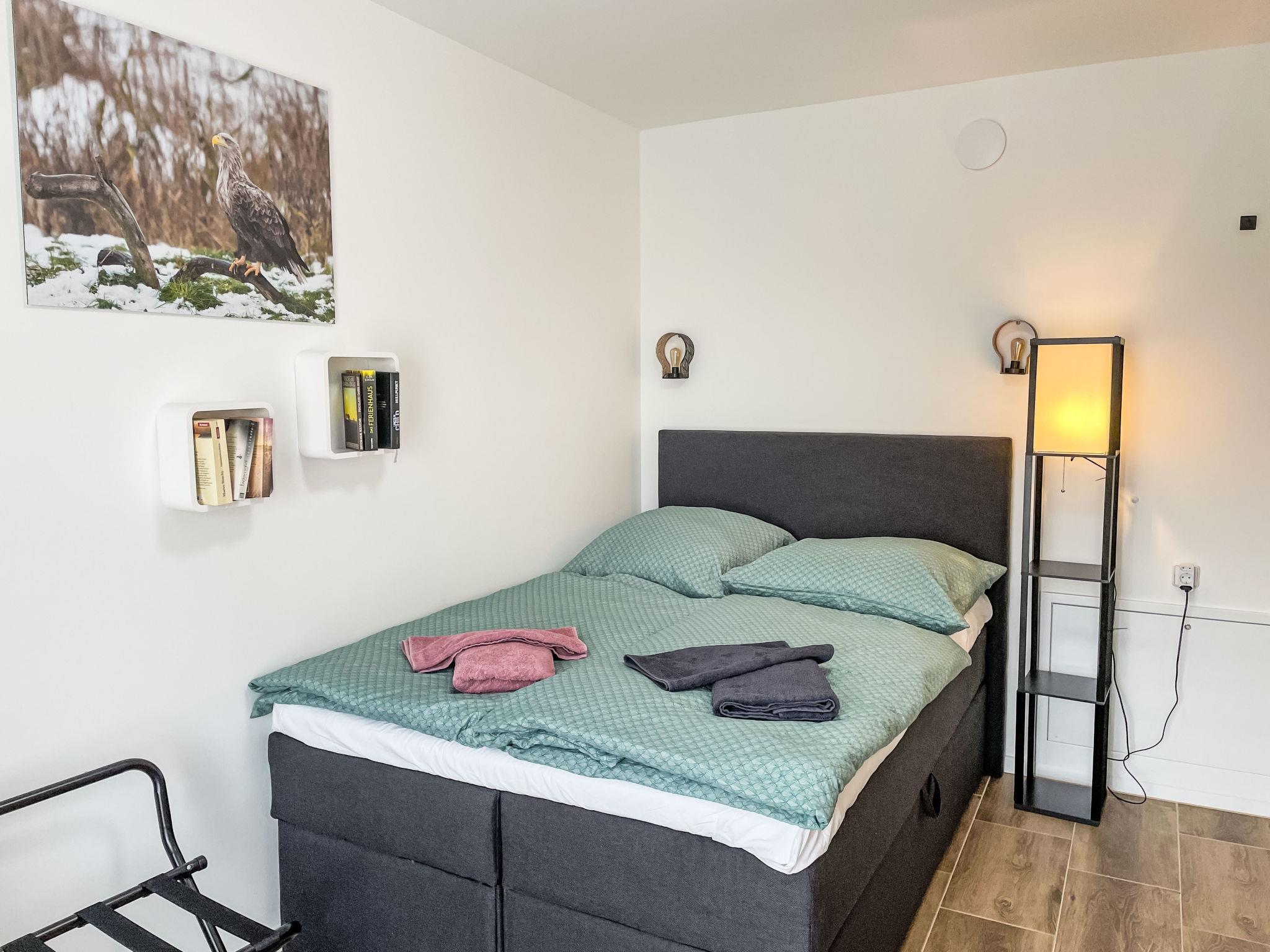 Beautiful, cosy bungalow "Der kleine Kranich", built in 2024, surrounded by meadows and fields. In the district of Neuendorf 2.5 km from the centre of Neuendorf-Heide, 8.5 km from the centre of Lüdershagen, 14 km from the centre of Ribnitz-Damgarten, in the residential district, 26 km from the sea, 200 m from the beach, 200 m of lagoon. Private: garden with flowers and trees. In the complex: storage room for bicycles. Parking on the premises. Shop 12 km, supermarket 10.5 km, restaurant 4 km, bus stop "Neuendorf" 150 m, railway station "Ribnitz-Damgarten" 12 km, grass beach "Saaler Bodden" 200 m, thermal baths "Bodden Therme" 15 km. Cycle lane 20 m. Nearby attractions: Kloster Ribnitz 15 km, Bernsteinmuseum 15 km, Stralsund 40 km. Hiking paths: Fischland Darß Zingst 10 km. Please note: car recommended. There is a beach chair and a herb garden.
