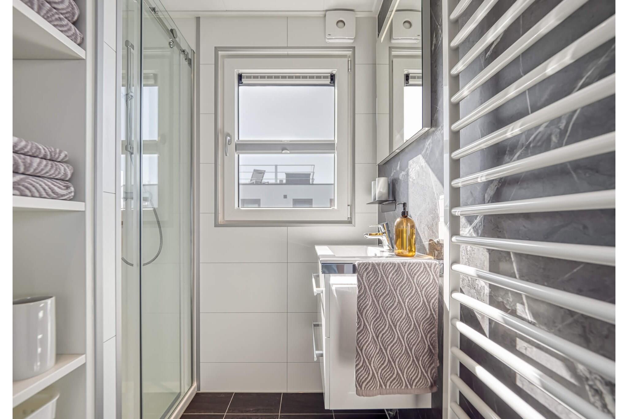 En indbydende ferielejlighed i stueetagen kun 12 km fra den baltiske kystlinje, denne stilfulde lejlighed er skræddersyet til par eller små familier. Køkkenet med keramiske kogeplader er fyldt op til ubesværet madlavning, med en kaffemaskine, mikroovn og opvaskemaskine til moderne bekvemmelighed. Den hyggelige stue/spisestue indbyder til afslappet lounging med satellit-tv, en varm gaspejs og en elegant spiseplads. To dobbeltværelser (160 × 200 cm) giver afslappende tilflugtssteder, parret med et moderne badeværelse med bruser, hårtørrer og centralvarme. Et separat toilet sikrer ekstra komfort, mens aircondition holder tingene kølige under sommerophold. Træd udenfor for at nyde to terrasser - de perfekte steder at sole sig i solen, spise udendørs eller slappe af på liggestolene. Beliggende få skridt fra sejlads og svømning (5 m!), og kun få minutter fra restauranter (200 m) og butikker (500 m), forener denne ejendom ro med bekvemmelighed. Den inkluderede vaskepakke, tagterrasse og legende havestemning afrunder et veludstyret ophold til rolige feriestunder.