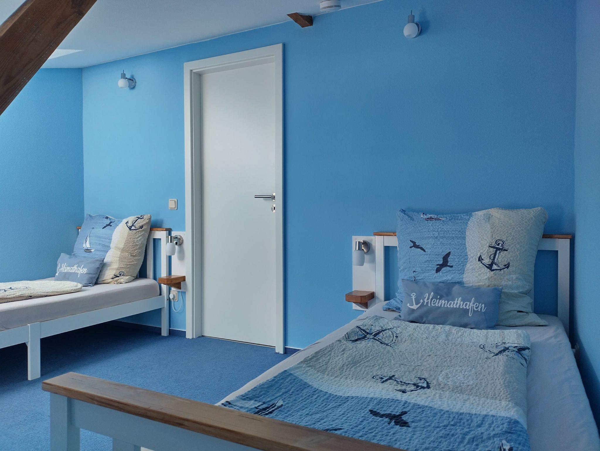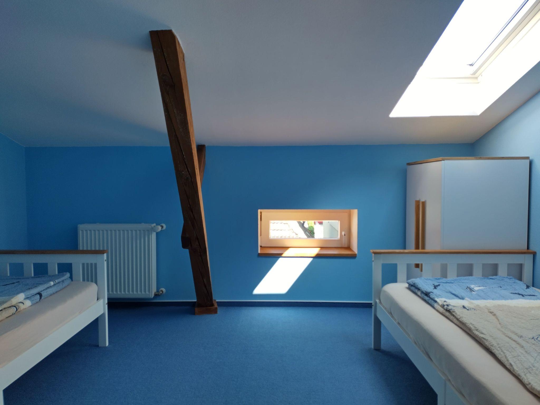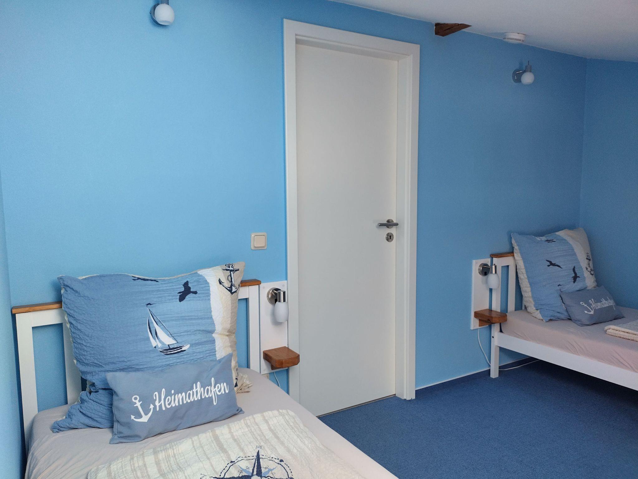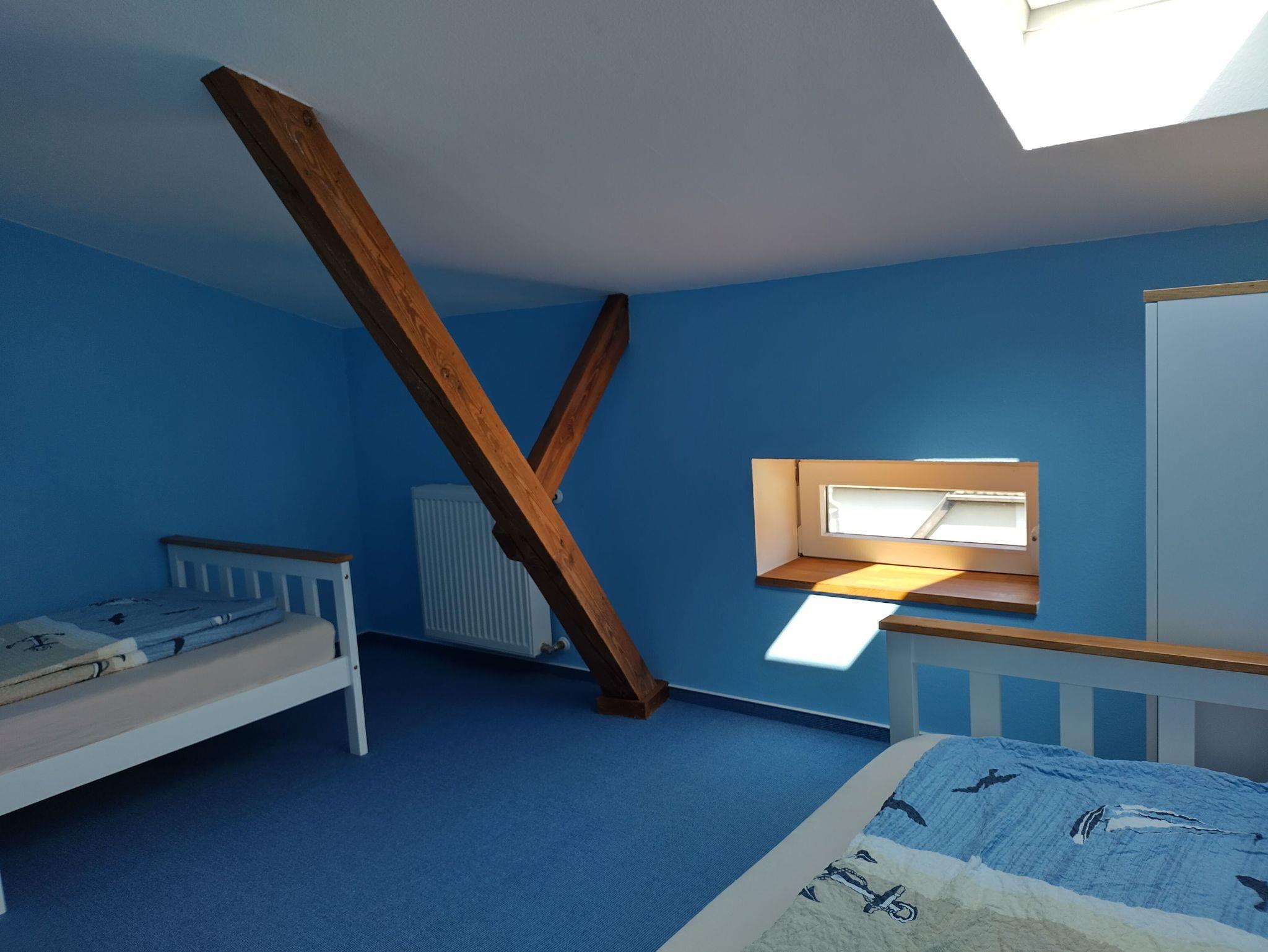 Das eine Schlafzimmer hat ein Doppelbett (1,8m x 2m), das andere Schlafzimmer hat ein Einzelbett (0,9m x 2m) mit einer weiteren Schlafmöglichkeit (0,9m x 2m). Die Dachfenster in den Schlafzimmern können abgedunkelt werden. Im Wohnzimmer gibt es eine Couch und einen Flachbild-TV (SAT). WLAN, Handtücher und Bettwäsche sind inklusive. Es können ein Reisebett, Beistellbett/Wiege oder Kinderhochstuhl kostenlos dazu gebucht werden.