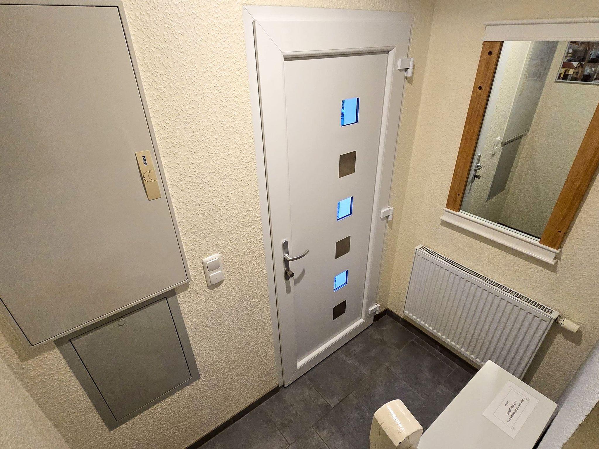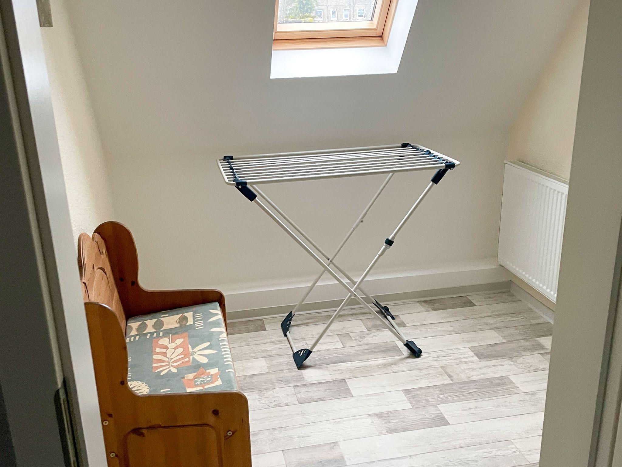 Die 50 m² große Ferienwohnung Ehling bietet einen gemütlichen Aufenthalt für 4 Personen. Sie befindet sich im Dachgeschoss eines Einfamilienhauses und hat einen separaten Eingang, welcher dich zunächst in einen kleinen Flur mit Garderobe führt. Über eine Treppe erreichst du dann die anderen Zimmer der Ferienwohnung. Der Wohnbereich mit offener Küche ist einladend gestaltet und bietet dir ein Schlafsofa (180x220), sowie einen TV für entspannte Abende. Die offene Küche ist praktisch ausgestattet mit zwei Herdplatten, einem Minibackofen für kleine Gerichte wie Brötchen oder Pizza, einem Kühlschrank mit Gefrierfach, einer Kaffeemaschine, einem Wasserkocher und einem Toaster. Am Esstisch kannst du deine Mahlzeiten genießen. Das separate Schlafzimmer verfügt über ein Doppelbett (180x200), einen Kleiderschrank mit ausreichend Stauraum und einen TV, sodass du auch hier deine Lieblingsserie schauen kannst. Das Bad ist mit einer Dusche und einem WC ausgestattet.