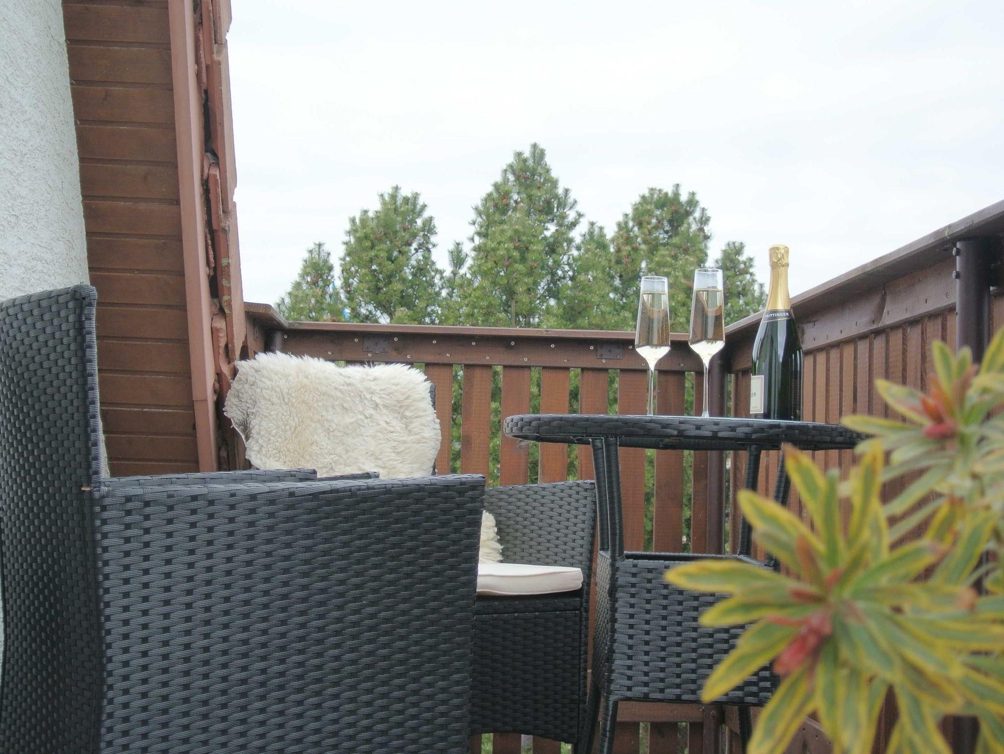 Der Balkon bietet eine Sitzgruppe und von Ihrer Vermieterin können Sie sich einen Grill ausleihen.