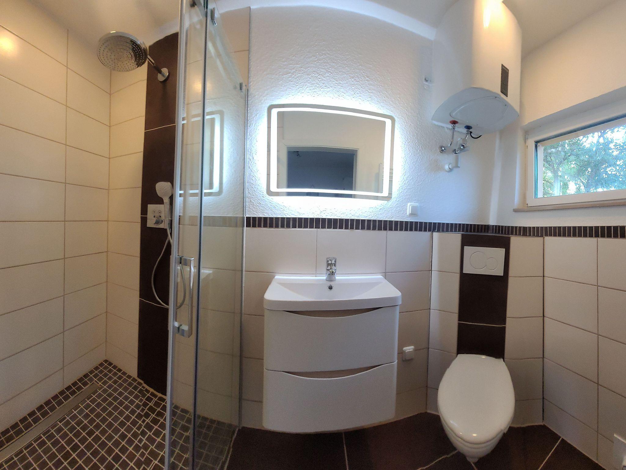 Außerdem befindet sich im Erdgeschoss ein Bad mit Dusche und WC.