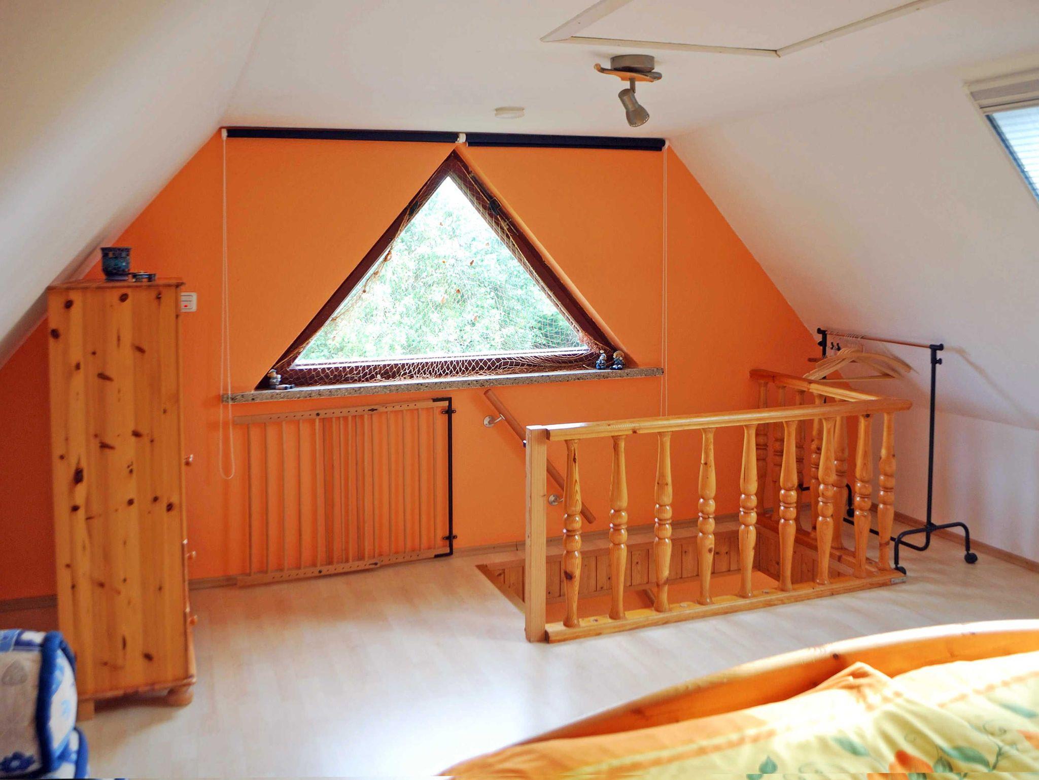 Im Obergeschoss liegt das Schlafzimmer, welches mit einem Doppelbett (180x200; getrennte Matrazen) ausgestattet ist.