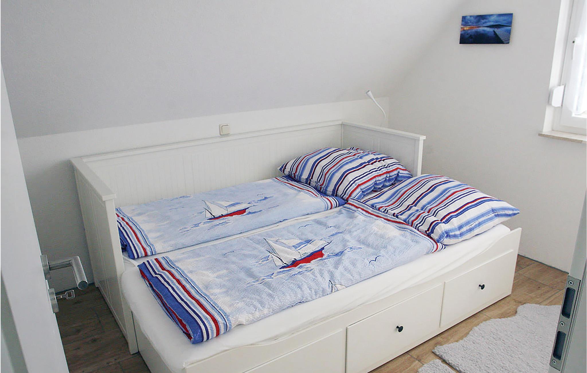 Ideelle betingelser for at surfe i omgivelserne, for at kite, sejle i robåd eller kano, skate, cykle, ride, vandre og fiske. Fremragende vandsportsmuligheder: Badeglæde i Boddens kurbad Ribnitz-Damgarten, i Aquadrom Graal-Müritz og i kurcentrum Zingst, vandskianlæg i Ribnitz OT Körkwitz, piratfestspillene (om sommeren) på Rügen og hansestæderne Rostock og Stralsund. Oprindelige beværtninger, kroer og hyggelige caféer samt indkøbsmuligheder samt biograf og teater i de omgivende byer. Til forår og efterår kan I beundre tranernes flugt. Sengene i soveværelser 2 og 3 er udtrækssenge.