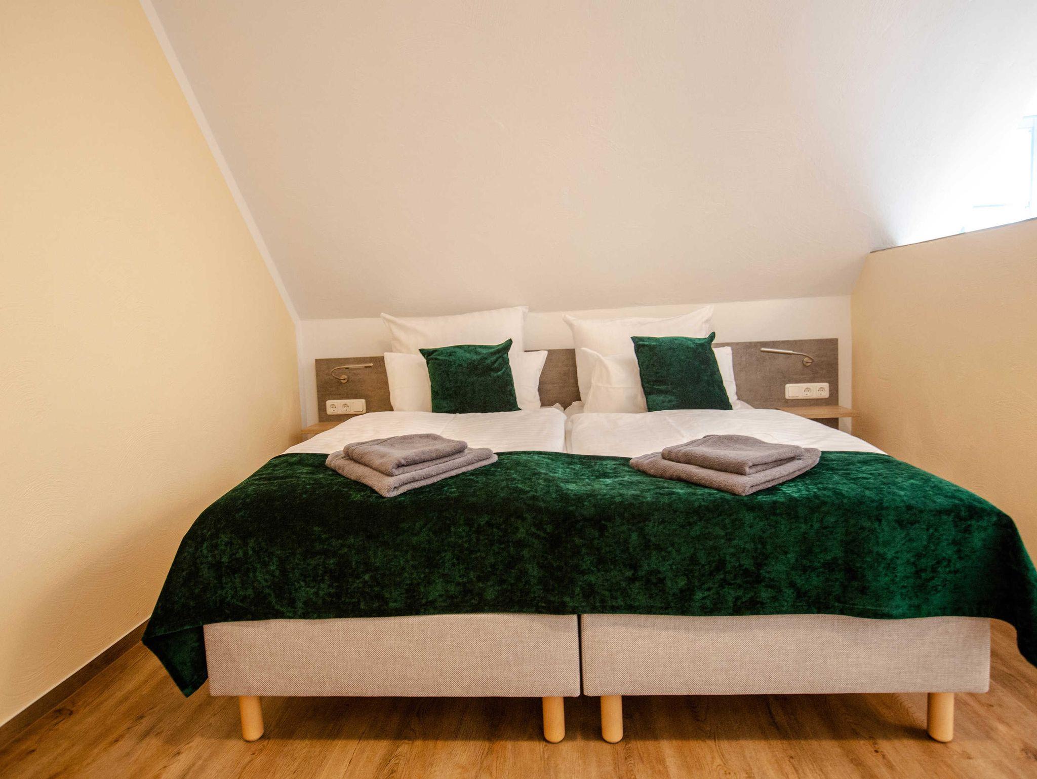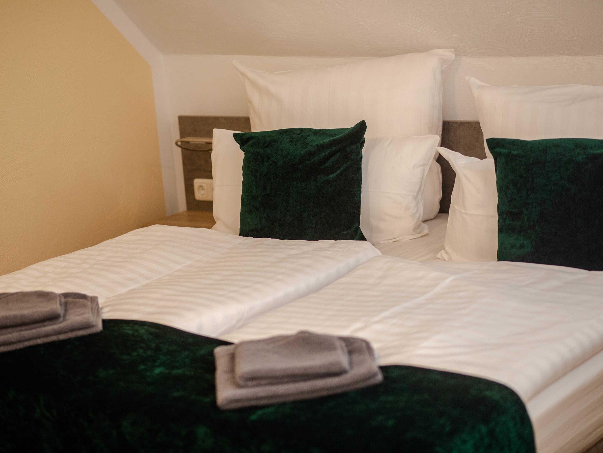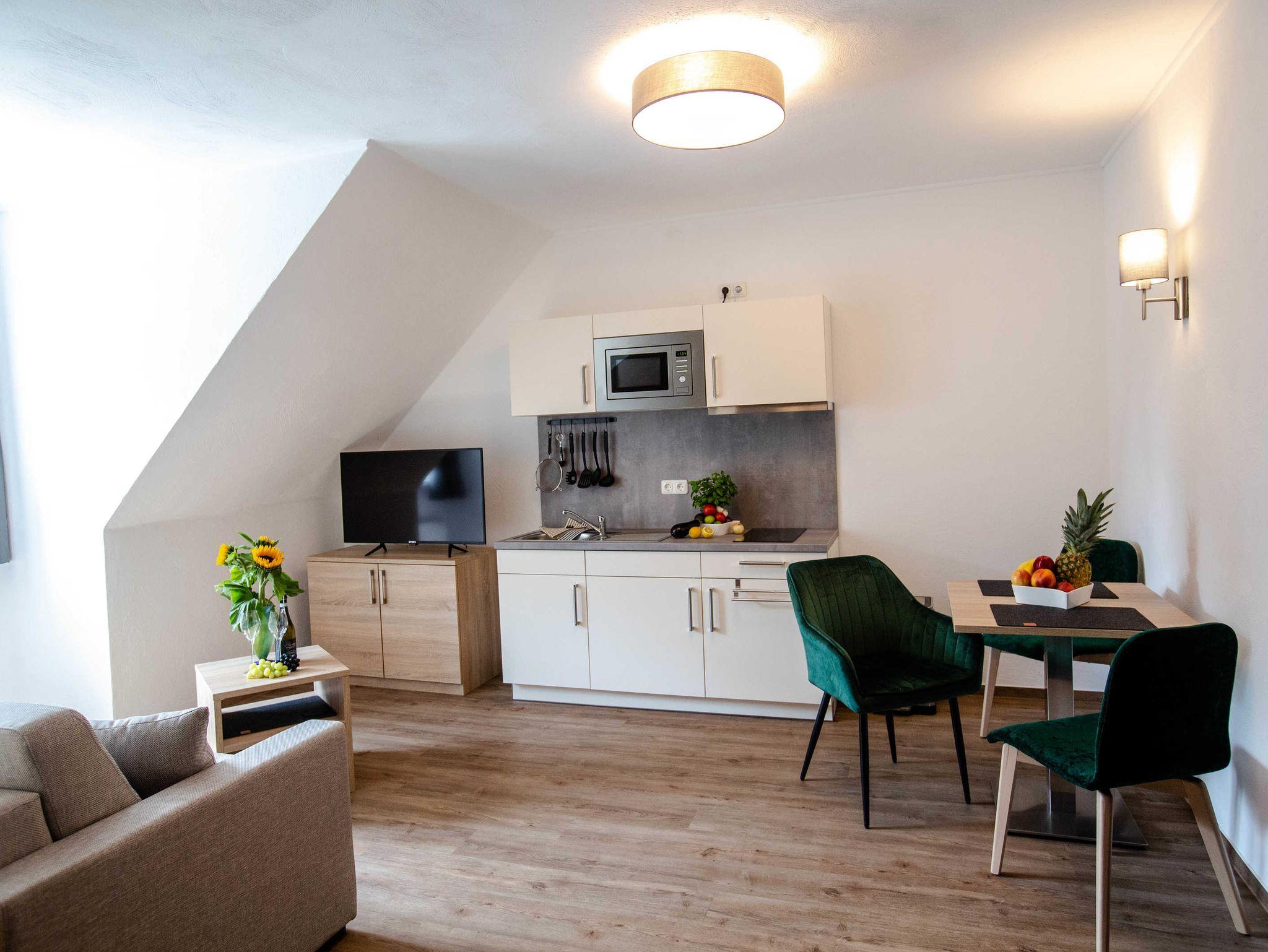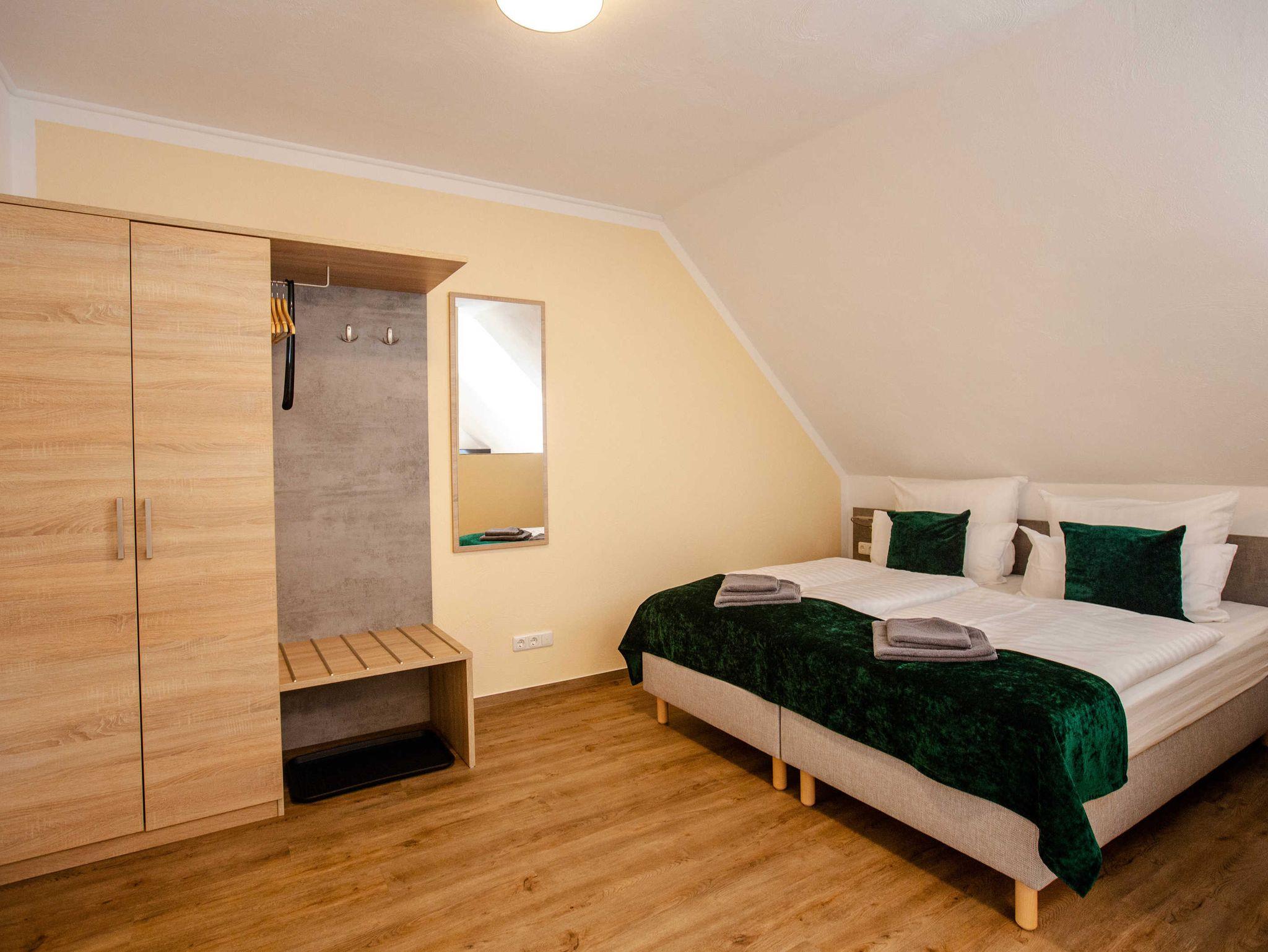 2022 haben wir in dem unter Denkmalschutz stehendem Haupthaus drei Apartments/Ferienwohnungen mit integrierter Küche eingerichtet, eine Aufbettung für 1 Person ist möglich. Des Weiteren verfügen wir über ein Doppelzimmer, welches jederzeit auch als Einzelzimmer gebucht werden kann.
