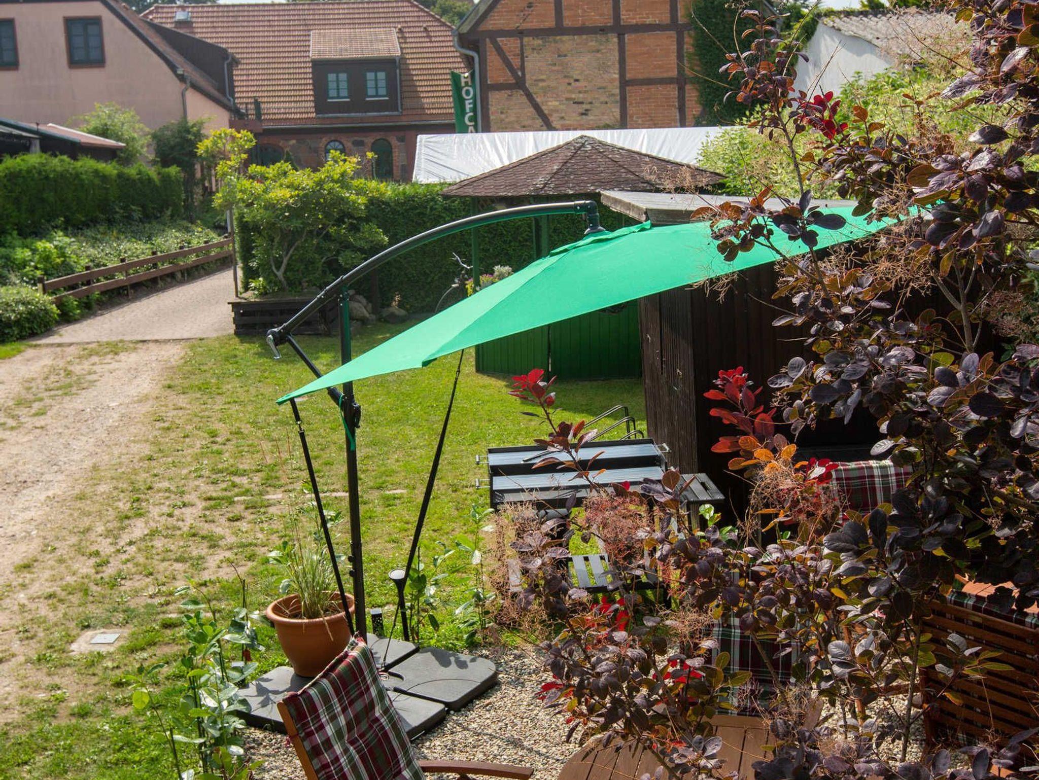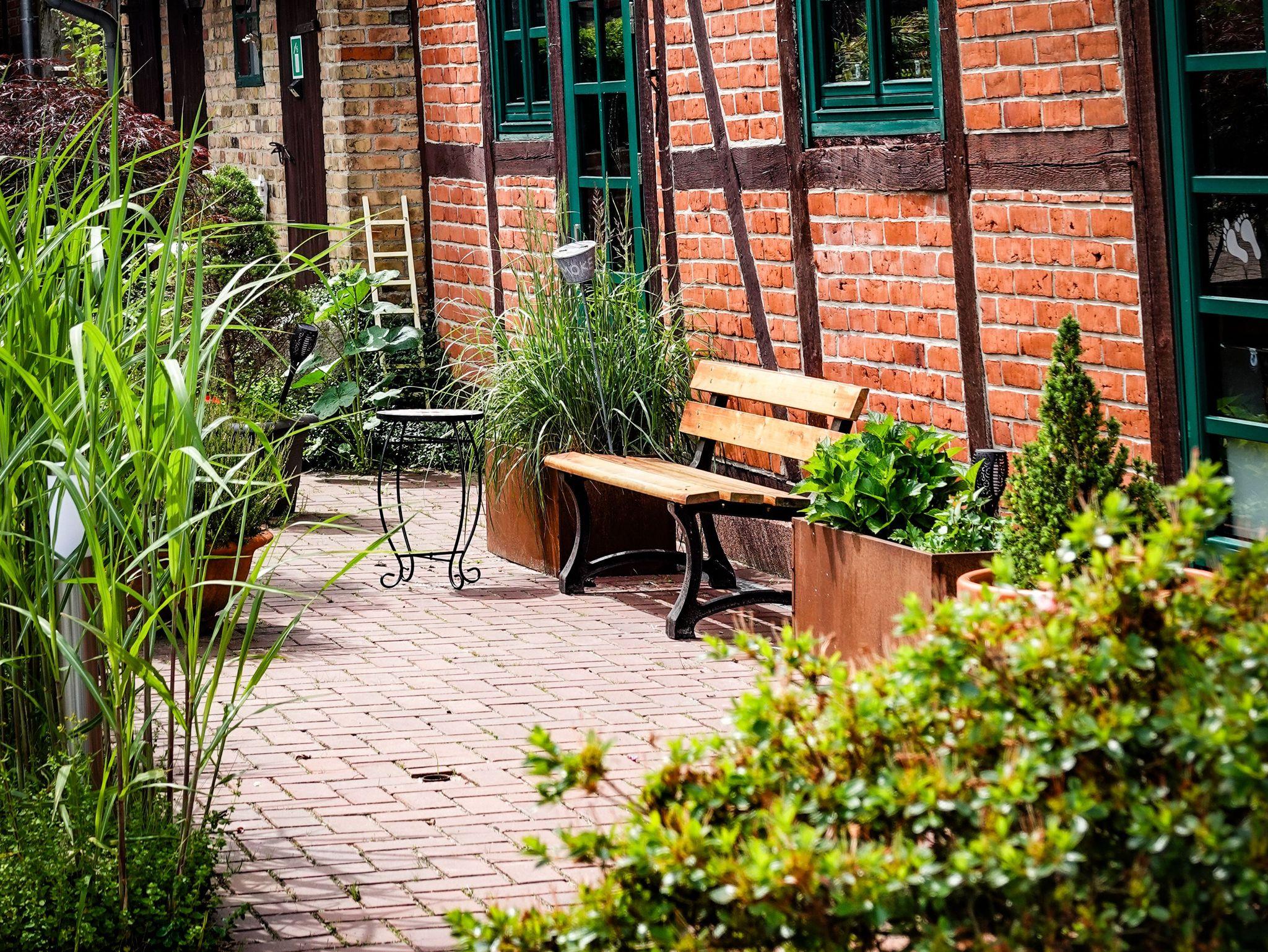 Vom Marktplatz aus gelangen Sie auf einen ruhigen Drei-Seiten-Hof. Im Innenhof befindet sich eine Fachwerkscheune. Des Weiteren die Parkplätze und eine Sitz-/Grillecke für unsere Gäste.