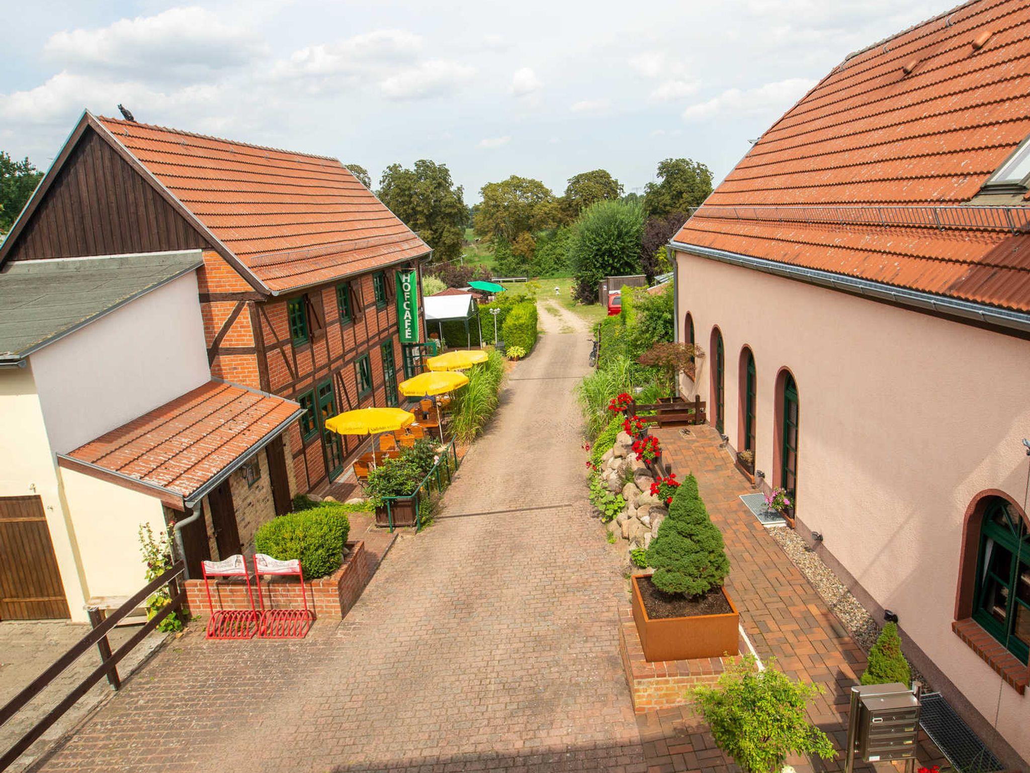 Vom Marktplatz aus gelangen Sie auf einen ruhigen Drei-Seiten-Hof. Im Innenhof befindet sich eine Fachwerkscheune. Des Weiteren die Parkplätze und eine Sitz-/Grillecke für unsere Gäste.