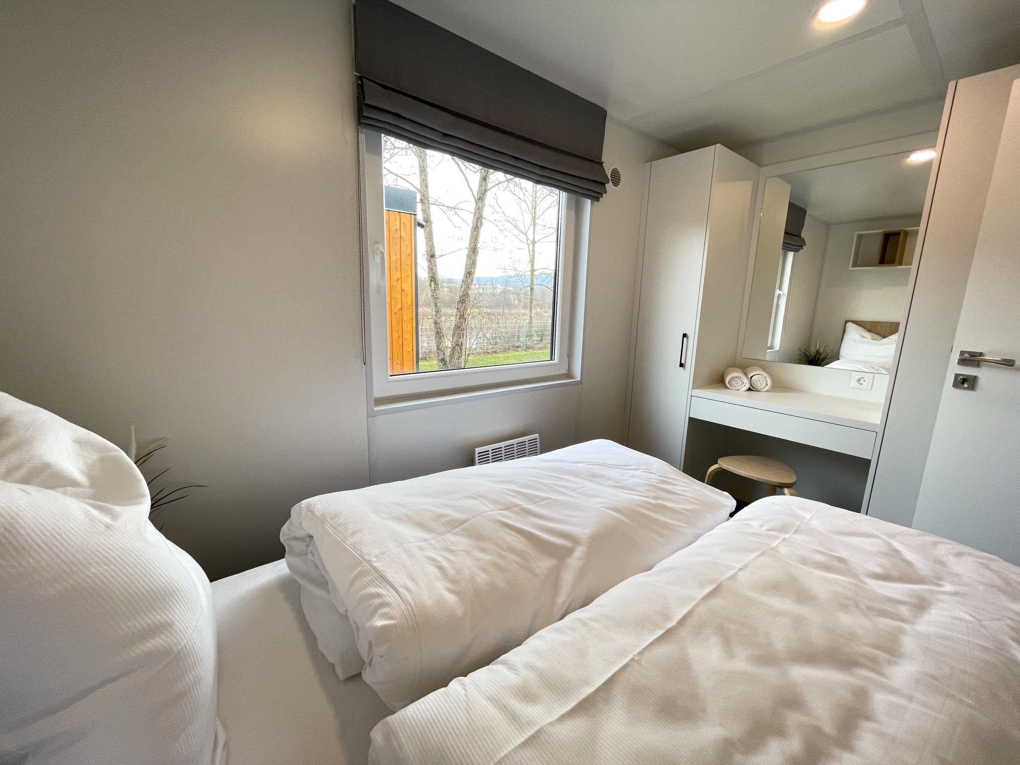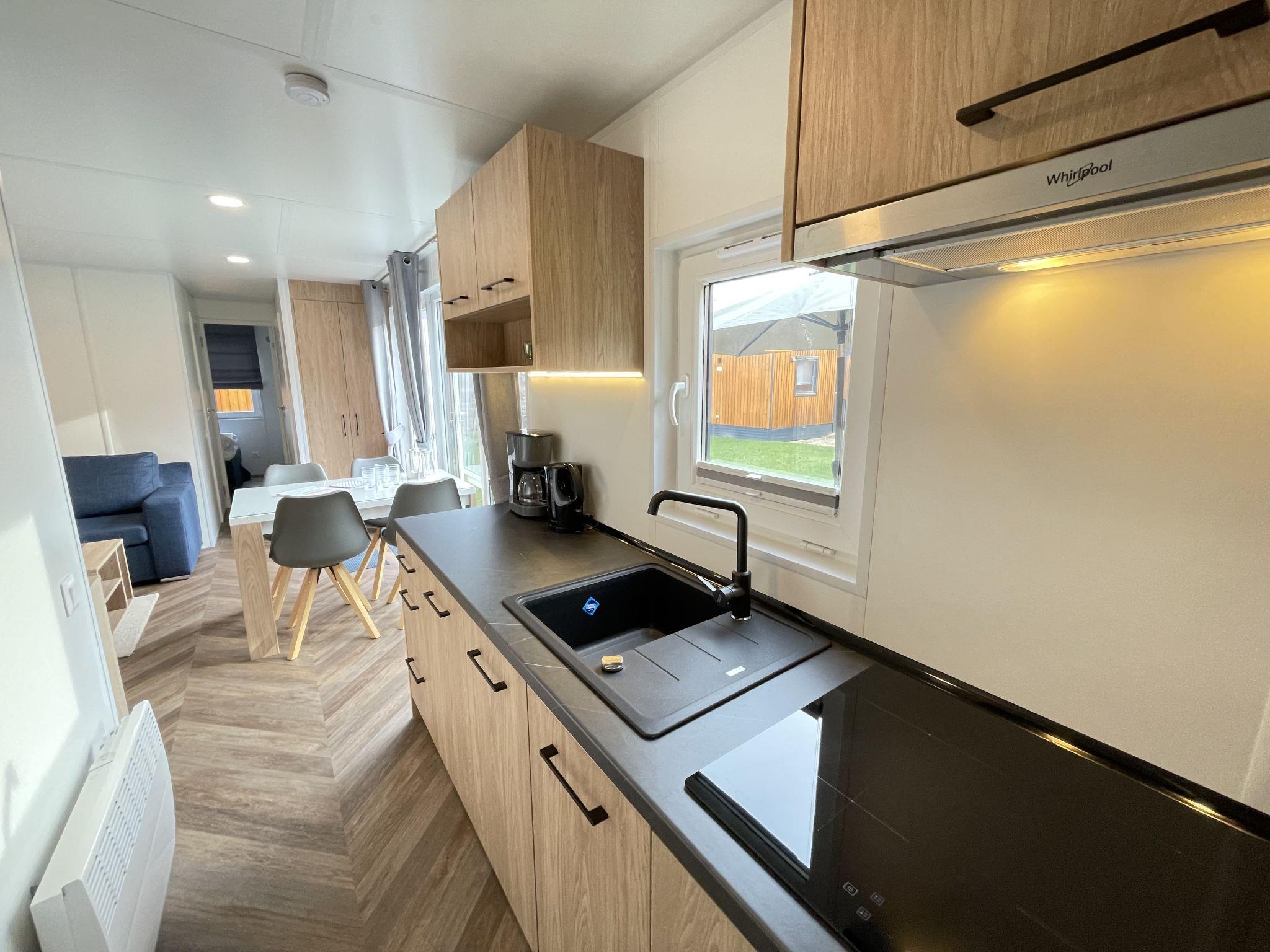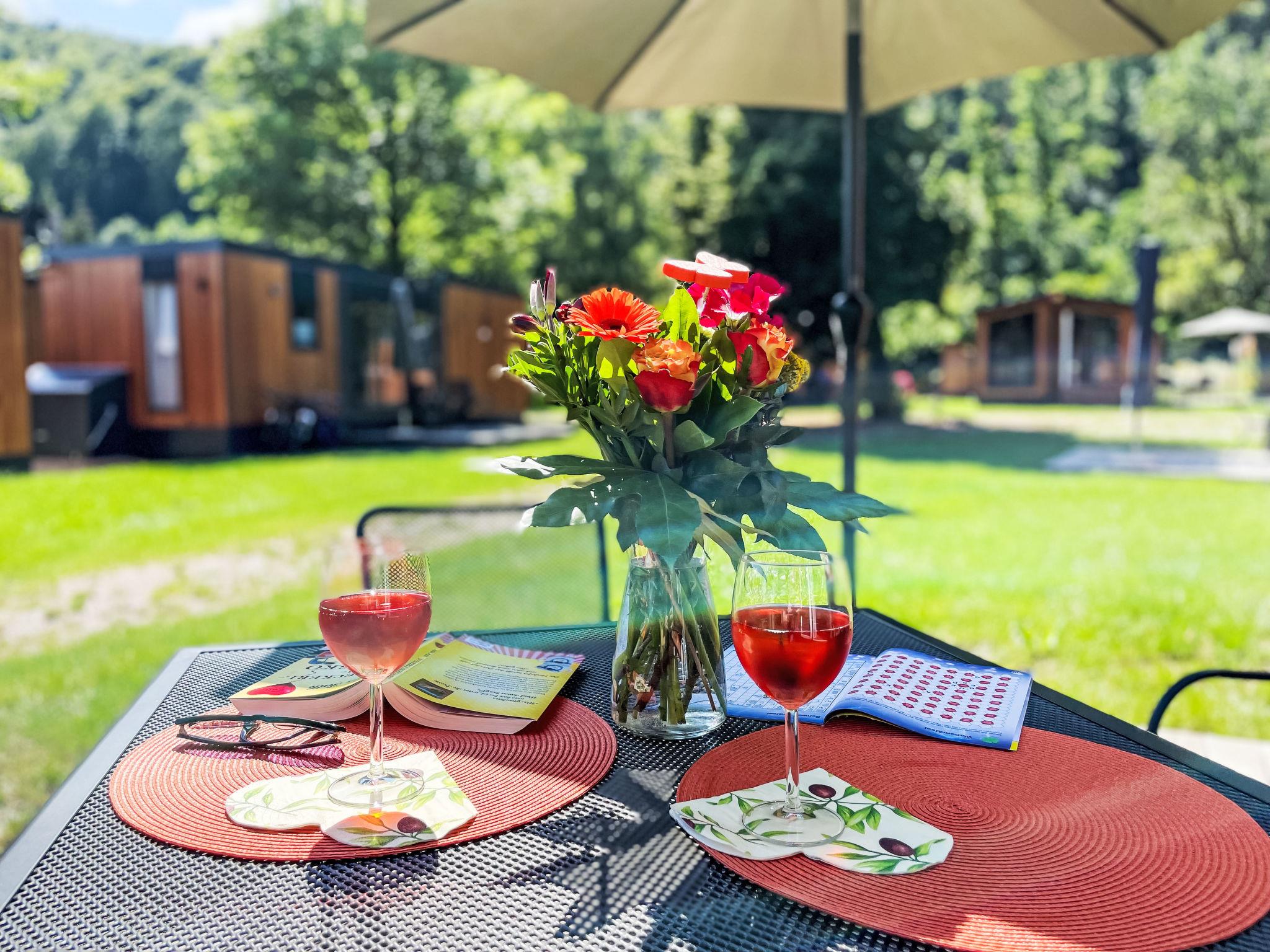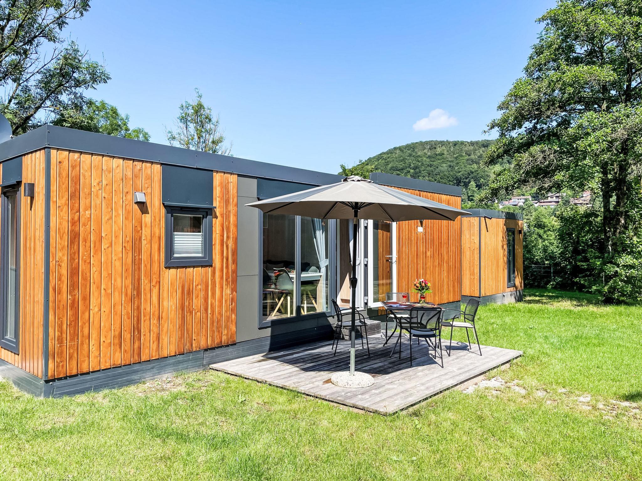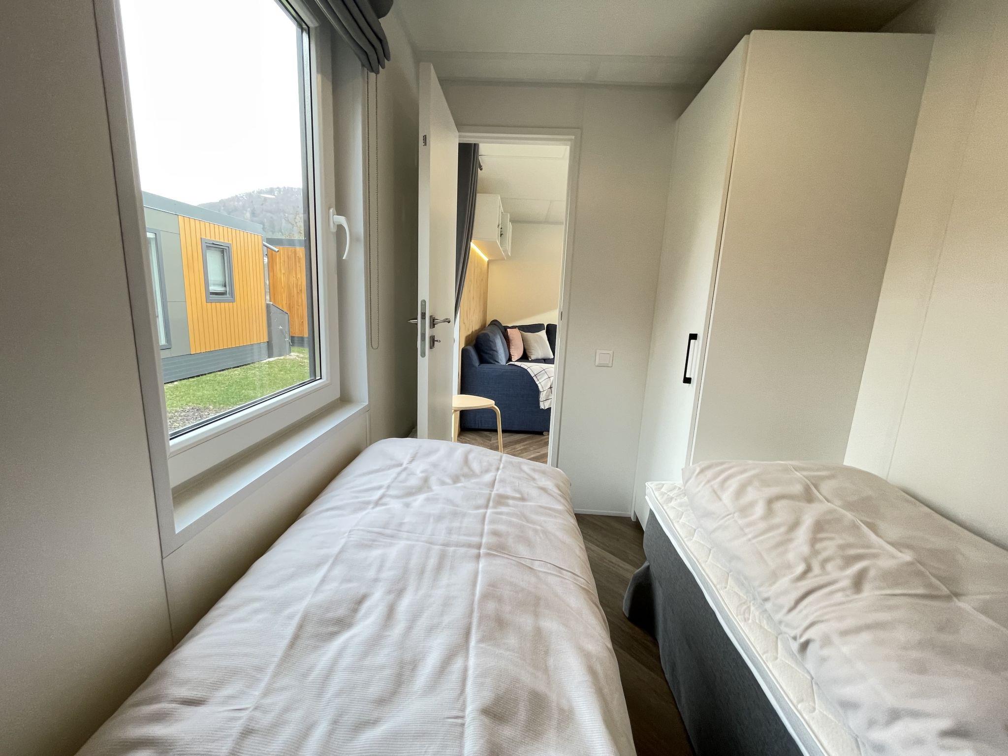 "Tiny Haus Xandra", 3-room mobile home 32 m2. Cosy furnishings: living/sleeping room with (120 cm, length 170 cm), satellite TV. Exit to the terrace. 1 room with 1 french bed (140 cm, length 200 cm). 1 room with 2 beds (80 cm, length 200 cm). Open kitchen (4 ceramic glass hob hotplates, kettle, freezer, electric coffee machine). Shower/WC. Electric heating. Small terrace. Terrace furniture. Parking at the house. Please note: non-smoking house. Maximum 1 pet/ dog allowed. bicycle box. DE8422.200.24