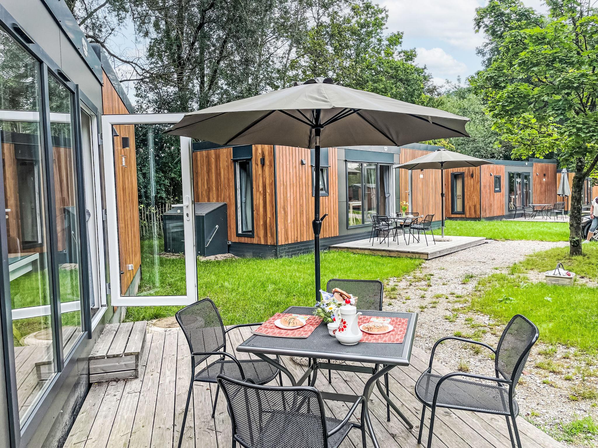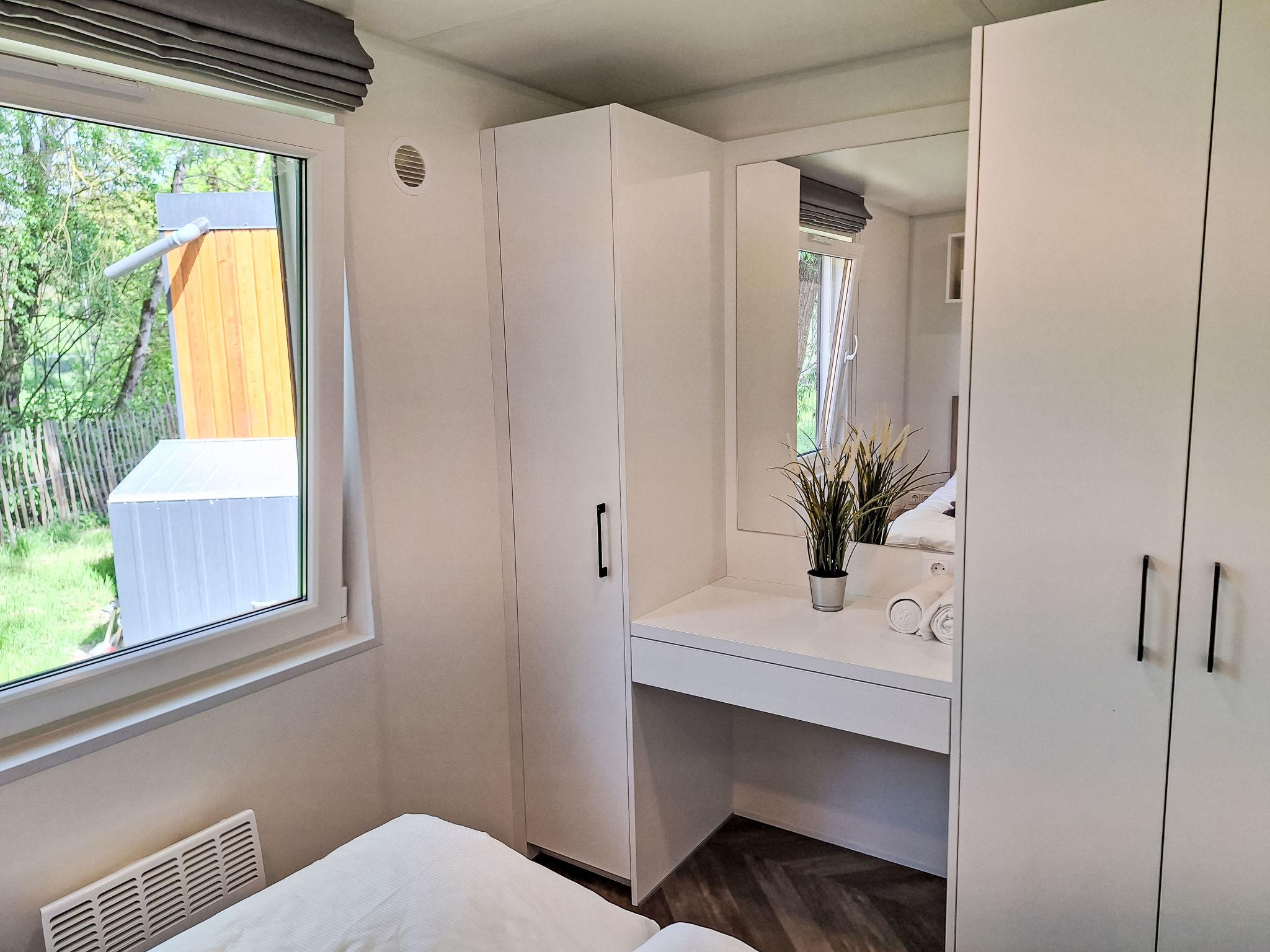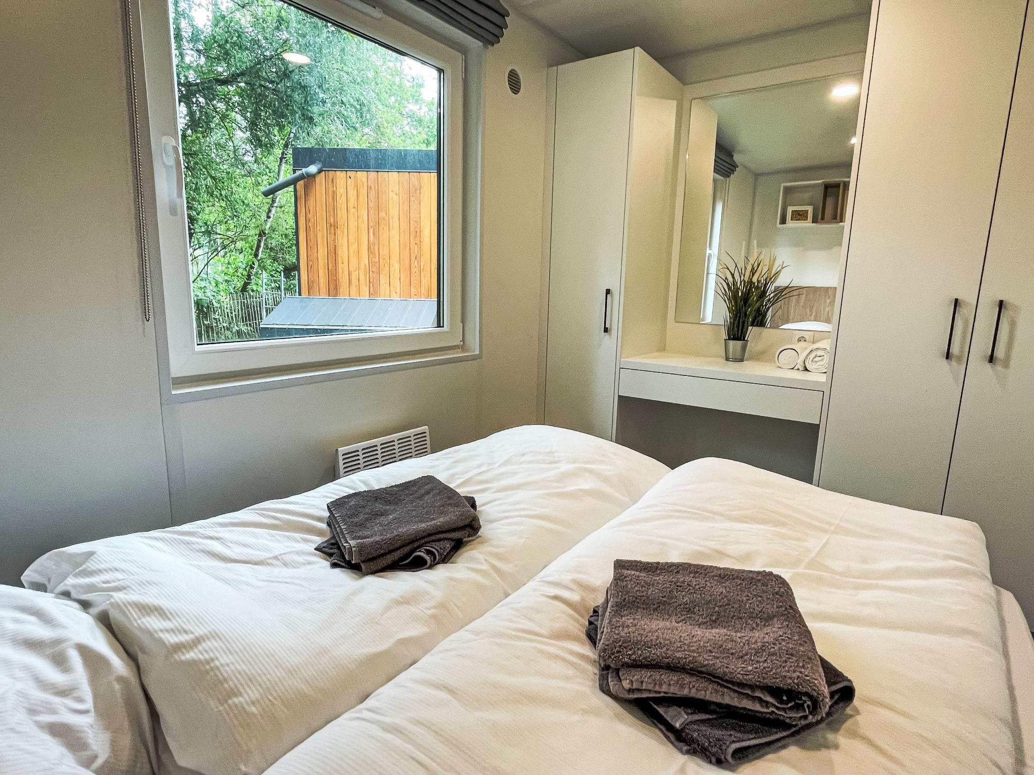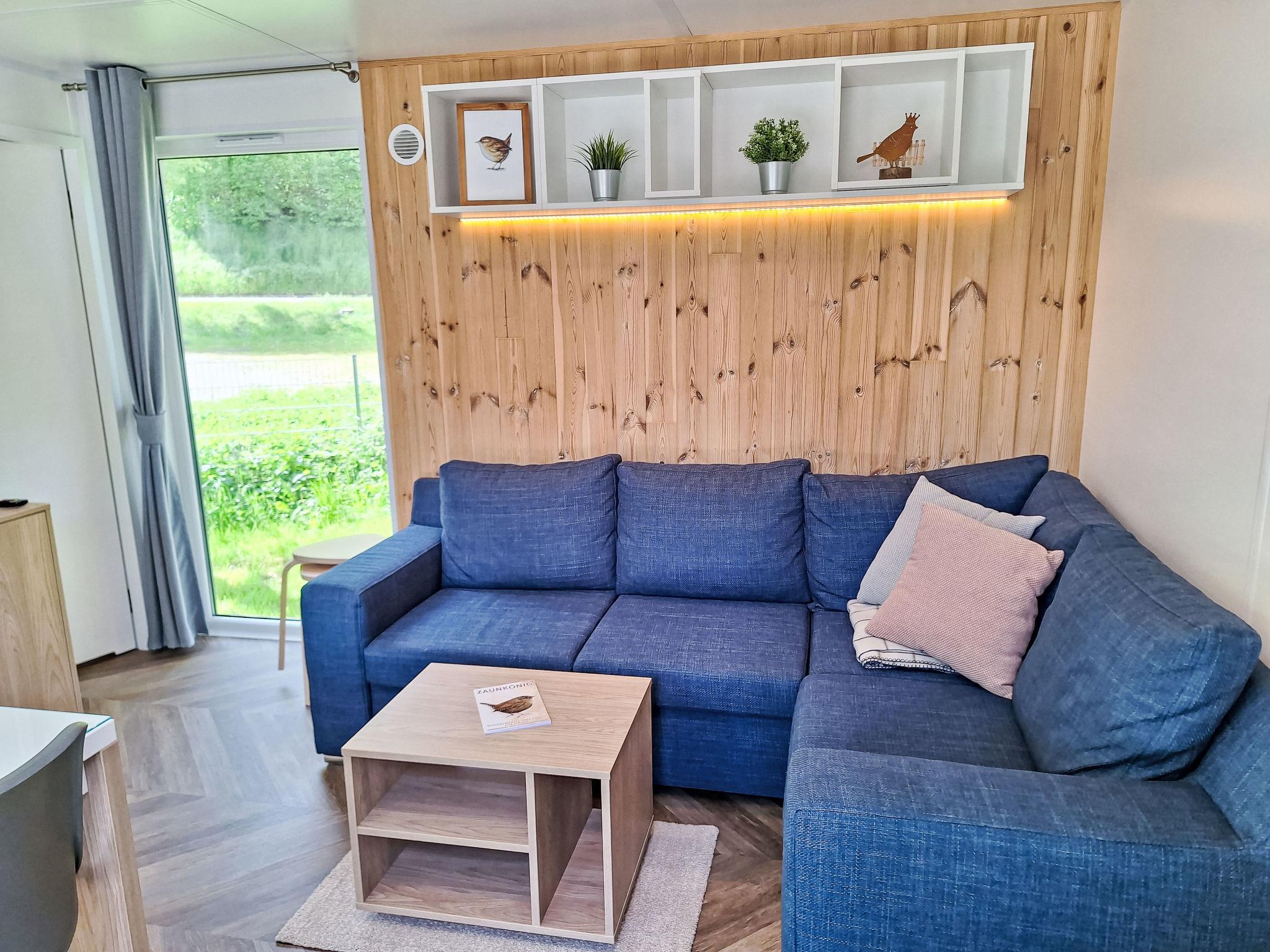 "Tiny Haus Zaunkönig", 3-room mobile home 32 m2. Cosy furnishings: living/sleeping room with (120 cm, length 170 cm), satellite TV. Exit to the terrace. 1 room with 1 french bed (140 cm, length 190 cm). 1 room with 2 beds (70 cm, length 190 cm). Open kitchen (4 ceramic glass hob hotplates, kettle, freezer, electric coffee machine). Shower, sep. WC. Electric heating. Small terrace. Terrace furniture. Parking at the house. Please note: non-smoking house.