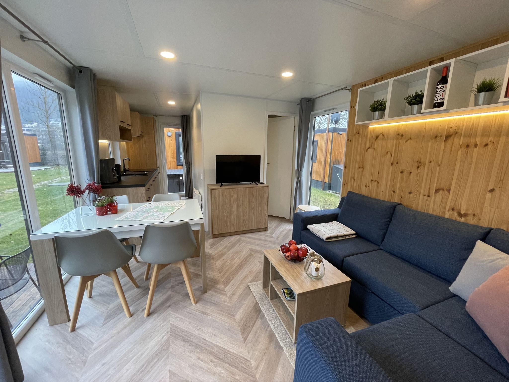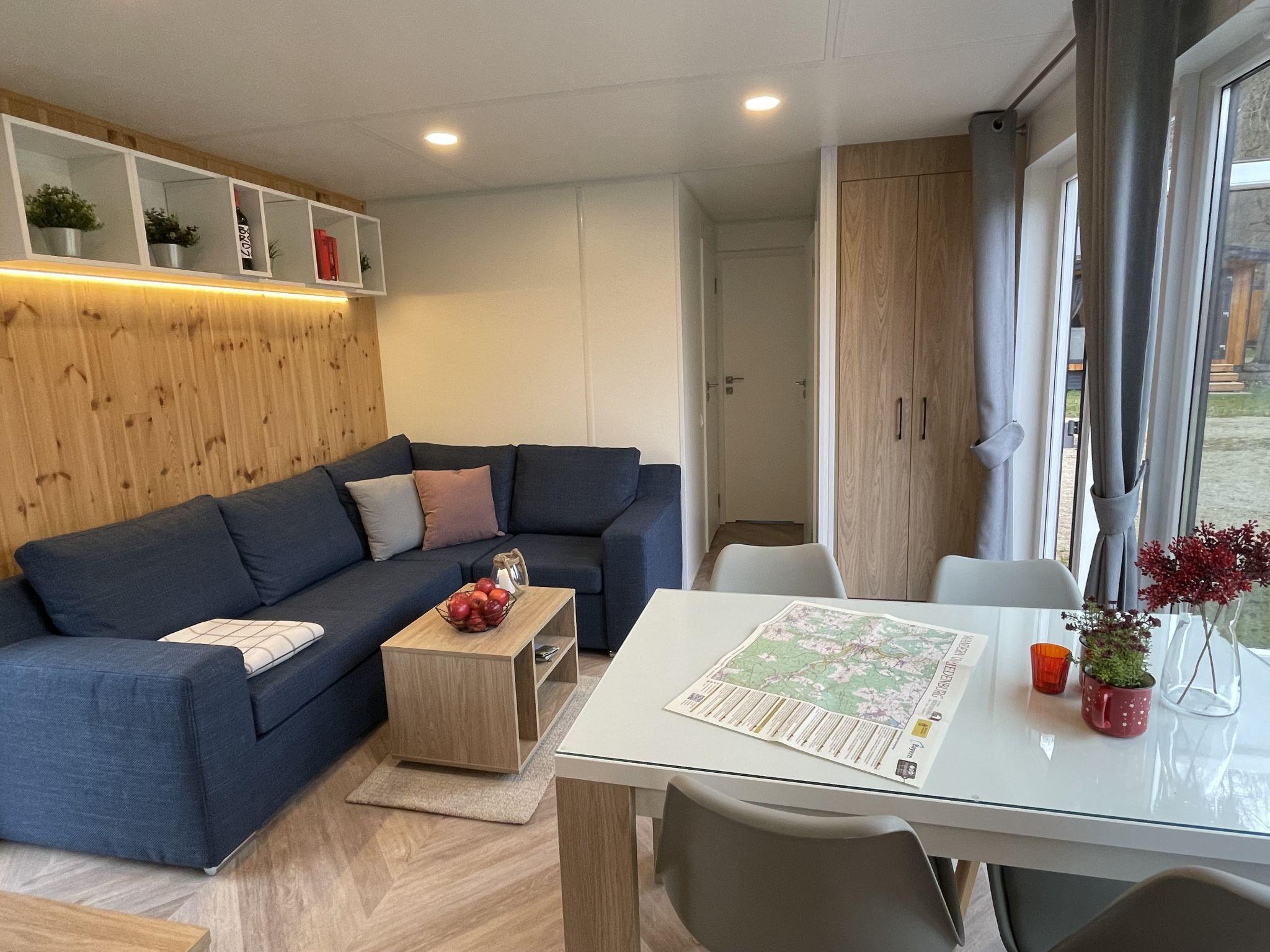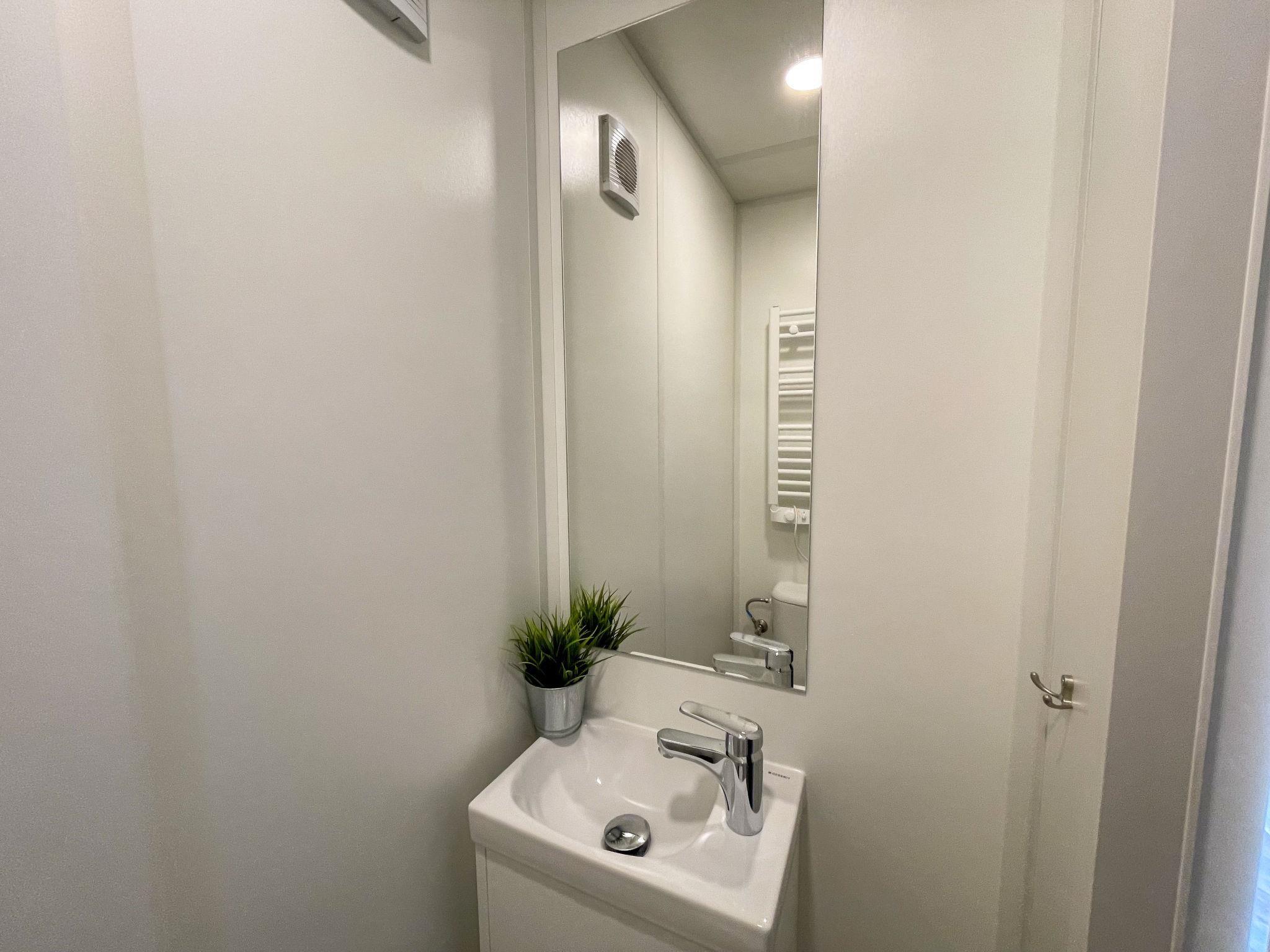 "Villa Ramses", 3-room mobile home 32 m2. Cosy furnishings: living/sleeping room with 1 double sofabed (120 cm, length 170 cm), satellite TV. Exit to the terrace. 1 room with 1 french bed (140 cm, length 200 cm). 1 room with 2 beds. Open kitchen (4 ceramic glass hob hotplates, kettle, freezer, electric coffee machine). Shower, sep. WC. Terrace furniture. Facilities: hair dryer. Parking at the house. Please note: non-smoking house. Maximum 2 pets/ dogs allowed.