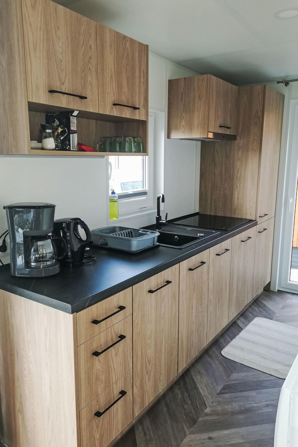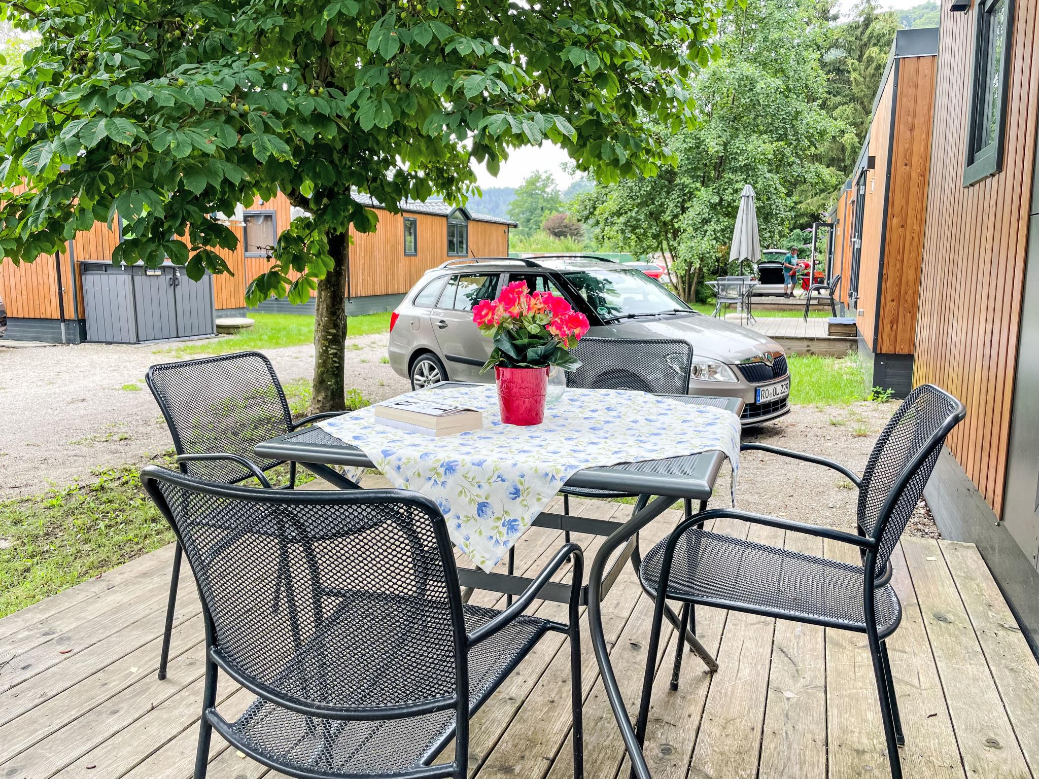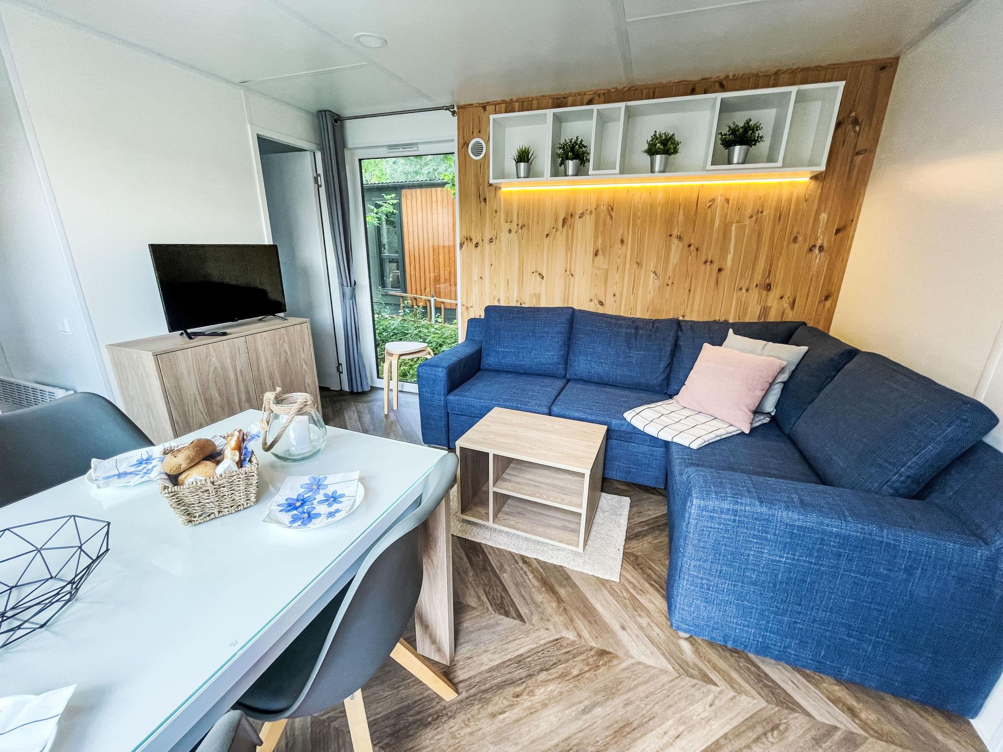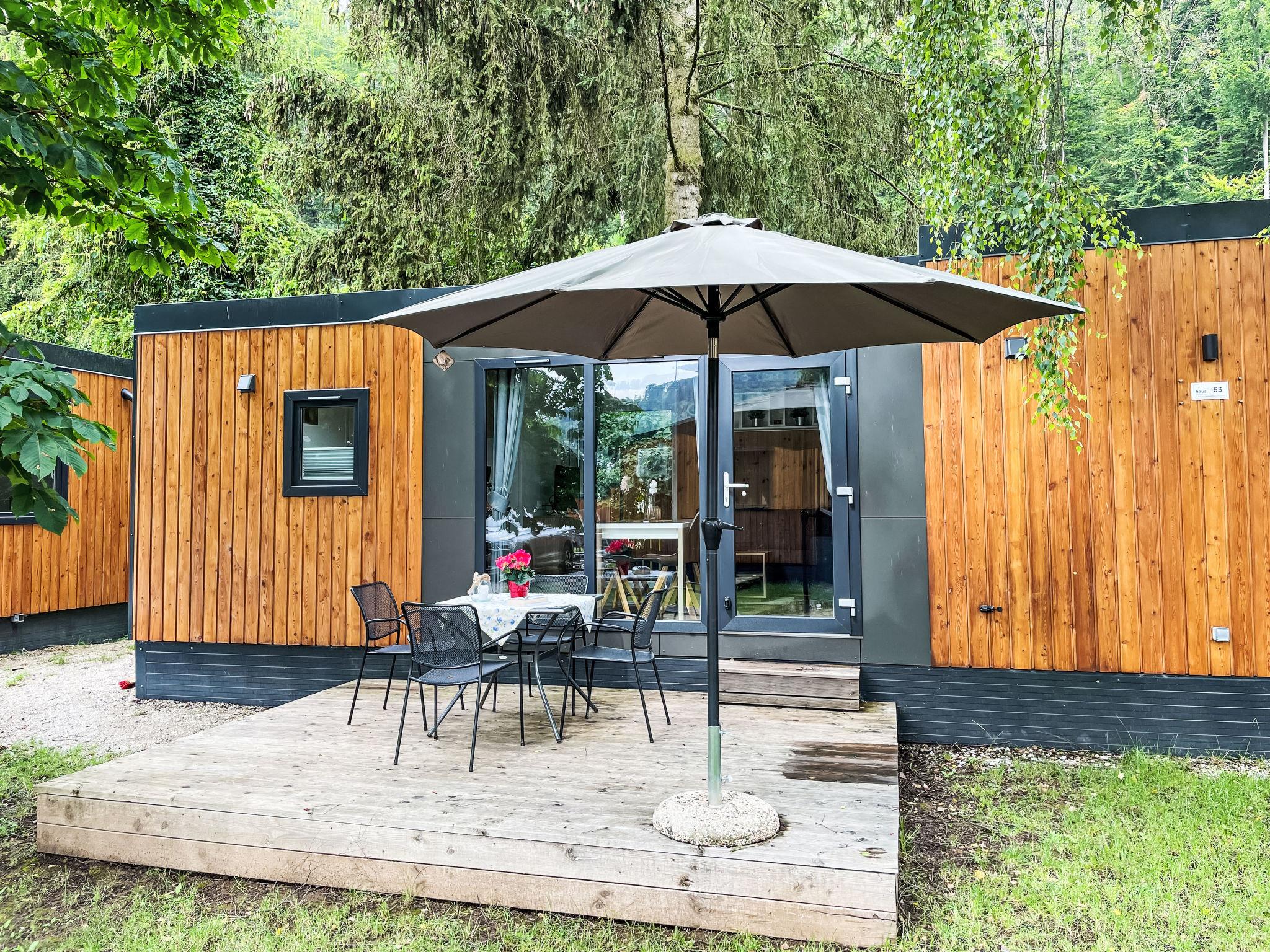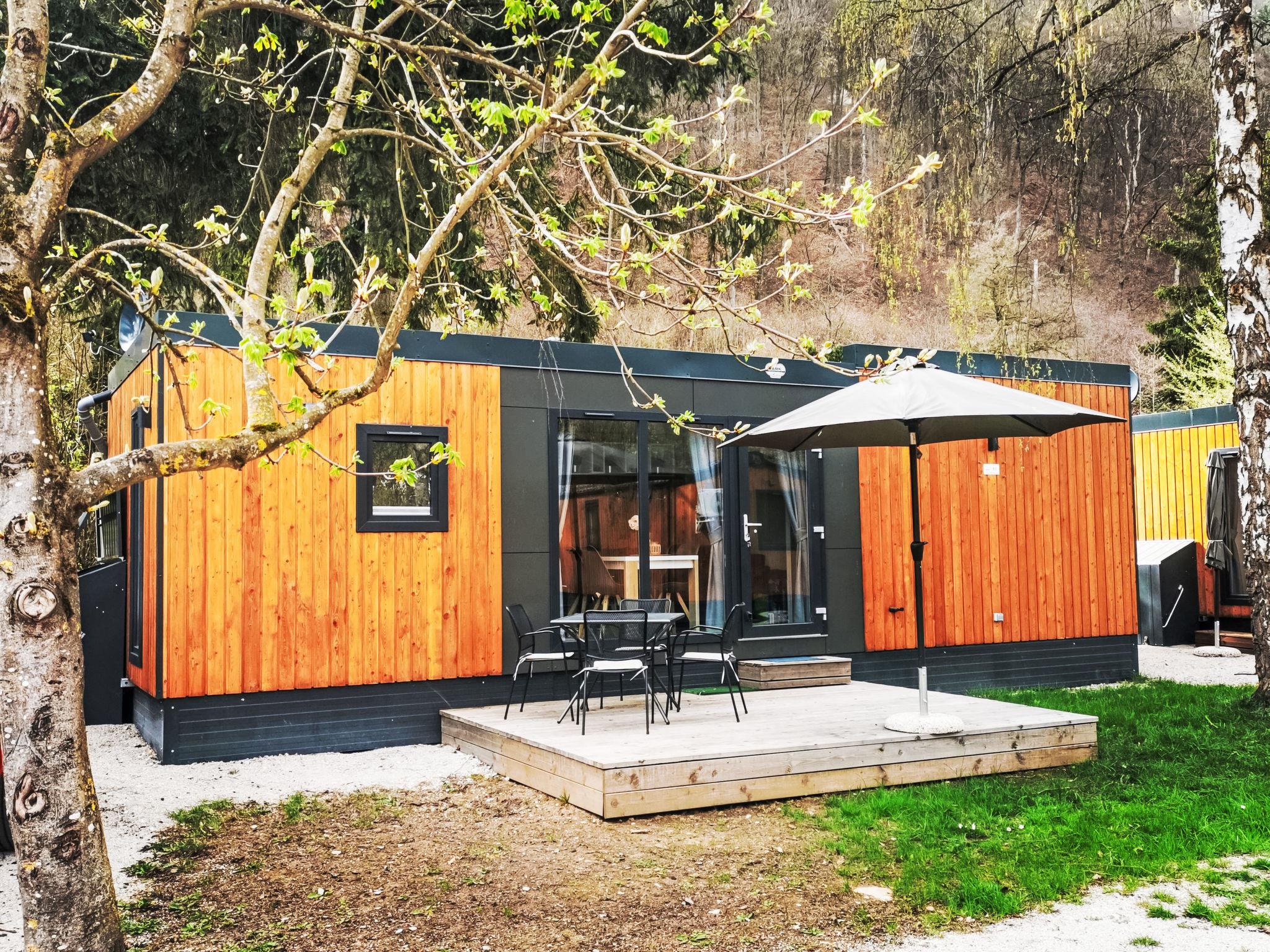 "Tiny Haus Birkenlodge", 3-room mobile home 32 m2. Cosy furnishings: living/sleeping room with (120 cm, length 170 cm), satellite TV. Exit to the terrace. 1 room with 1 french bed (140 cm, length 200 cm). 1 room with 2 beds (80 cm, length 200 cm). Open kitchen (4 ceramic glass hob hotplates, kettle, freezer, electric coffee machine). Shower/WC. Electric heating. Small terrace. Terrace furniture. Parking at 30 m. Please note: non-smoking house.