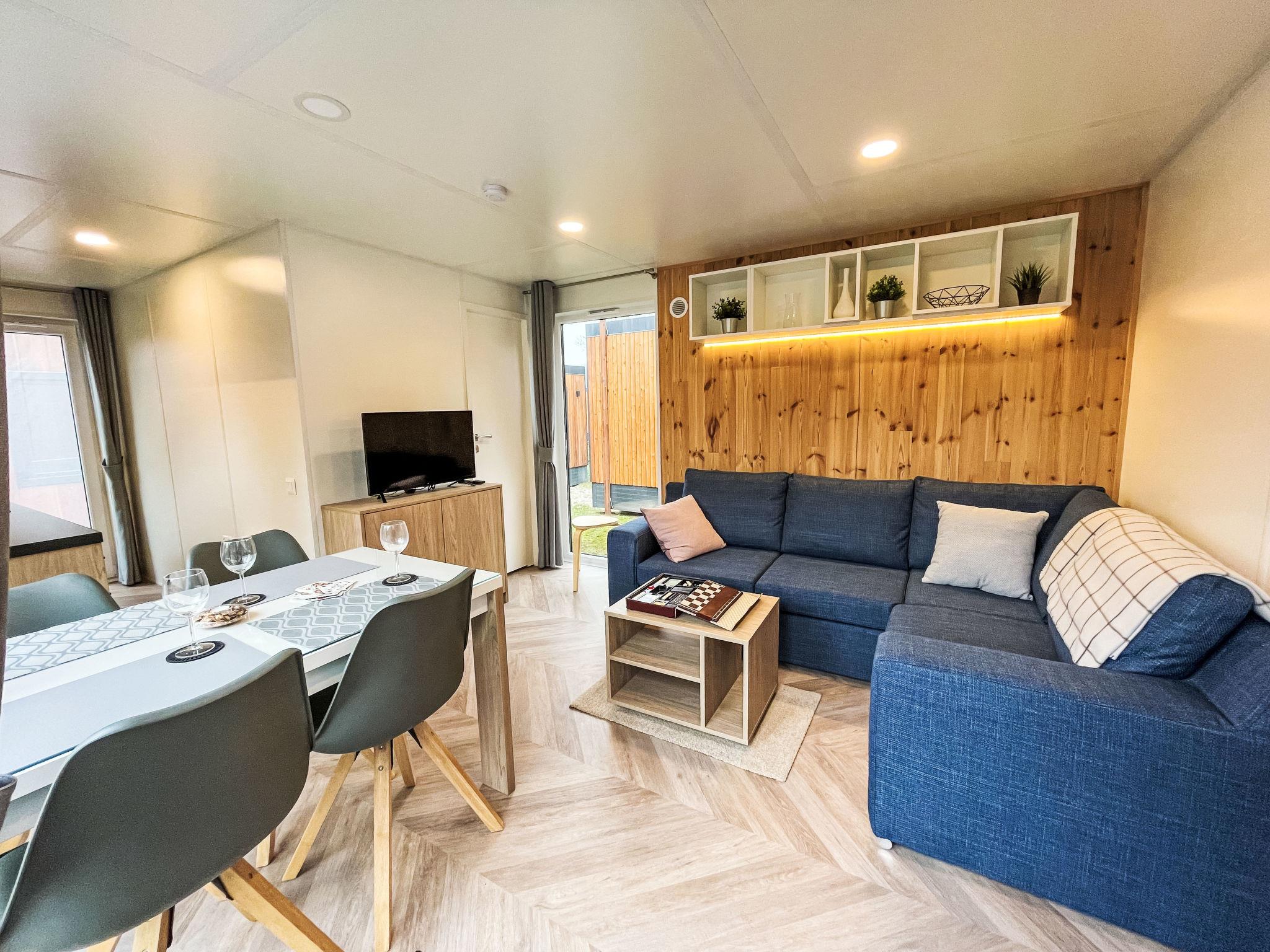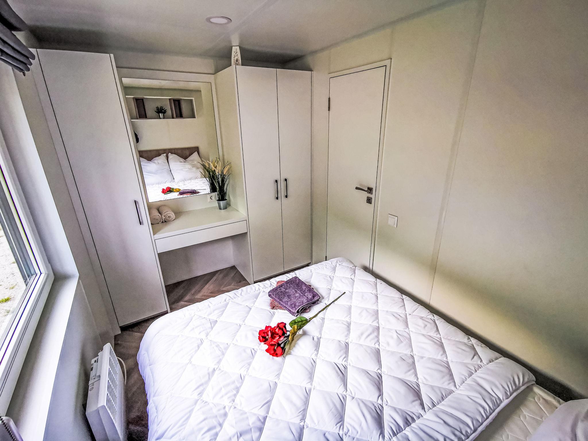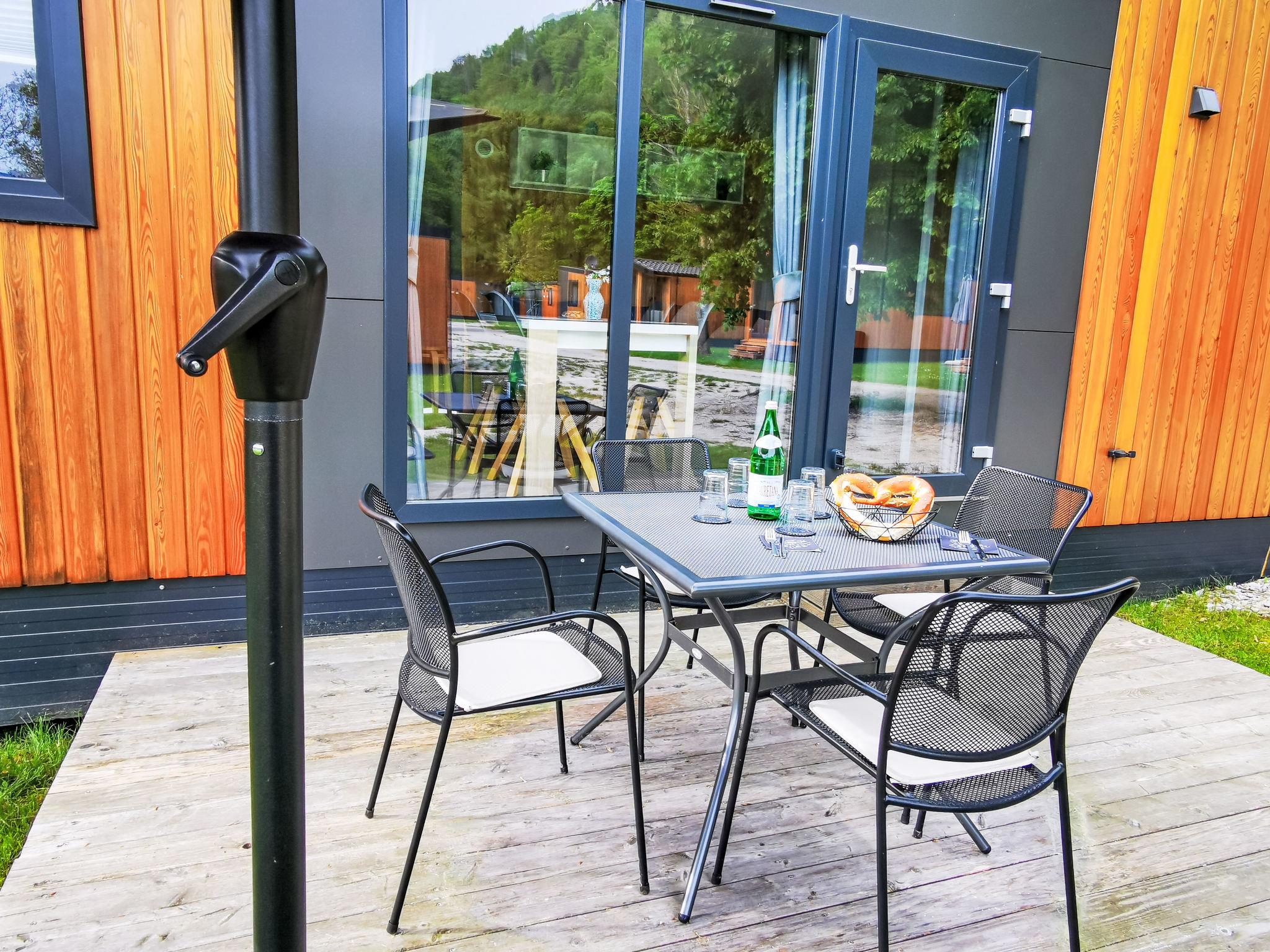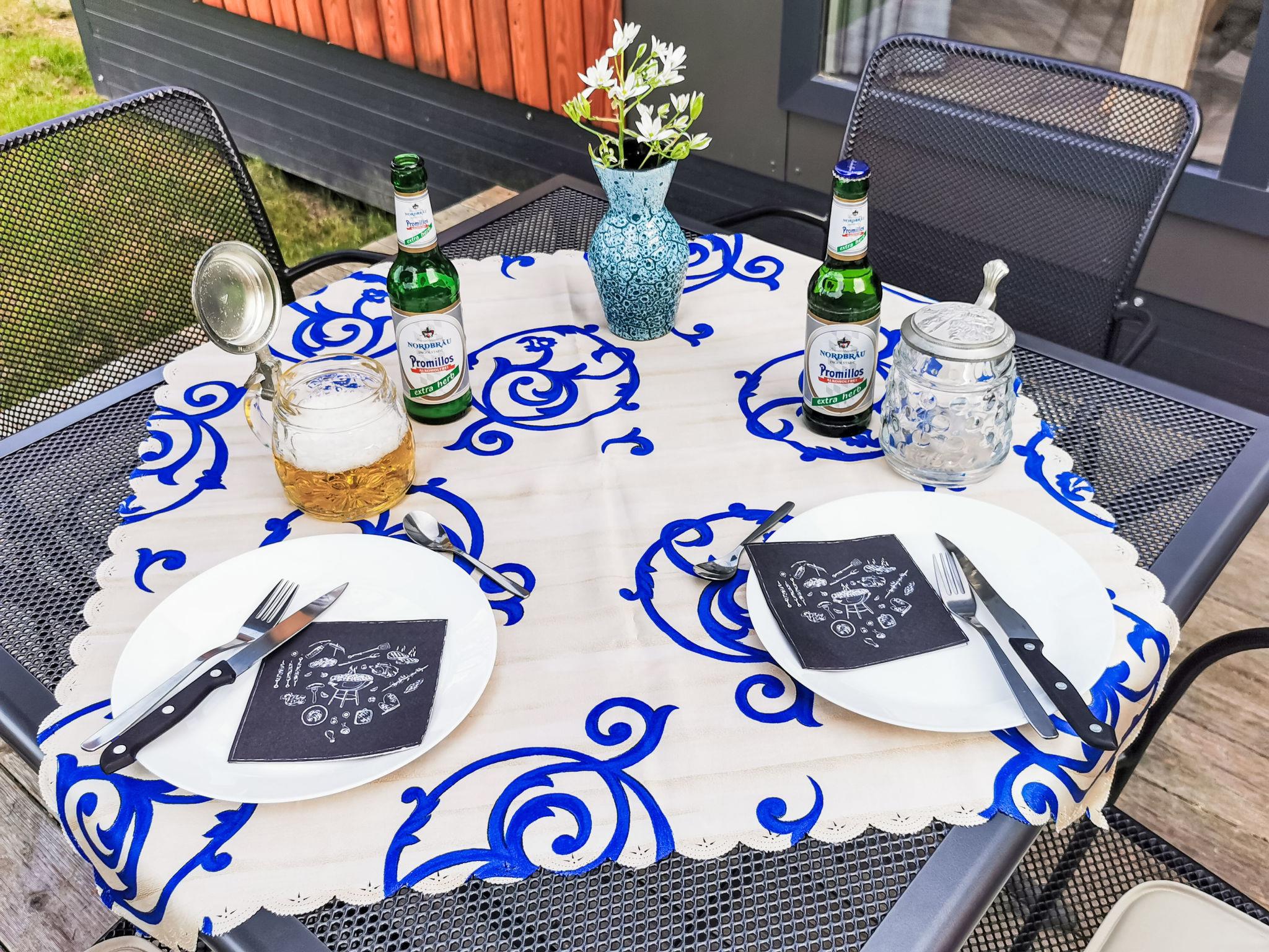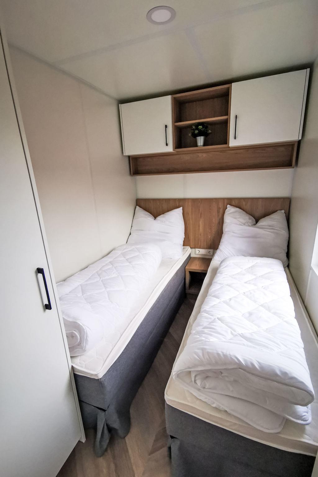 "Tiny Haus Christas Angler-Oase", 3-room mobile home 32 m2. Cosy furnishings: living/sleeping room with (120 cm, length 170 cm), satellite TV. Exit to the terrace. 1 room with 1 french bed (140 cm, length 190 cm). 1 room with 2 beds (70 cm, length 190 cm). Open kitchen (4 ceramic glass hob hotplates, toaster, kettle, microwave, freezer, electric coffee machine). Shower/WC. Electric heating. Small terrace. Terrace furniture. Facilities: Internet (WiFi, free). Parking at the house. Please note: non-smoking house.