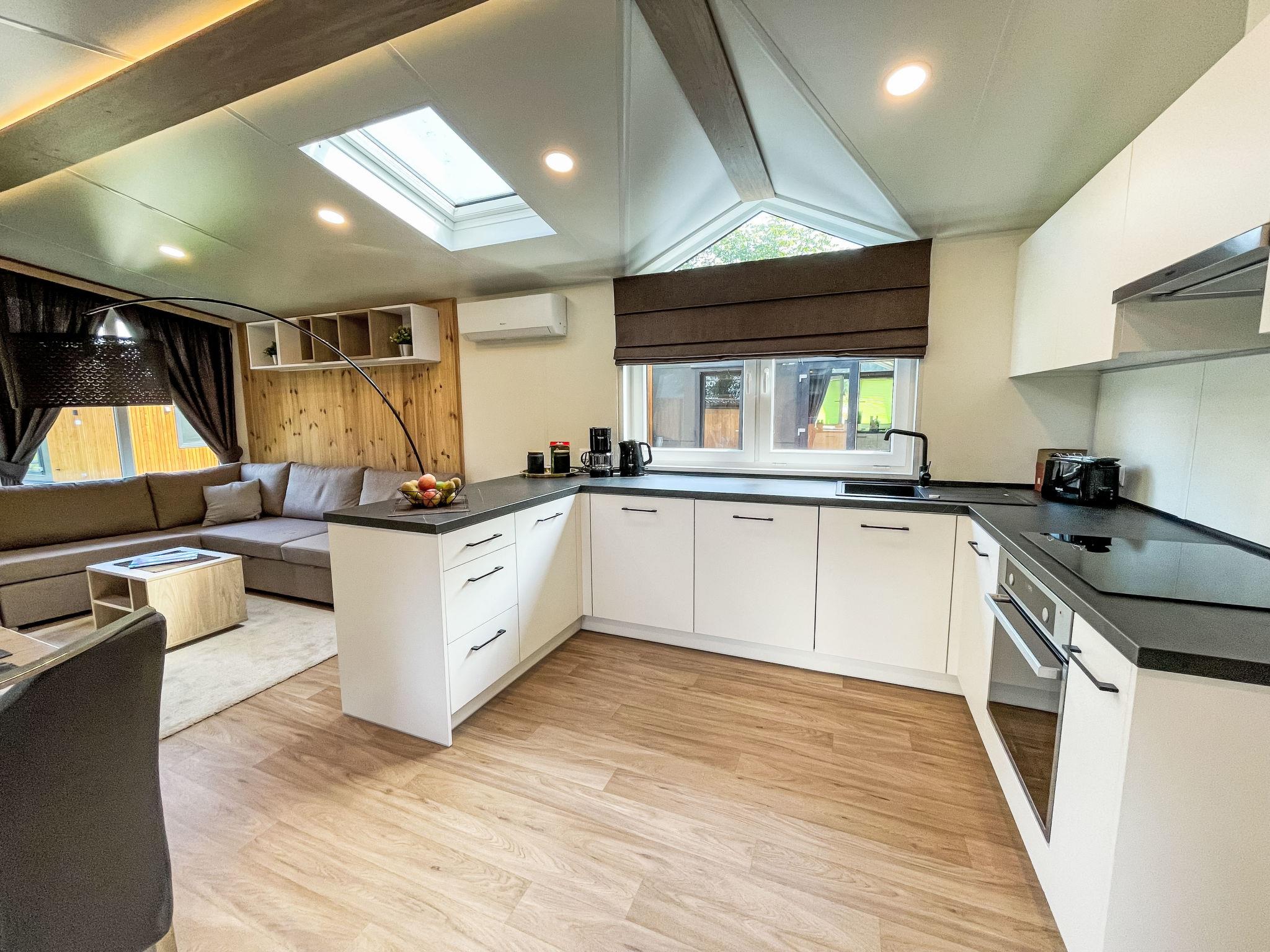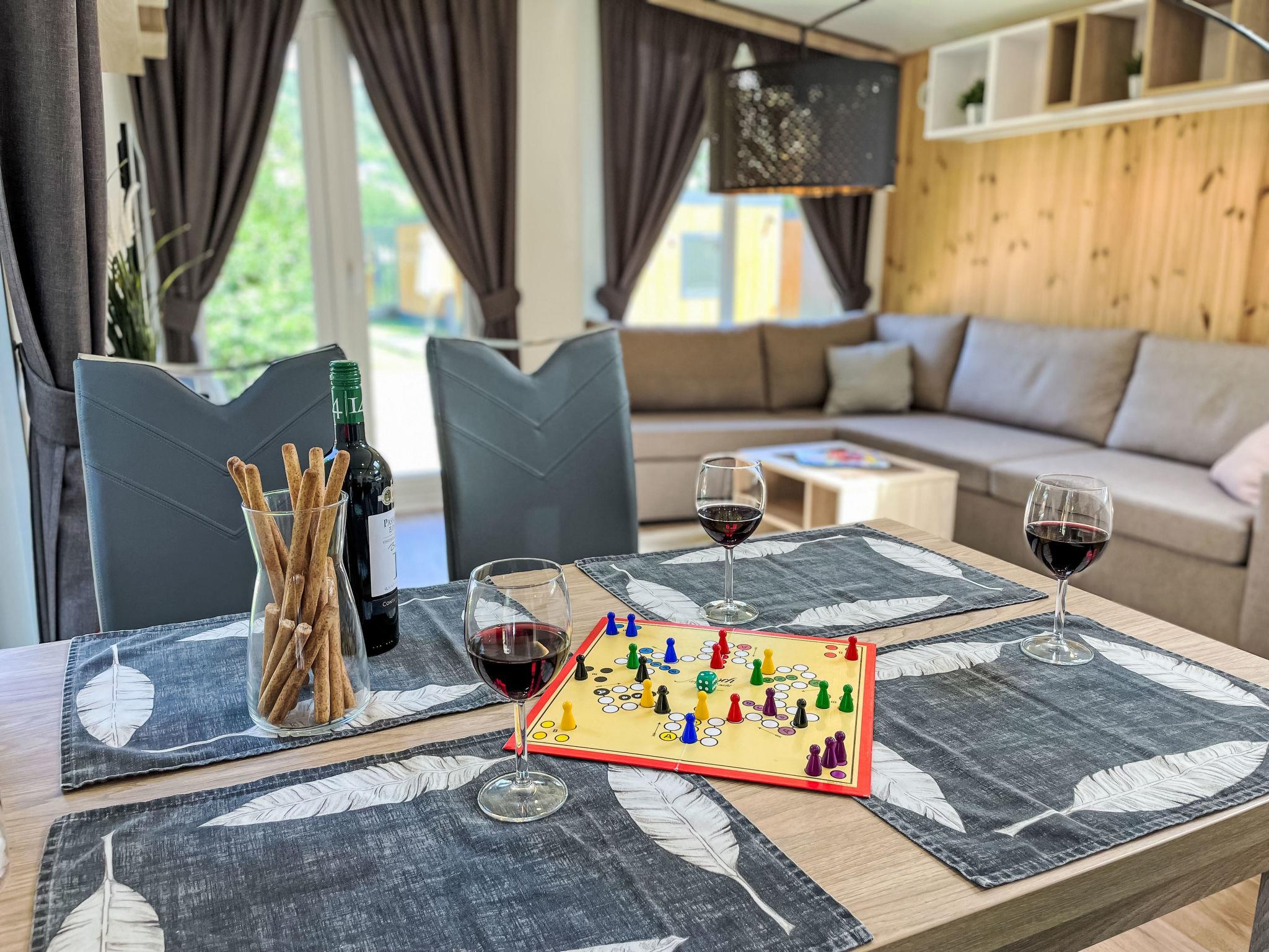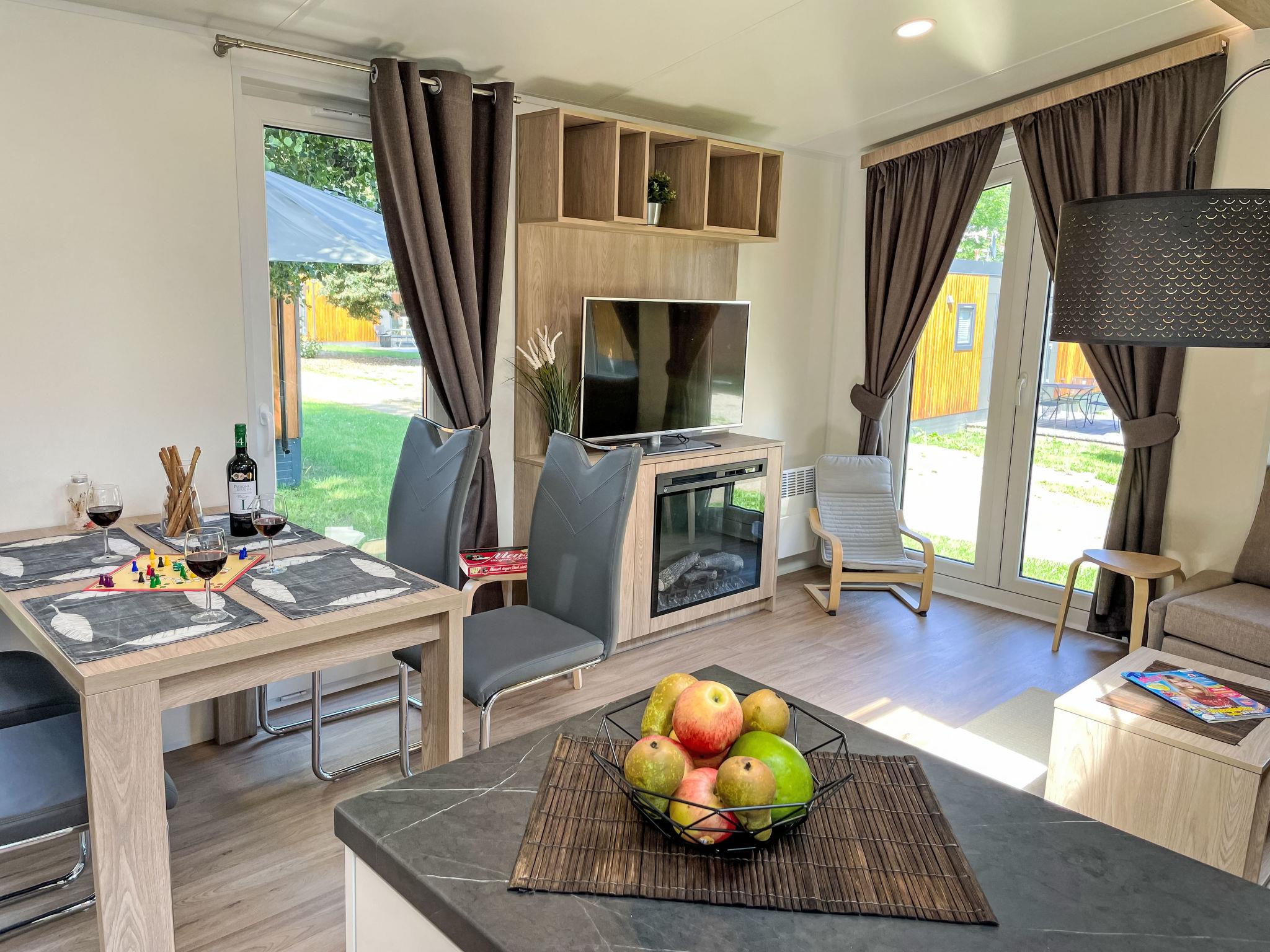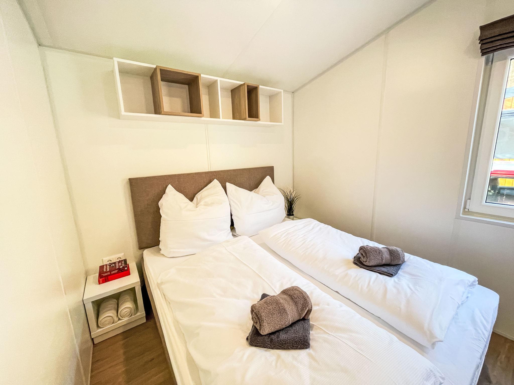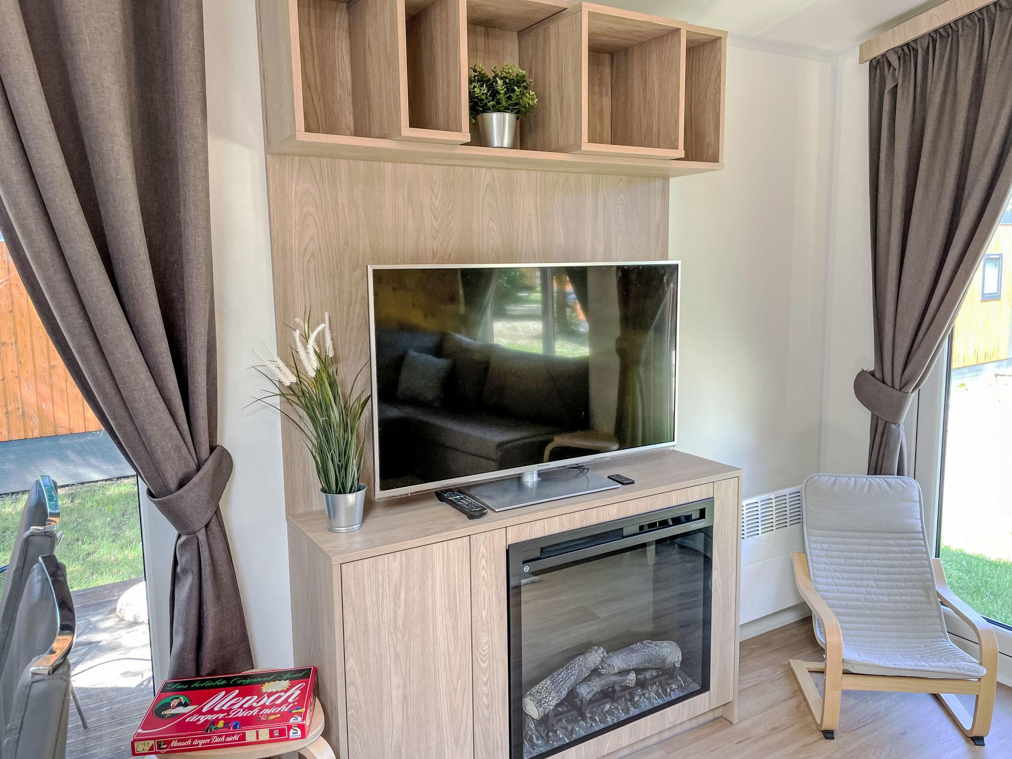 "Tiny Haus Drei Burgen", 3-room mobile home 48 m2. Comfortable furnishings: living/sleeping room with 1 double sofabed (160 cm, length 200 cm), Scandinavian wood stove (only for decoration), satellite TV and air conditioning. Exit to the terrace. 1 room with 1 french bed (160 cm, length 200 cm). 1 room with 2 beds (80 cm, length 200 cm). Open kitchen (oven, dishwasher, 4 ceramic glass hob hotplates, toaster, kettle, freezer, electric coffee machine). Shower, sep. WC. Small terrace. Terrace furniture. Facilities: washing machine, dryer. Parking at the house. Please note: non-smokers only.