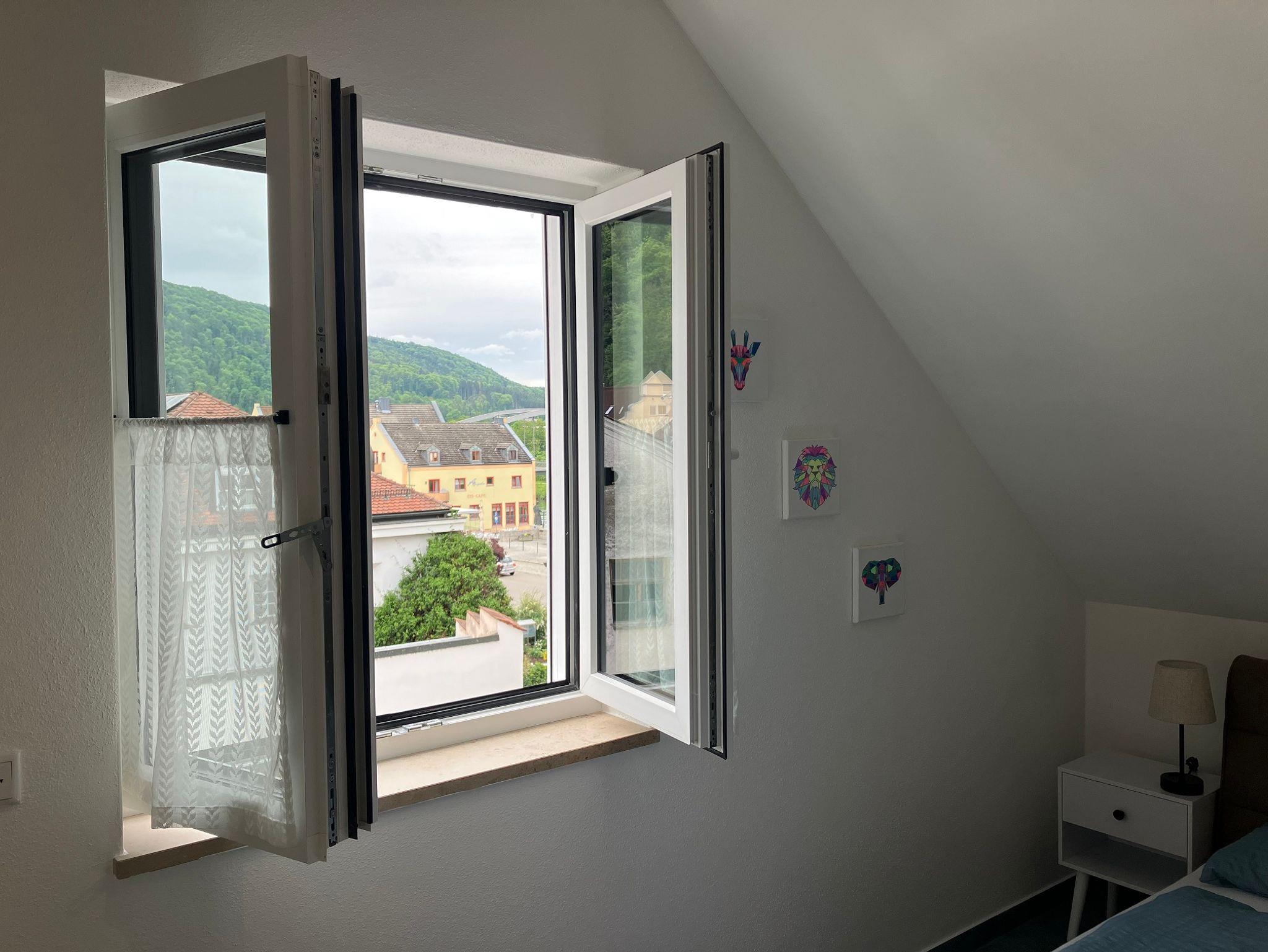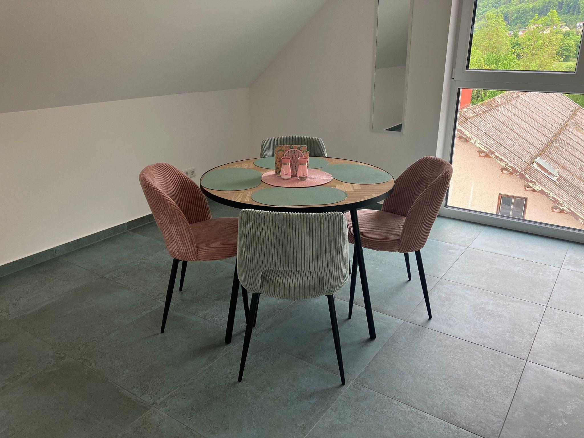 Mitten in der historischen Altstadt liegt unsere, im Mai 2025 eröffnete Ferienwohnung, mit herrlichem Blick über die Dächer von Riedenburg. Die Wohnung ist ideal für Paare oder kleine Familien, die das besondere Flair der Altstadt erleben möchten. In unmittelbarer Nähe erwarten Sie gemütliche Cafés und Restaurants, urige Kneipen, Biergärten, Eisdielen, Bäcker, Metzger, Biomarkt, Schreibwarengeschäft - alles, was Sie für Ihren Urlaub brauchen, ohne auch nur einmal ins Auto zu steigen. Erkunden Sie die Umgebung, sei es bei einem Spaziergang um den Stadtweiher, einer Radtour entlang des Rhein-Main-Donau-Kanals oder einer Wanderung zur Rosenburg mit der legendären Flugvorführung. Auch Kinder fühlen sich in Riedenburg beim Plantschen an der Wassertretanlage, beim Mini-Golf, auf dem Ritterspielplatz oder im Biergarten mit Streichelzoo pudelwohl. Das alles können Sie dank der idealen Altstadtlage problemlos zu Fuß erkunden. Nach 5-minütiger Autofahrt erreichen Sie die Sommerrodelbahn für eine rasante Fahrt mit dem Altmühlbob oder einem Hochseilklettererlebnis in schwindelerregender Höhe. Anschließend können Sie sich am gegenüberliegenden Badesee St. Agatha abkühlen. Ein kostenfreier PKW-Parkplatz und eine absperrbare Radl-Garage stehen Ihnen hinter dem Haus zur Verfügung.