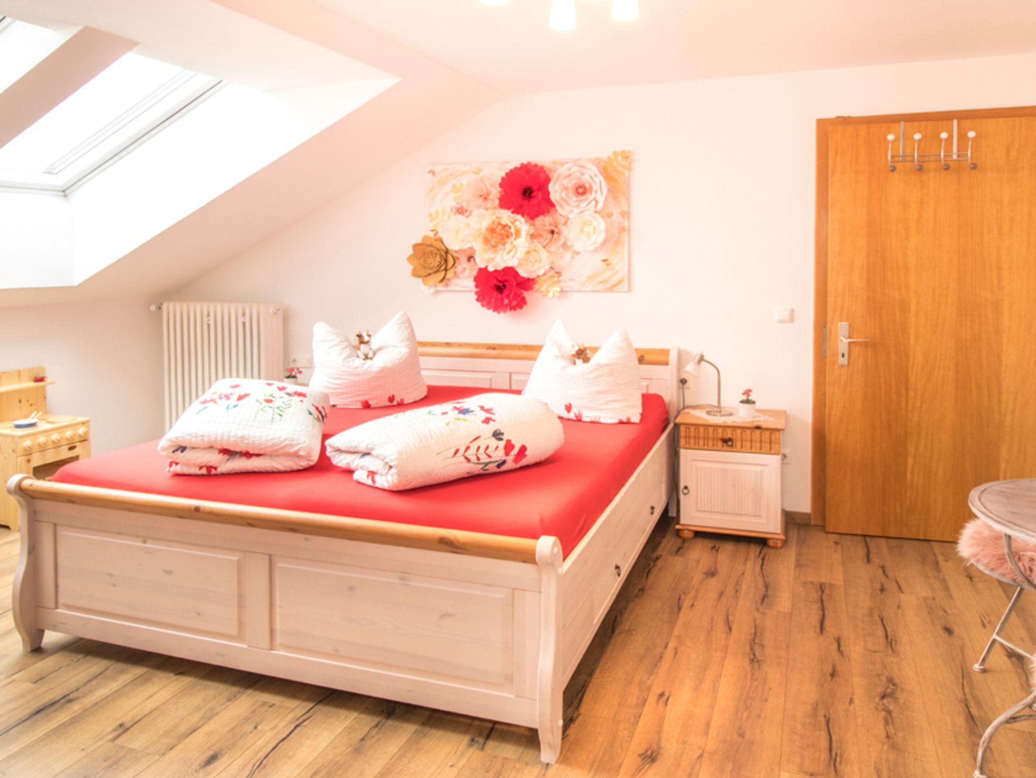 Unsere gemütliche großräumige Ferienwohnung ist mit zwei Schlafzimmern, Küche, Bad (Dusche und WC) und Balkon mit Blick auf die Ratzinger Höhe ausgestattet. Jede Ferienwohnung enthält eine Kinderspielecke und Babyausstattung. Abwechslung bei Regenwetter bietet auch unsere allgemein zugängige Verkleidungskiste. Unsere Wohnungen sind Nichtraucherwohnungen. Es besteht die Möglichkeit auf dem Balkon zu rauchen.