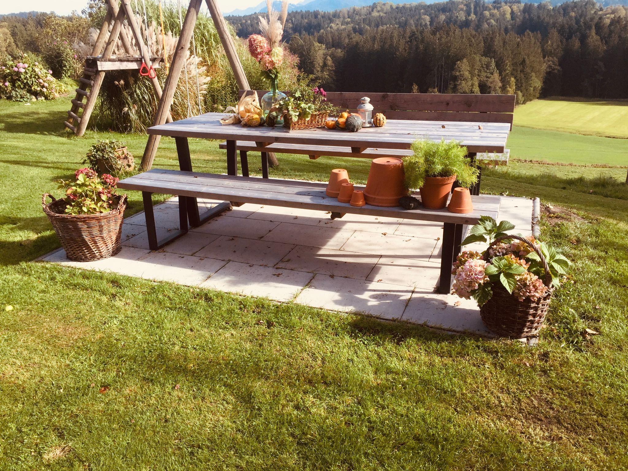 Unsere Ferienwohnungen bieten von Terrasse oder Balkon einen Blick auf die Chiemgauer Alpen. Auf 105qm bieten unsere Wohneinheiten 2 Schlafzimmer, ein Bad mit Badewanne und Dusche, einen Flachbild-Sat-TV und ein großes Wohnzimmer. Eine vollausgestattete Küche und auch eine Waschmaschine gehören zu beiden Wohnungen. Handtücher und Bettwäsche werden im Apartment gestellt.