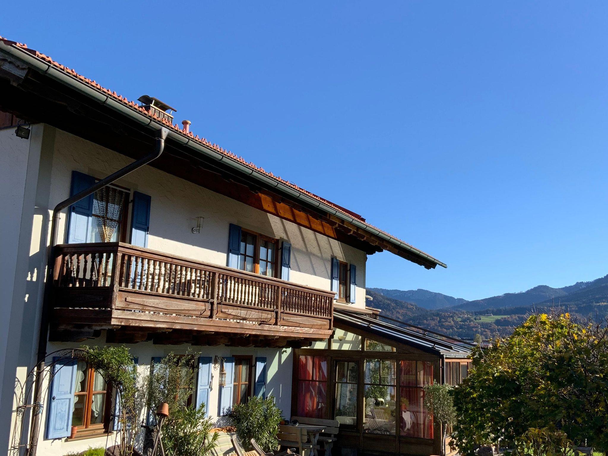 Unsere 5* Ferienwohnung Romantica bietet Ihnen von den nach Süden und Westen ausgerichteten 2 Balkonen einen beeindruckenden Blick auf die Berge der Chiemgauer Alpen.
