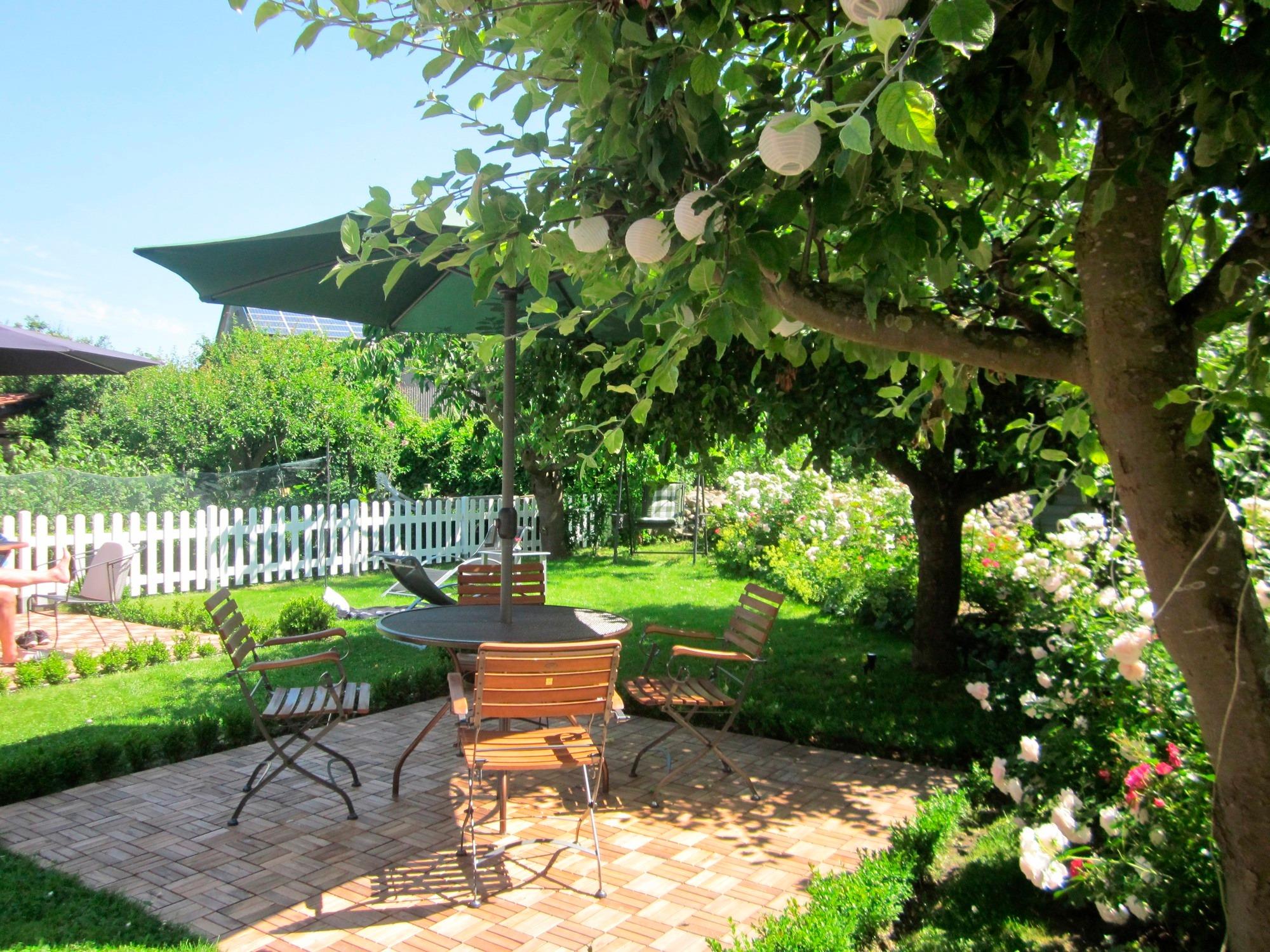 Ferienwohnung, ca. 55 m² groß im Erdgeschoss und Dachgeschoss mit freundlicher und moderner Ausstattung und eigener Terrasse. Keramischer Bodenbelag bzw. Laminatboden.
