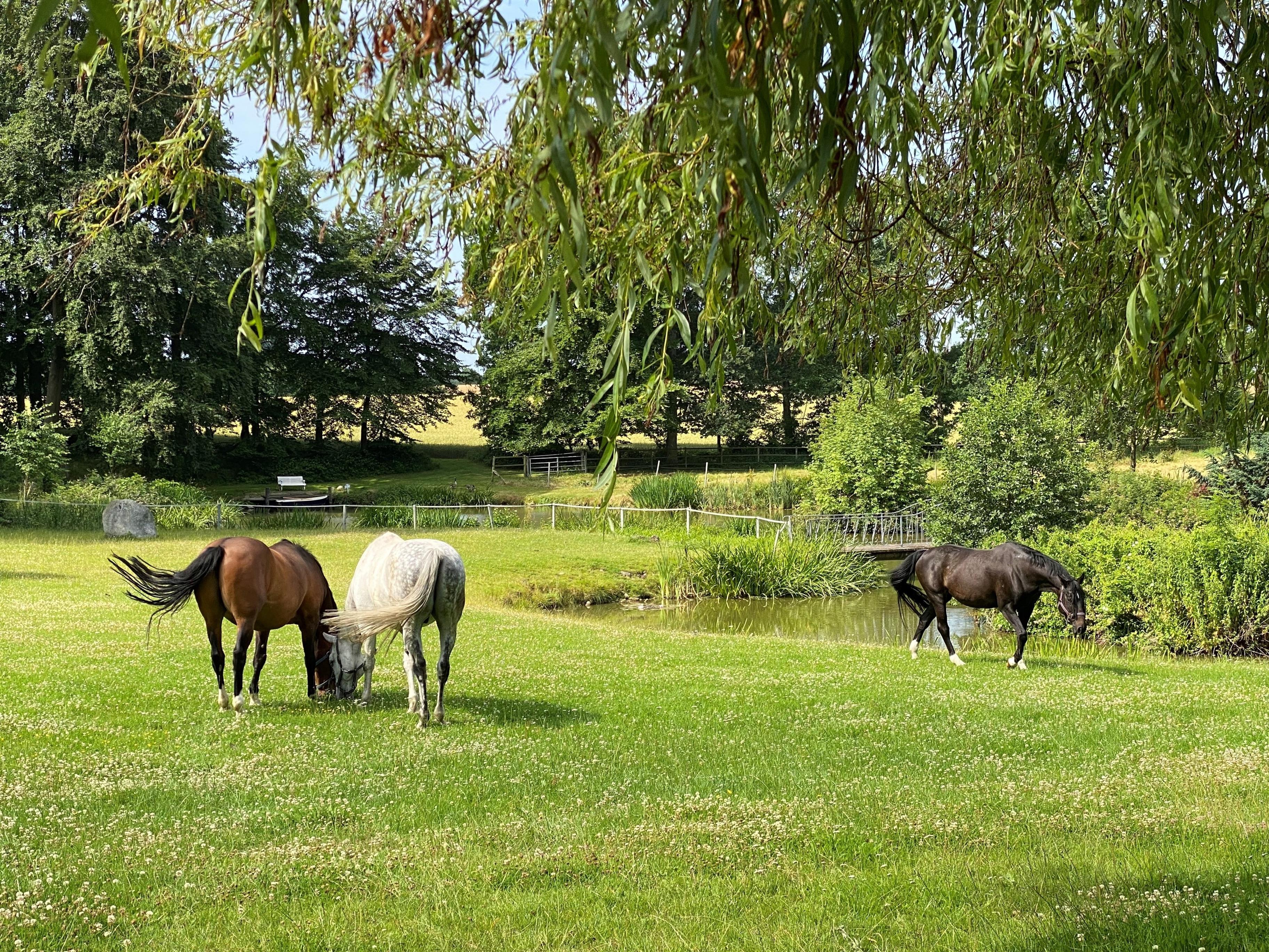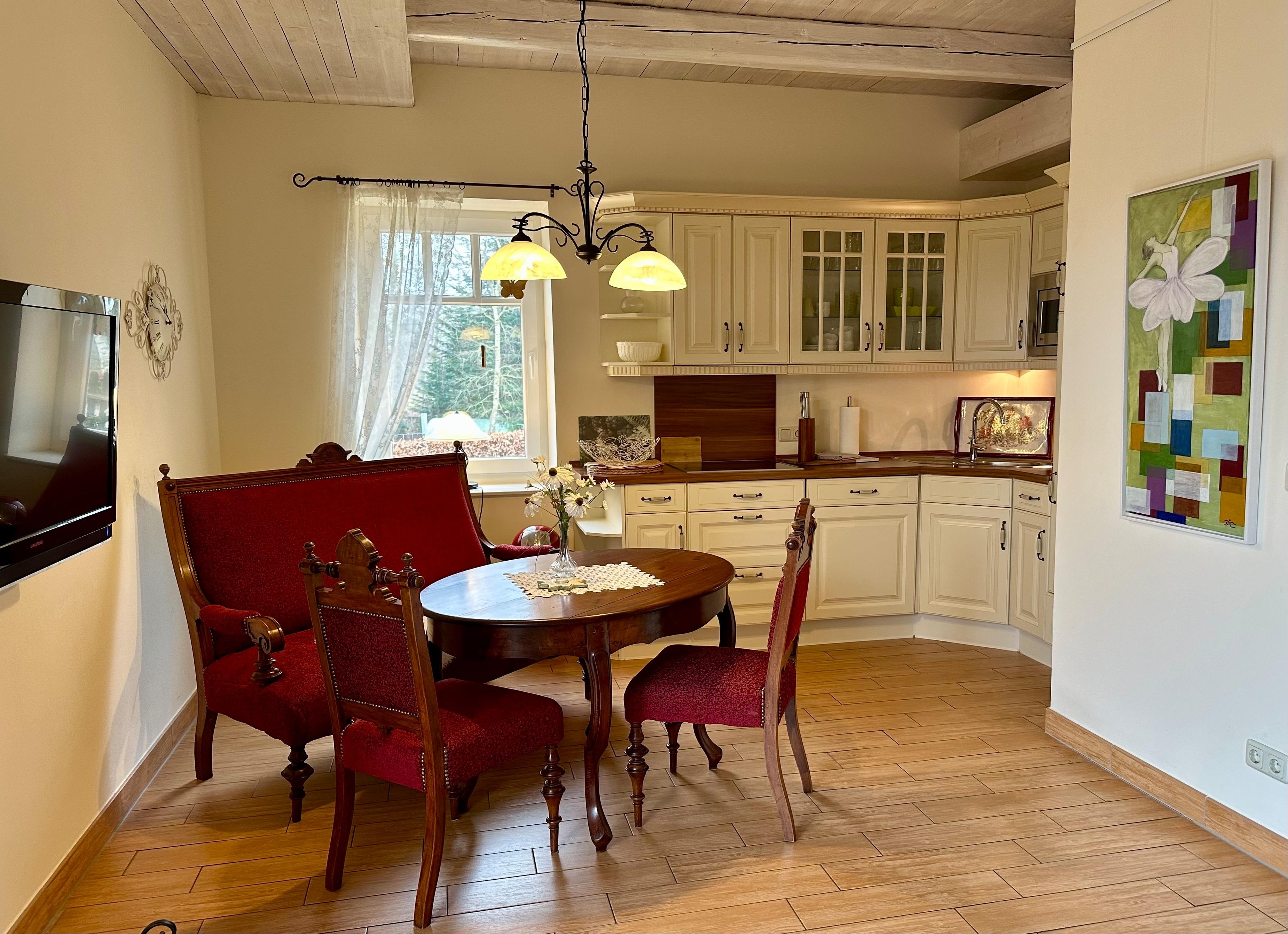 Im Sommer 2012 wurden im ehemaligen Pferdestall des Guts drei moderne, individuelle und liebevoll ausgestattete Premium-Ferienwohnungen eingerichtet. Diese Ferienwohnungen befinden sich in einem Gebäude, das in Einzellage direkt oberhalb des mit Seerosen bewachsenen Gartenteiches liegt. Von dort aus schweift der Blick über den Teich in den Guts-Park mit majestätischen, alten Bäumen, in den Buchenhain und weiter über die Felder. Ein magischer Sitz- und Grillplatz im Buchenwald und ein Steinlabyrinth geben Ihnen ein Gefühl von Frieden und 'angekommen sein'. Alle Ferienwohnungen sind hochwertig ausgestattet mit Internet über WLAN, Satellitenfernsehen und einer Stereokompaktanlage.