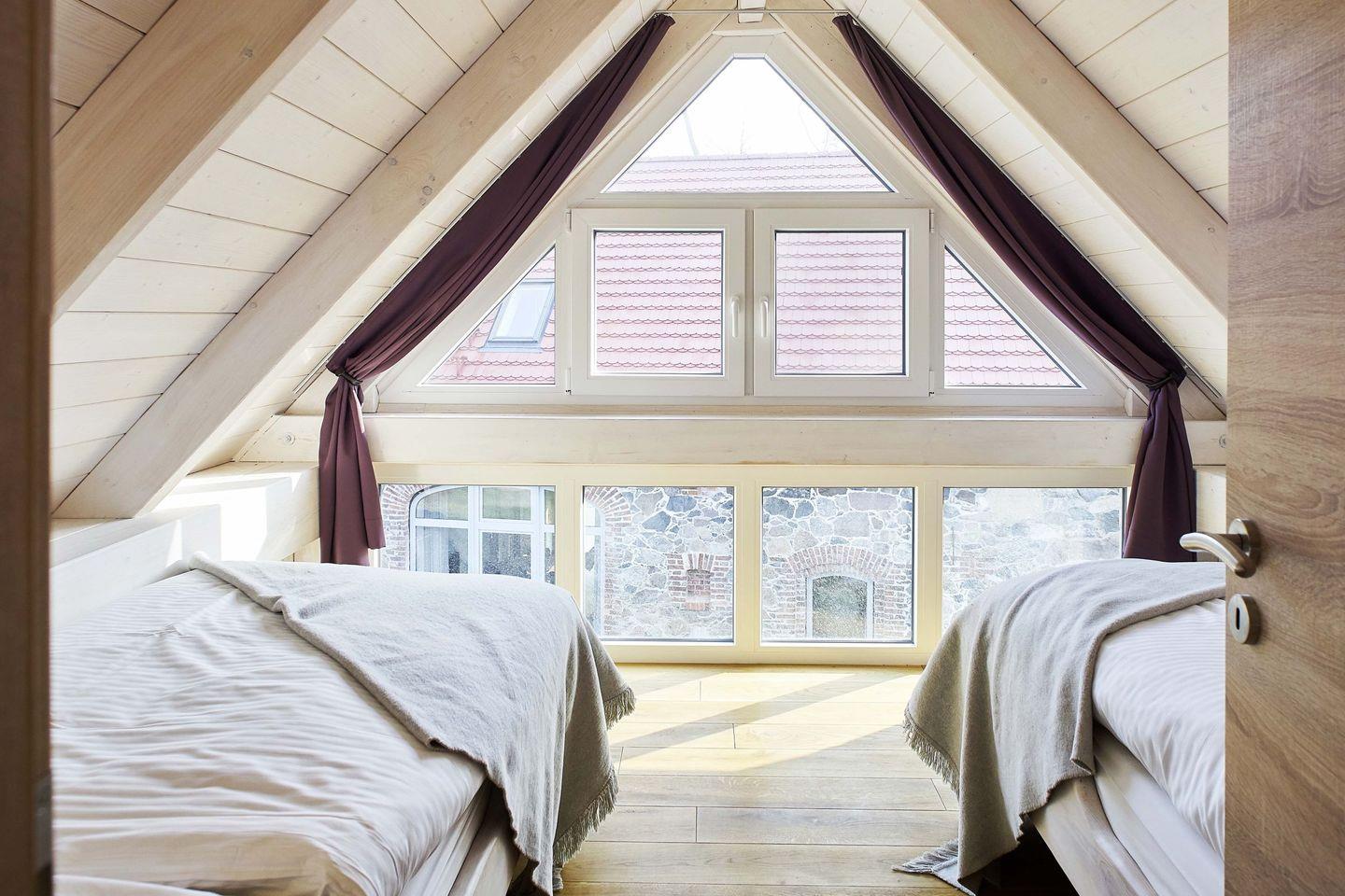 Das ehemals denkmalgeschützte 5-Sterne Hexenhaus mit wunderschönen historischen Feldsteinmauern erzählt seine ganz eigene, lange Geschichte als ältestes Haus in unserem Dorf. Mit einem offenen, lichtdurchfluteten, hohen Wohnbereich ist es architektonisch sehr reizvoll konzipiert. Auf 120 m² bietet es Platz für 6 (+2) Personen auf 2 1/2 Etagen.