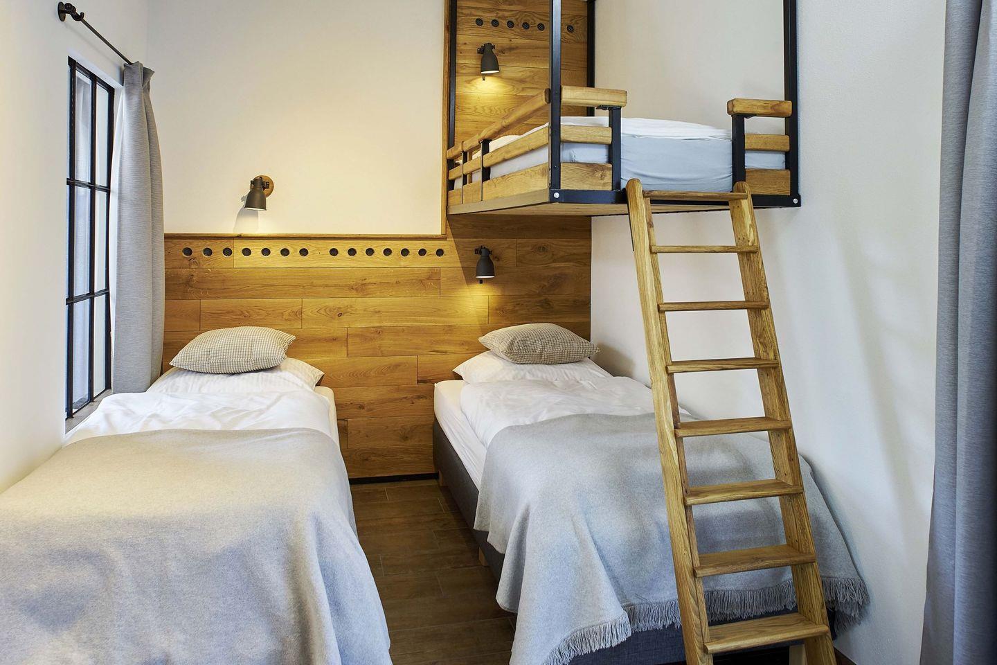 Zur hochwertigen Ausstattung gehören 1 Doppelzimmer mit individuellem Hochbett (80×180 cm für kleinere Gäste), 1 Bad mit bodengleicher Dusche und Wellnessbrause.